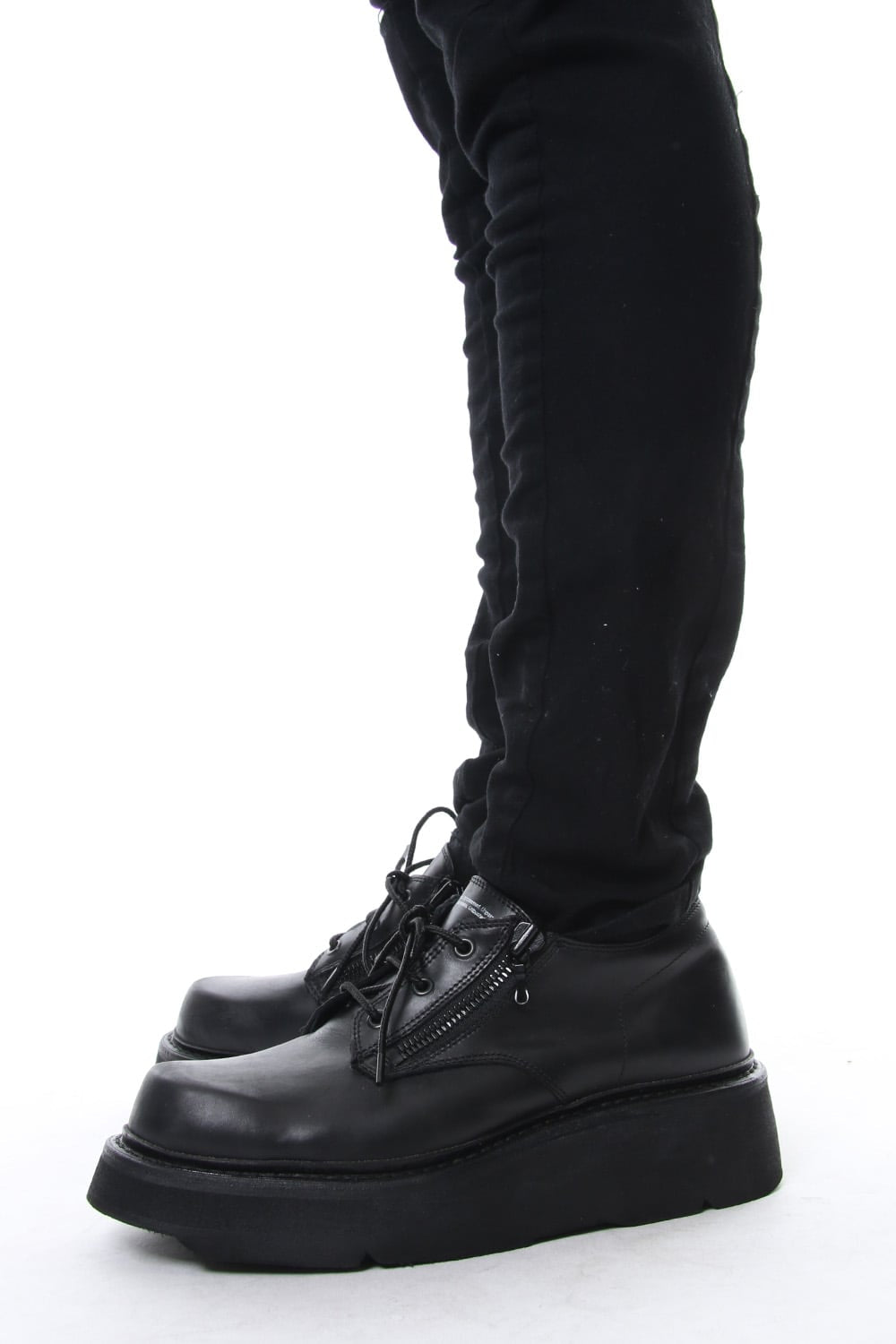10ozデニムを使用したスキニーパンツは膝にアクションプリーツを施しストレッチも効いておりますのでストレスフリーに着用感に仕上げております。