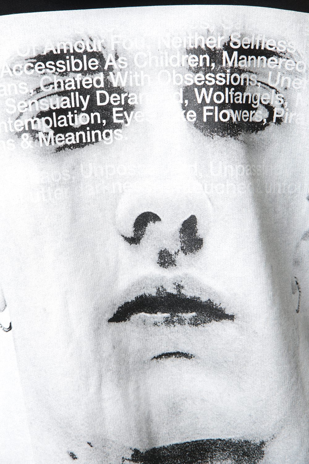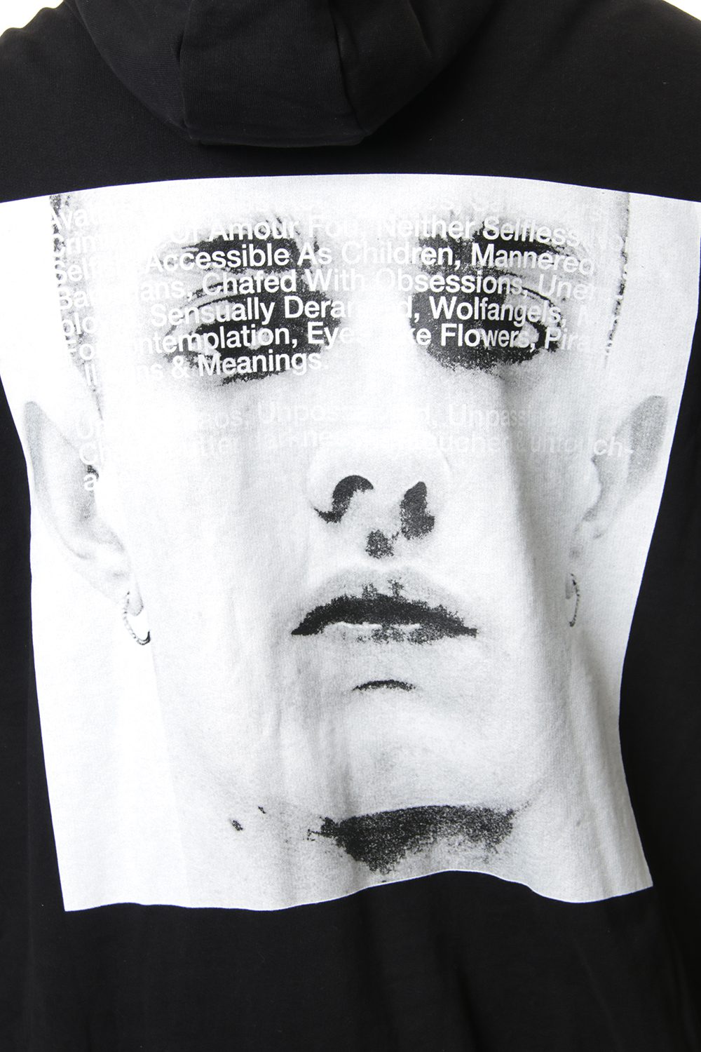 バックには大胆なフェイスグラフィックがプリントされており。ロングスリーブとのレイヤードにもお使い頂ける作品です。