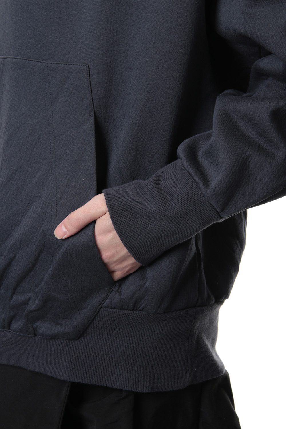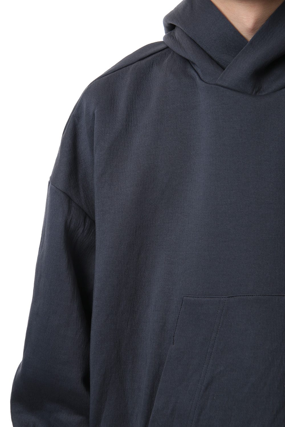 スウェット素材を使用したプルオーバーパーカー。