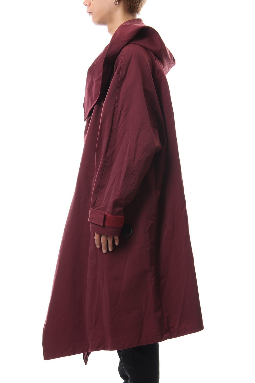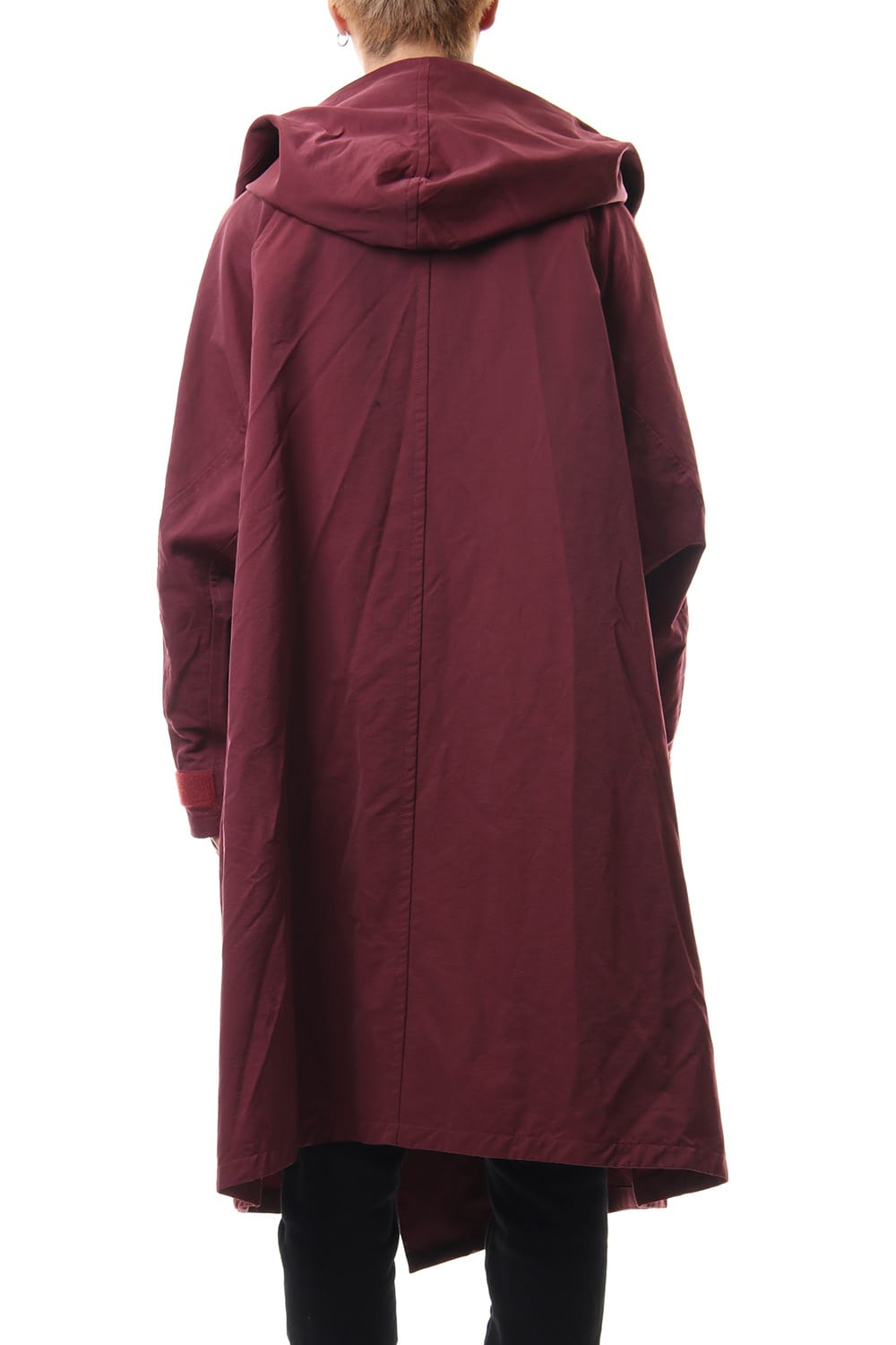 19FWのコレクションテーマでもある[ DIVIDED; ]をフロント部分に落とし込んだフード付きのコート。