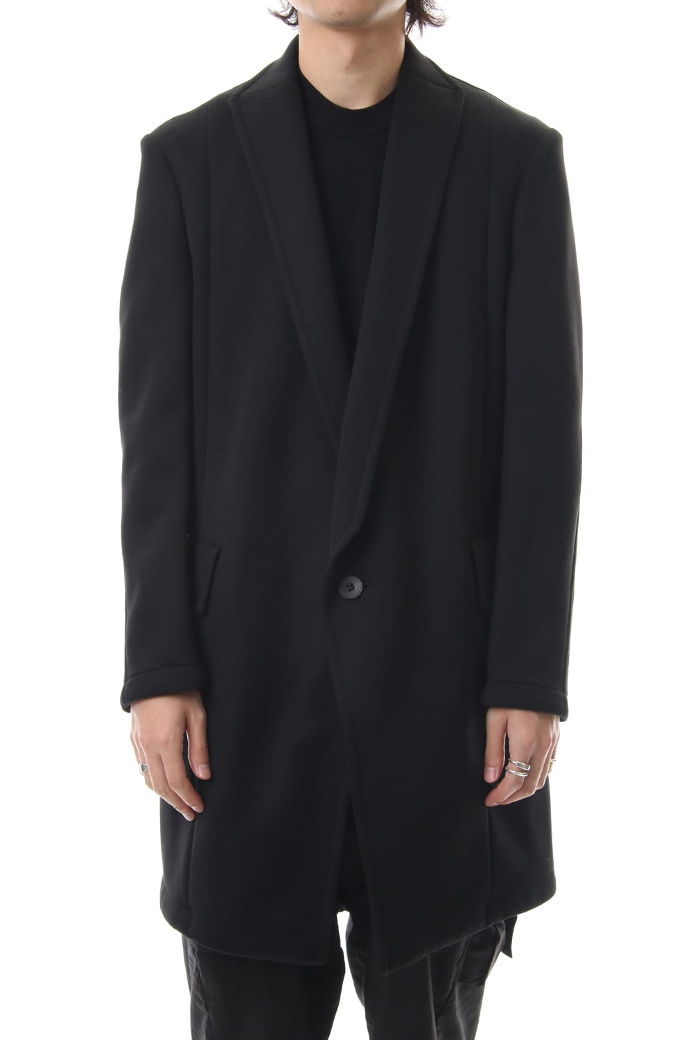 ラペルを特徴的にした独特な雰囲気が魅力的なロング丈仕様のテーラードジャケット。