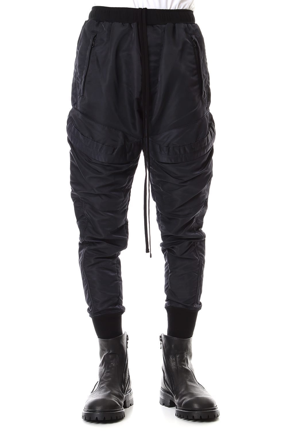 厚手ナイロンツイル生地を使用し、腿部分に大振りなポケットを配備、サイドとバックにはジッパーポケットを完備したフライトカーゴパンツ。