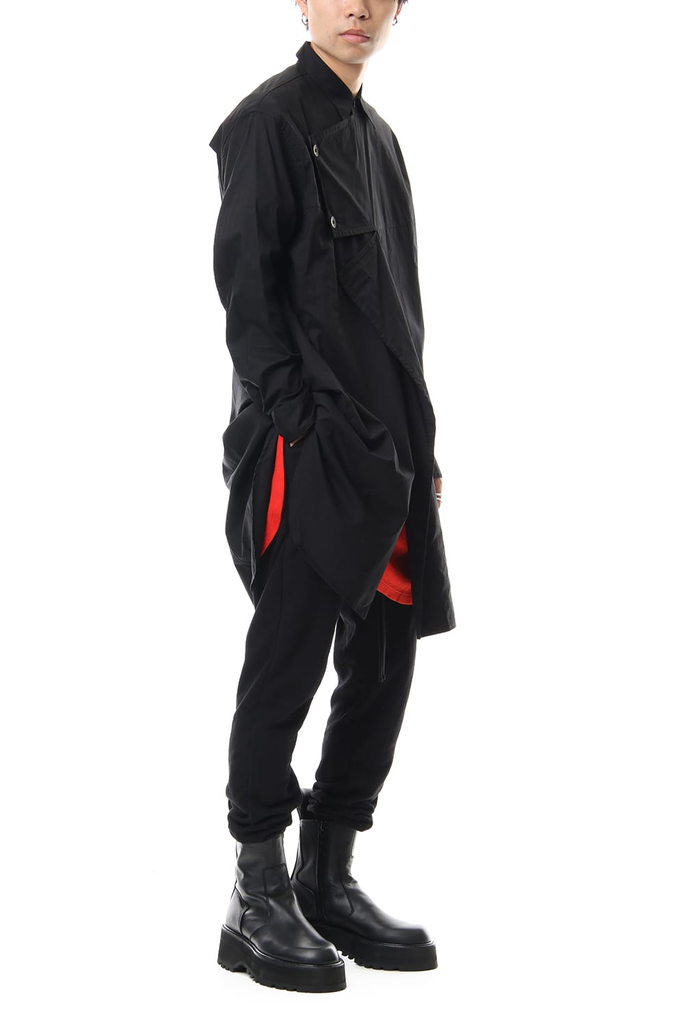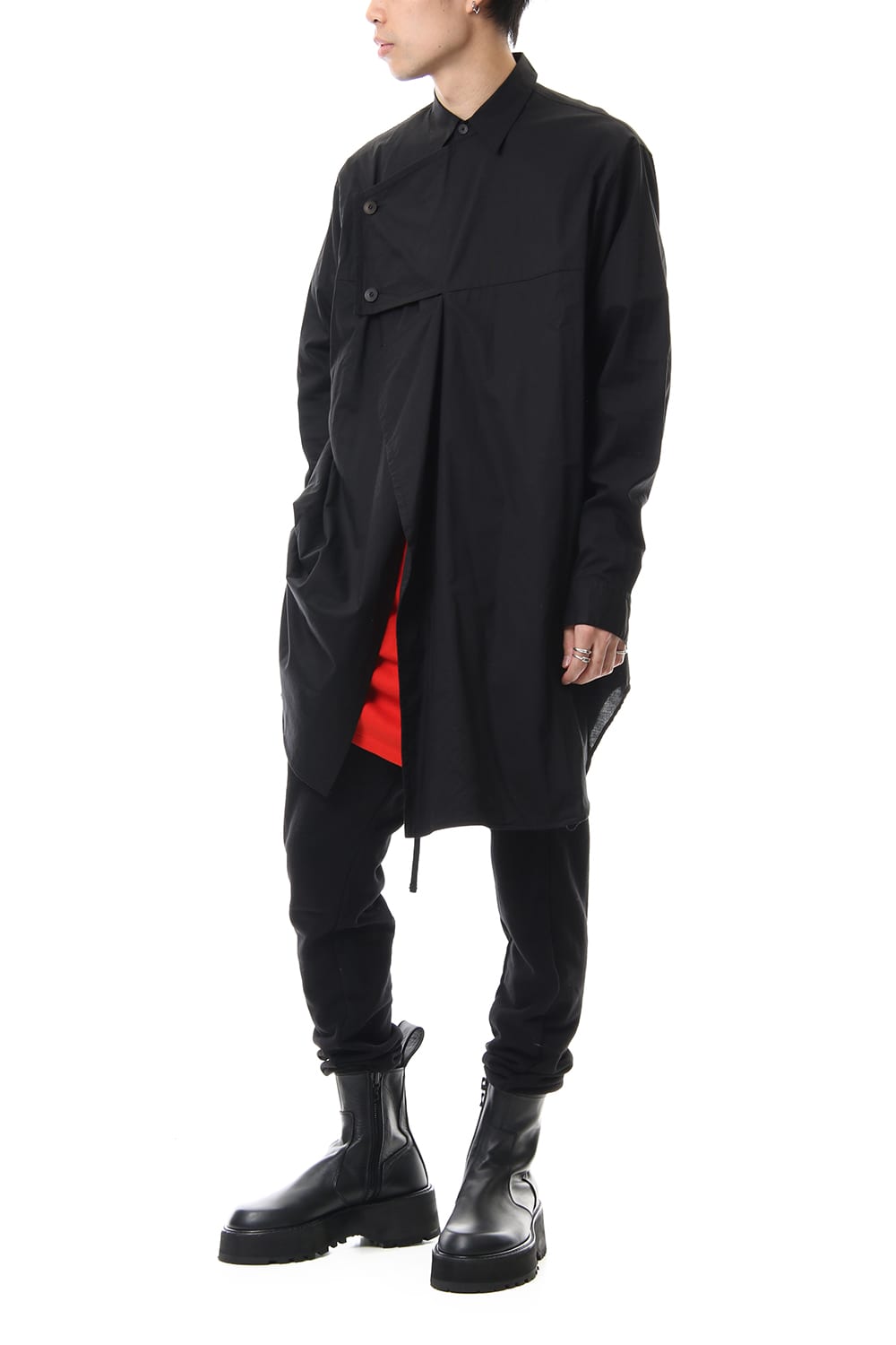 19FWのテーマである「分断」をコットンロングシャツに落とし込んだデザイン性を感じる作品。