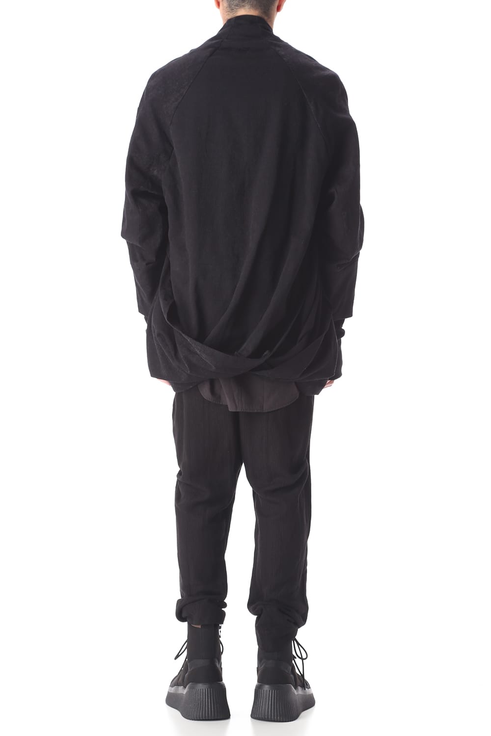 表面に凹凸感のあるジャガード素材が独特な重厚感、立体感を表現された存在感抜群の作品です。