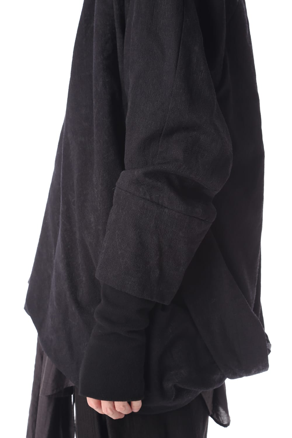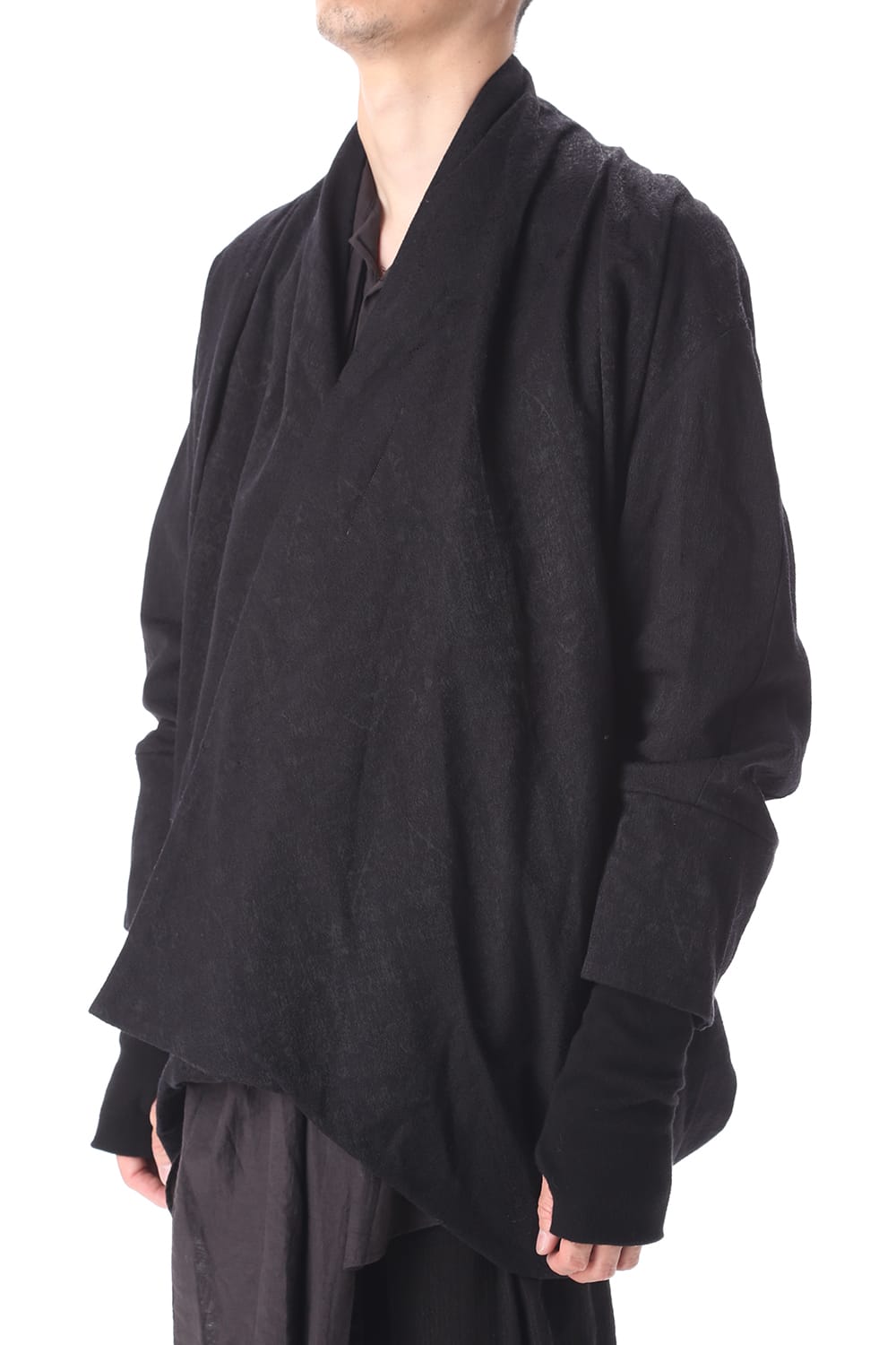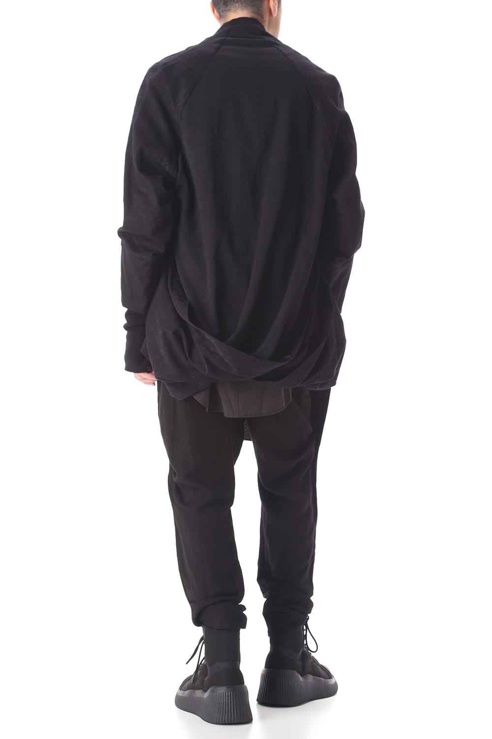 ネック周りから裾にかけて落ち感のあるドレープ感を表現したエッジの効いたブルゾン。