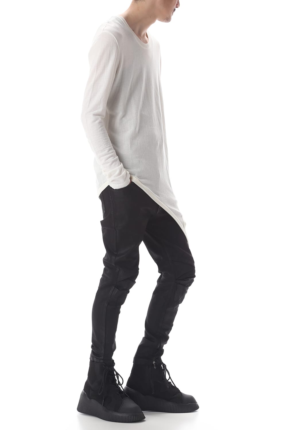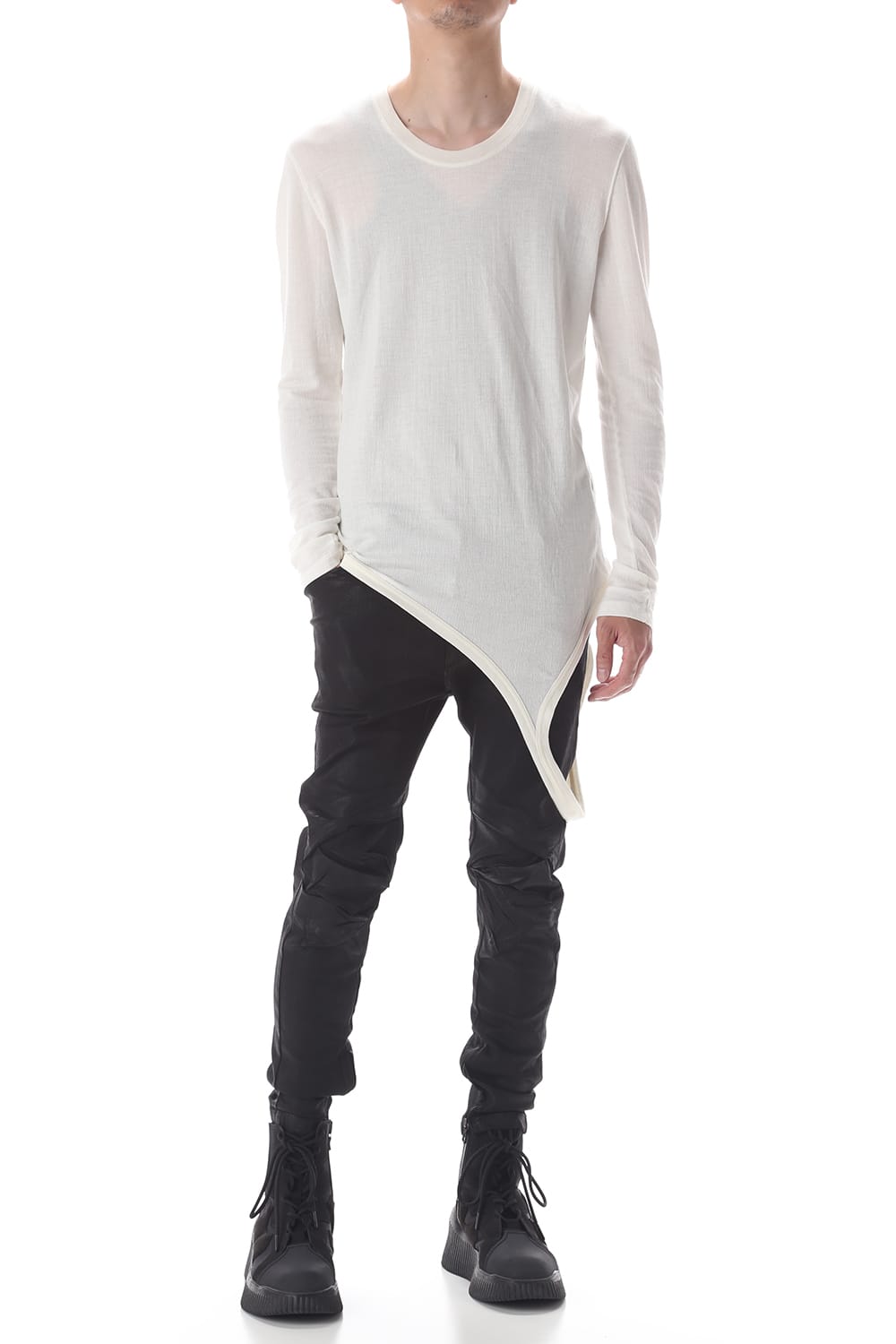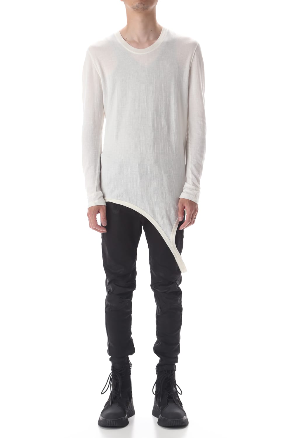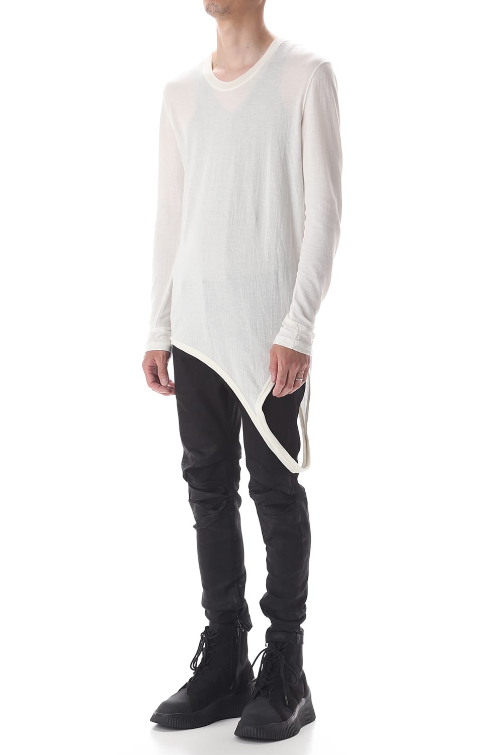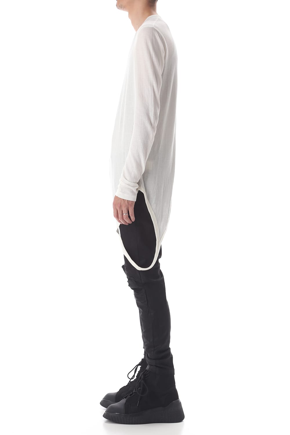 シャープなシルエットのロングスリーブカットソー。
