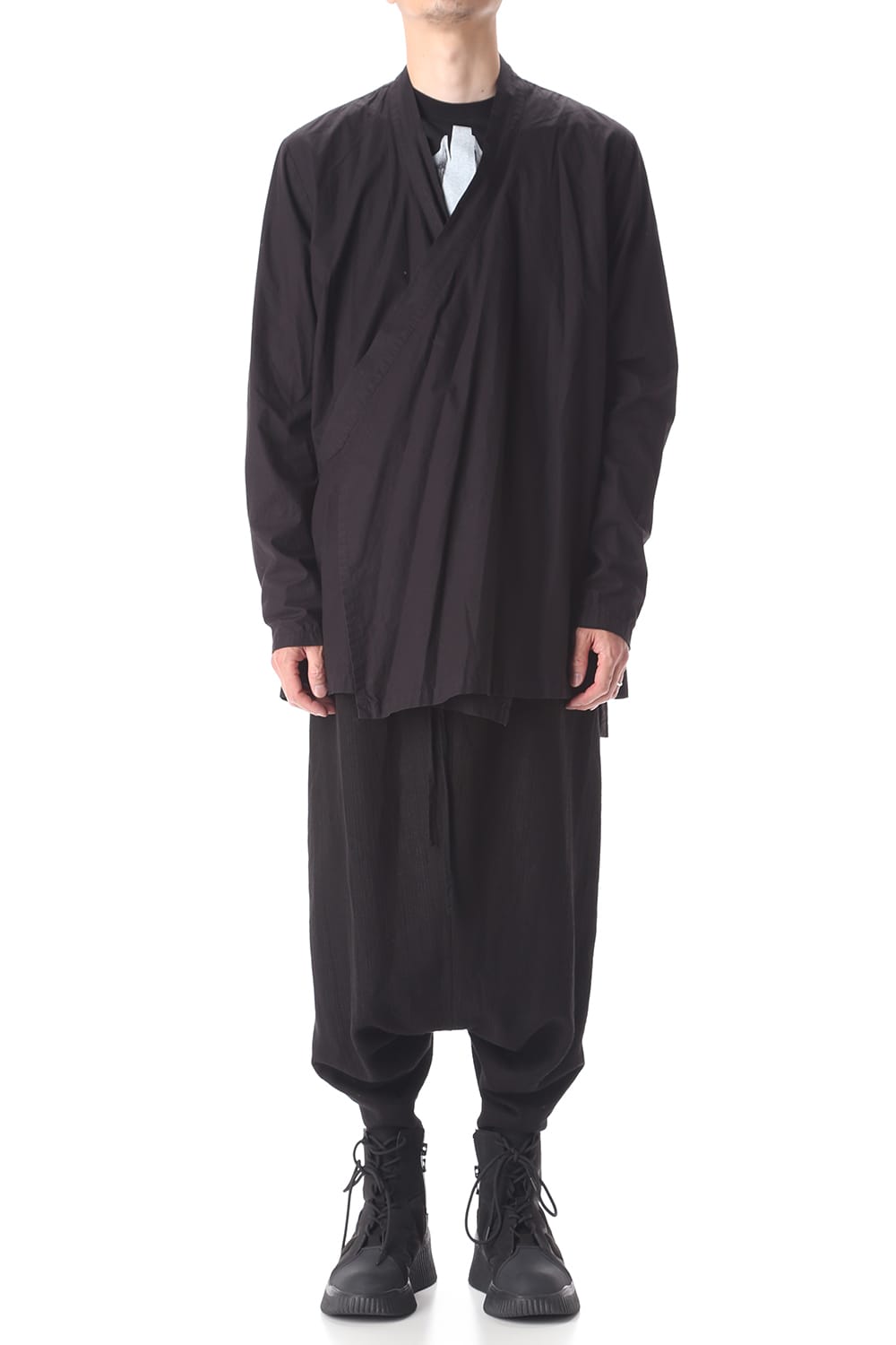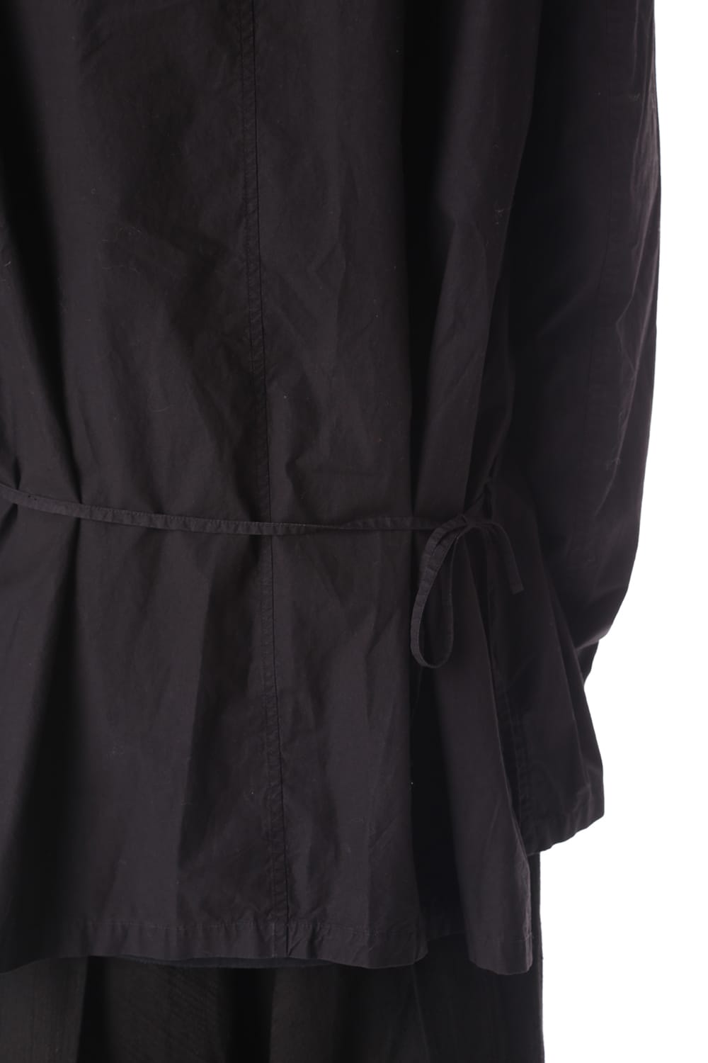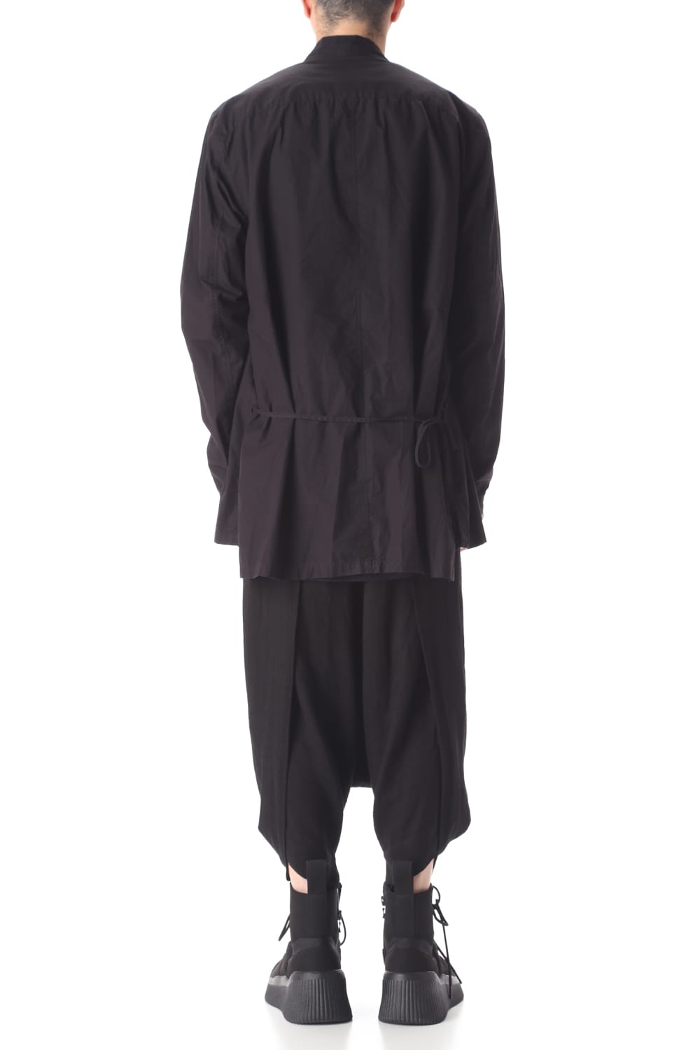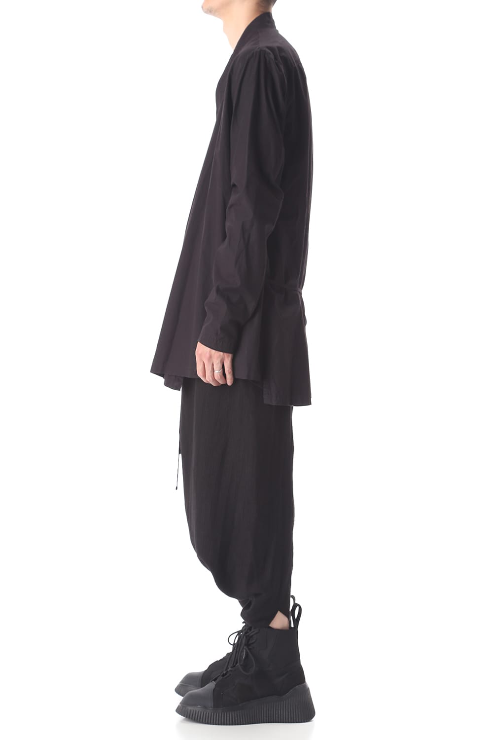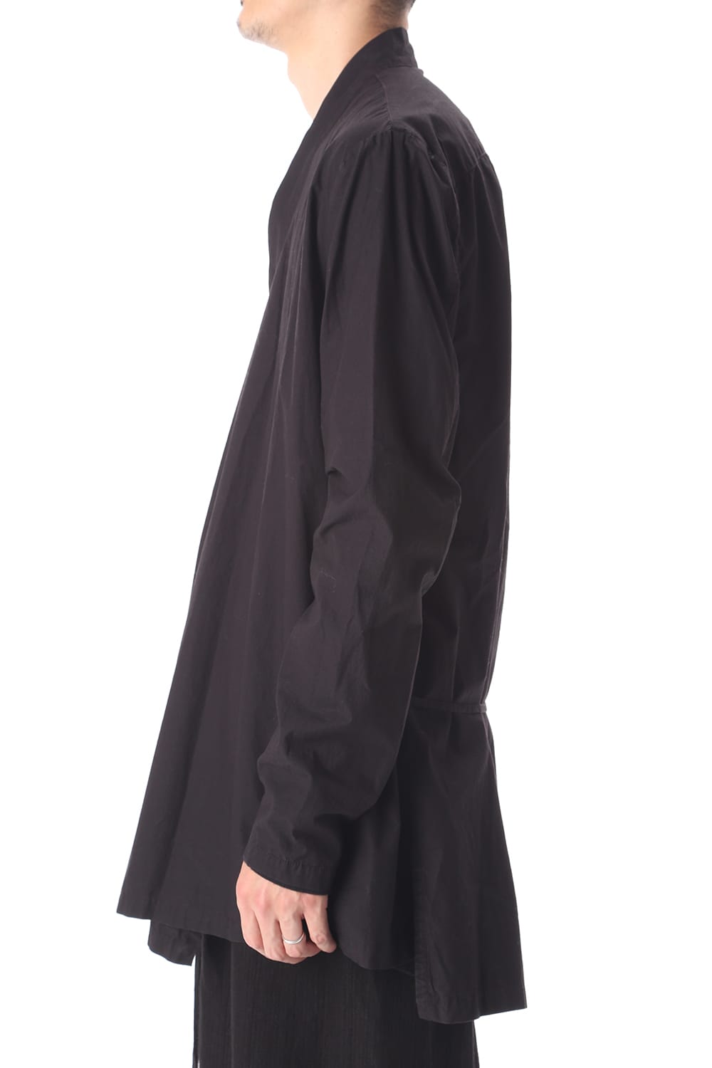 腰部分に配されたコードを結んでいただくことによって着物のようなシルエットに、結ばず垂らすことでカーディガンのようにも着用していただける作品です。