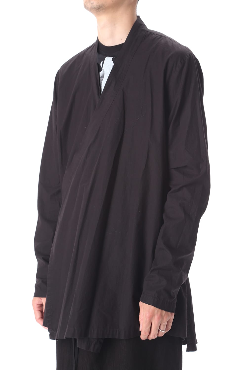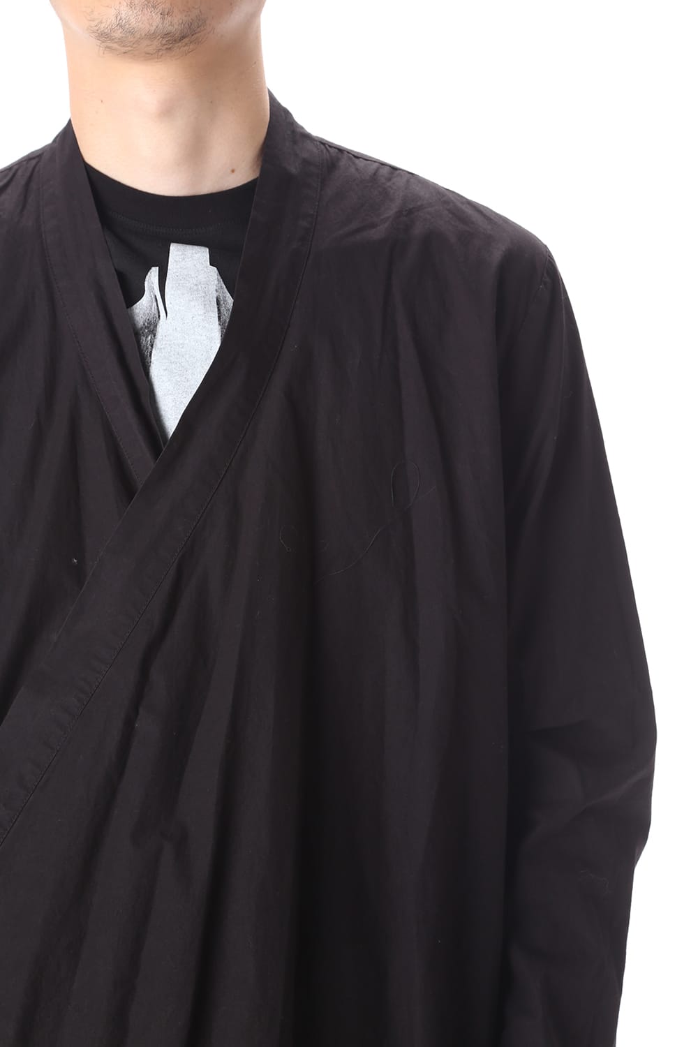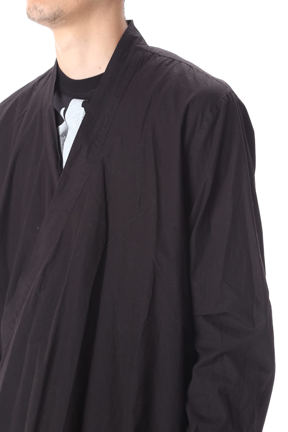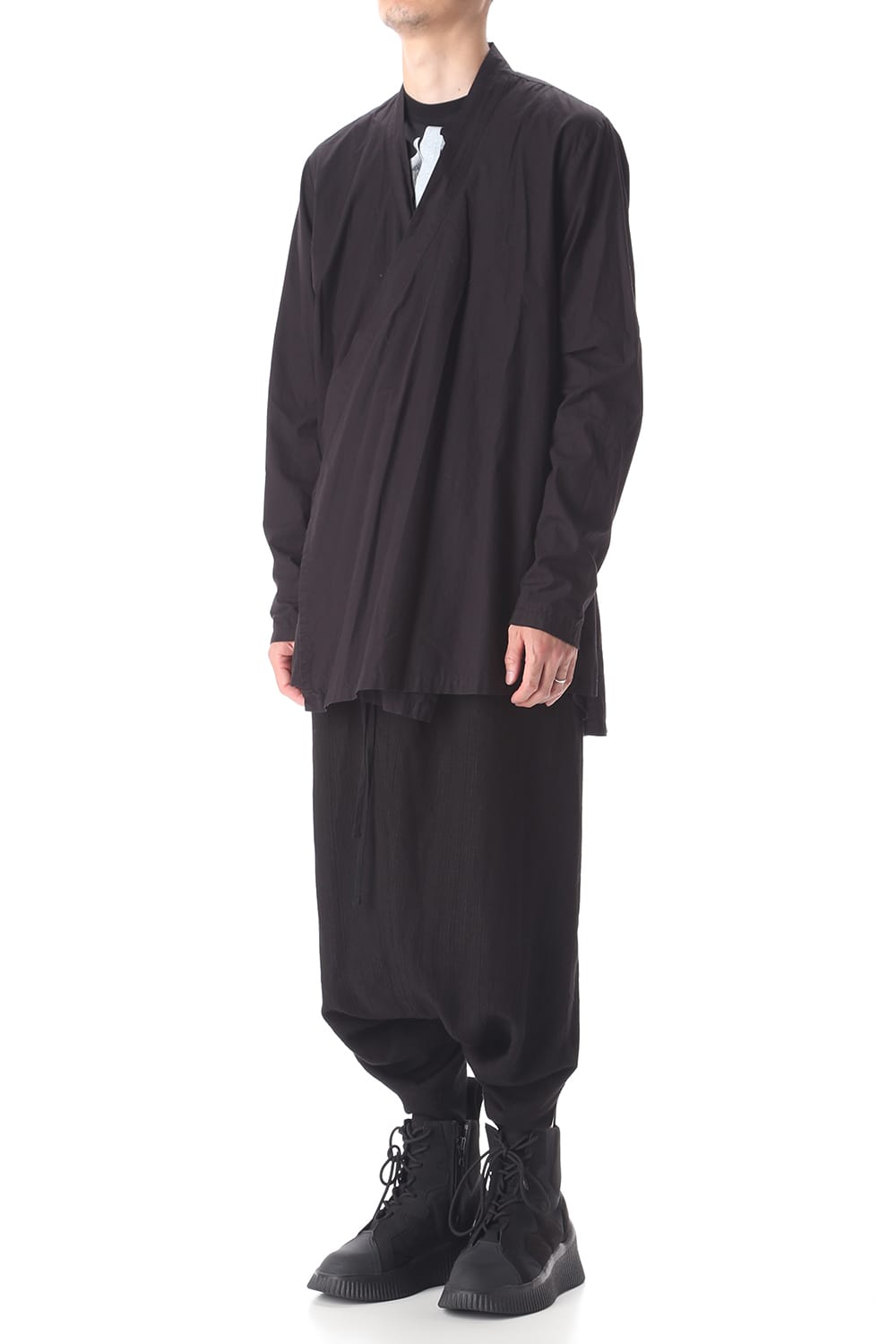 腰部分に配されたコードを結んでいただくことによって着物のようなシルエットに、結ばず垂らすことでカーディガンのようにも着用していただける作品です。