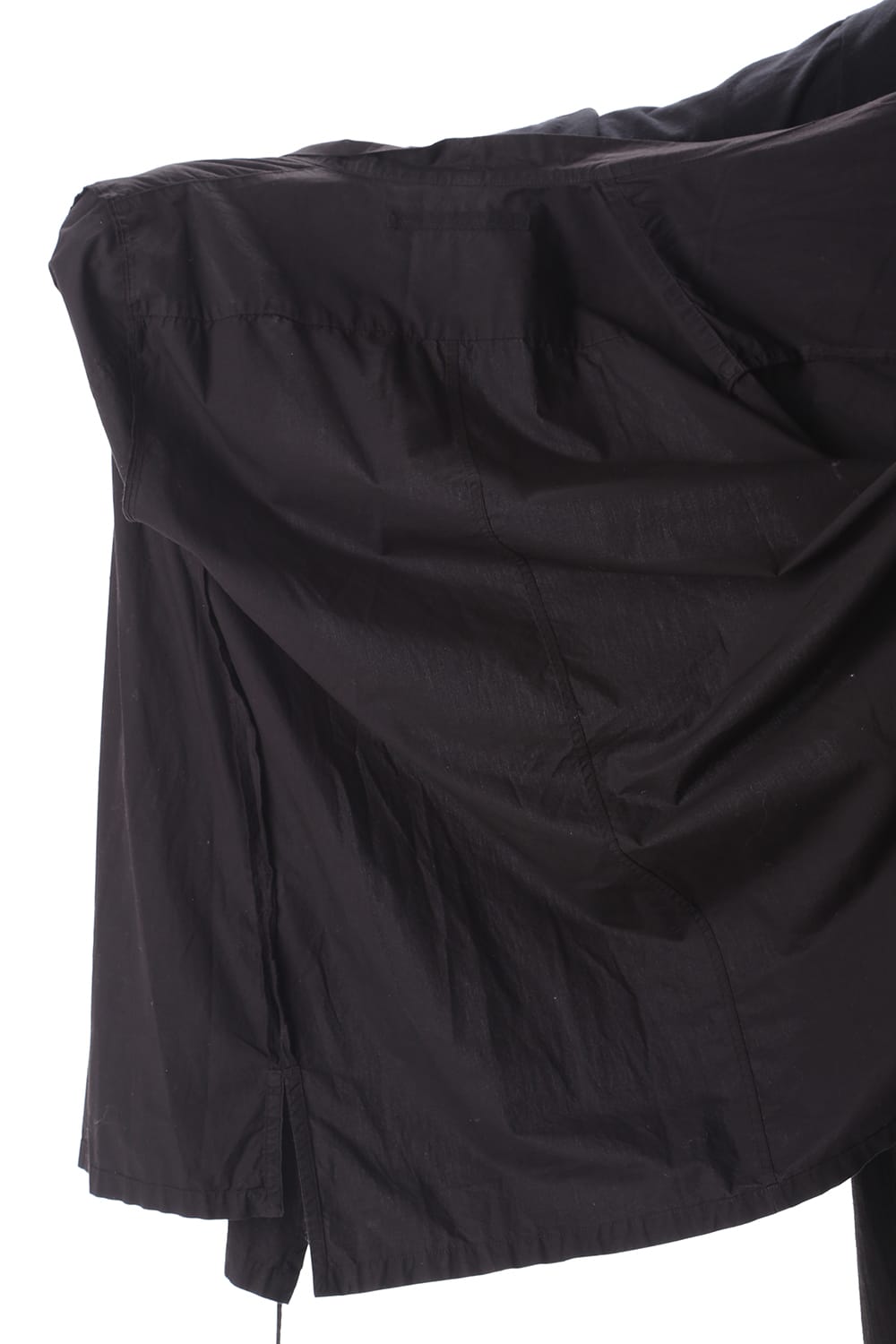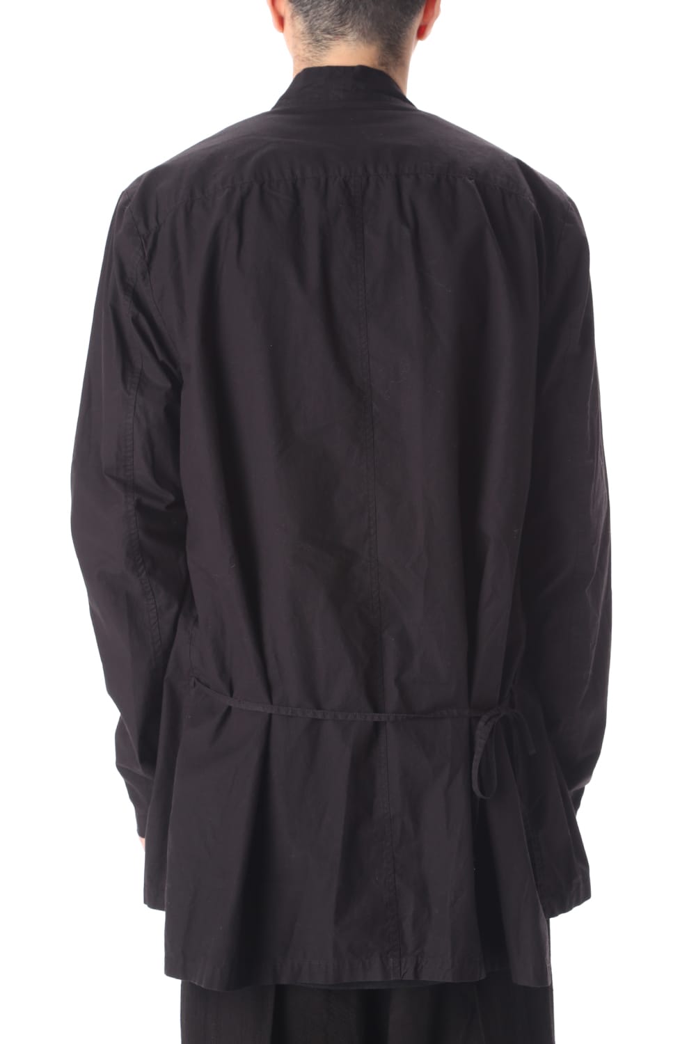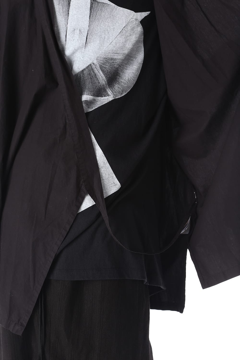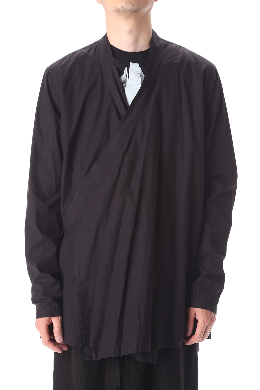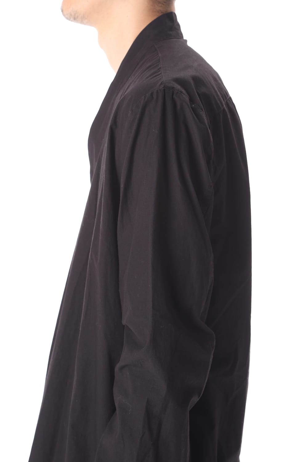 腰部分に配されたコードを結んでいただくことによって着物のようなシルエットに、結ばず垂らすことでカーディガンのようにも着用していただける作品です。