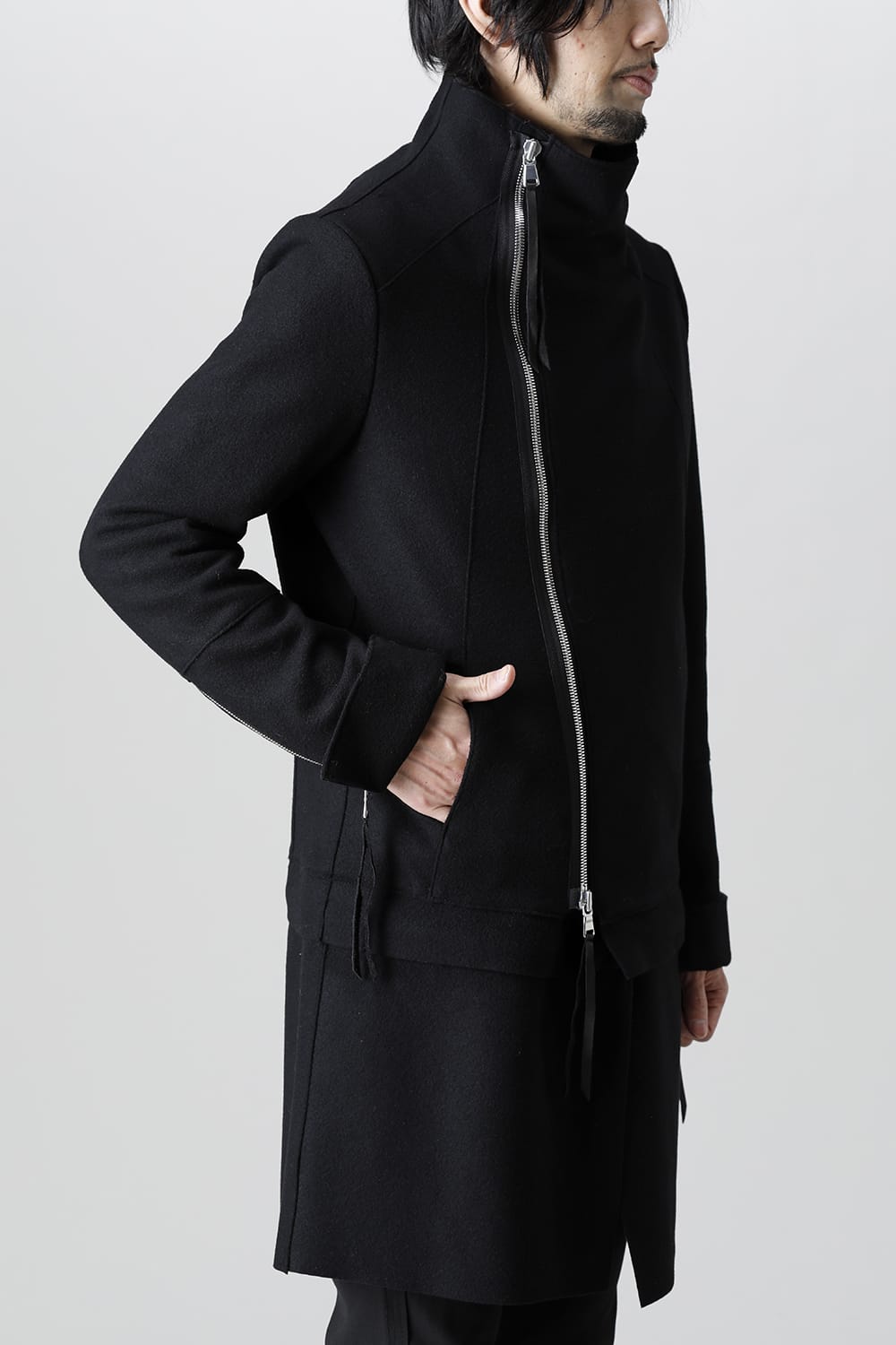 ・脱着可能なパーツによりショート丈とロング丈の2WAYにて着用可能なメルトンコート