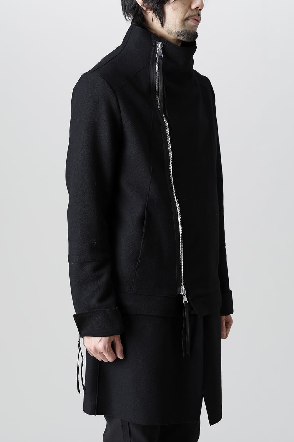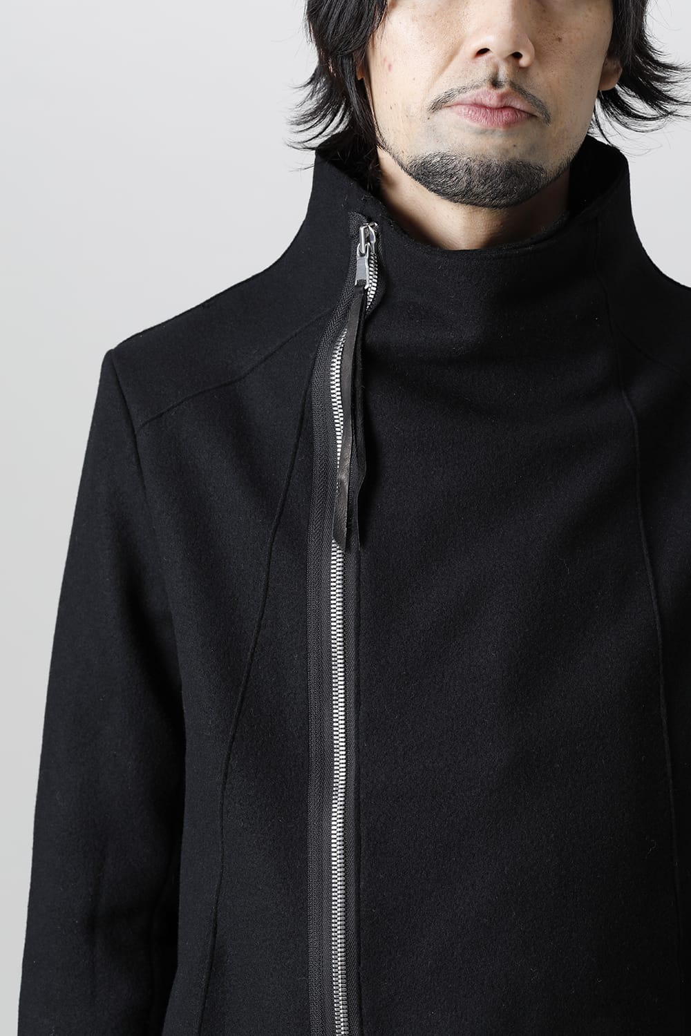 ・きめ細かいラムウールのメルトン生地を使用。カシミアのように滑らかな肌さわりで保温性もしっかり確保。重たすぎない程よい肉感で羽織りやすく仕上げている