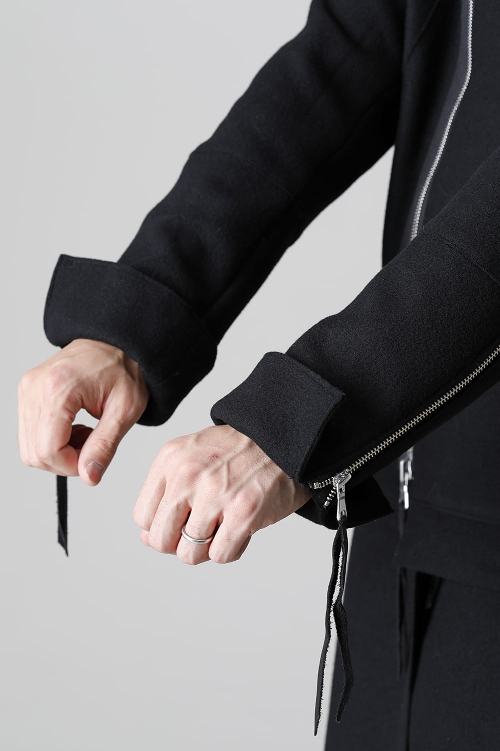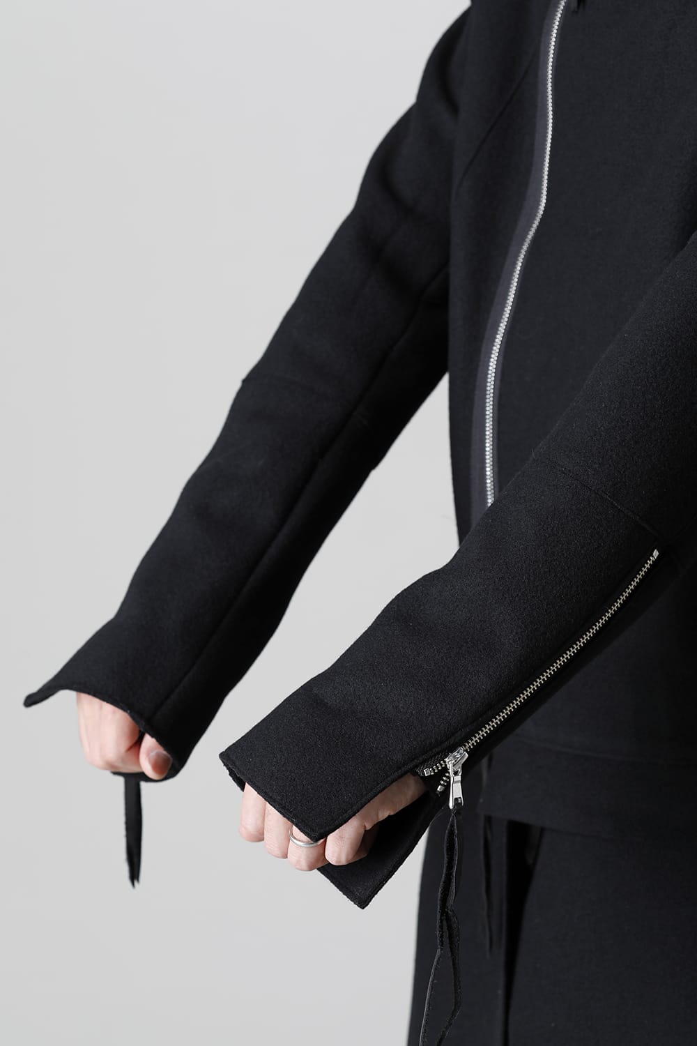 ・ライダースブルゾンのような手首に走る長いジップデザイン