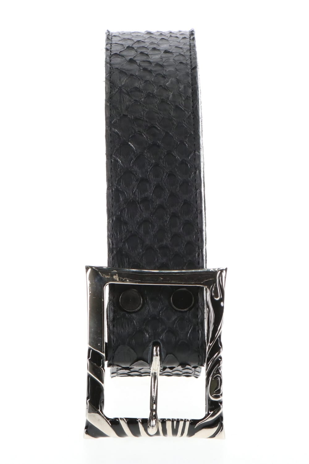 ブランドらしい彫刻が施された存在感のあるベルトバックル。