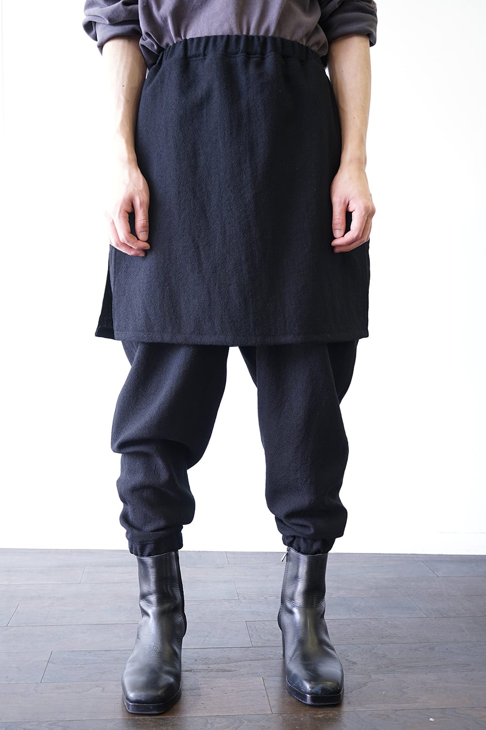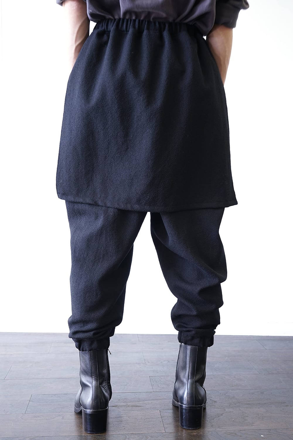 前後の被さっている生地はサイドは完全に開いており、 トップスを着た際(ウエストから服はアウト)に、レイヤードのような見た目になるようにしています。