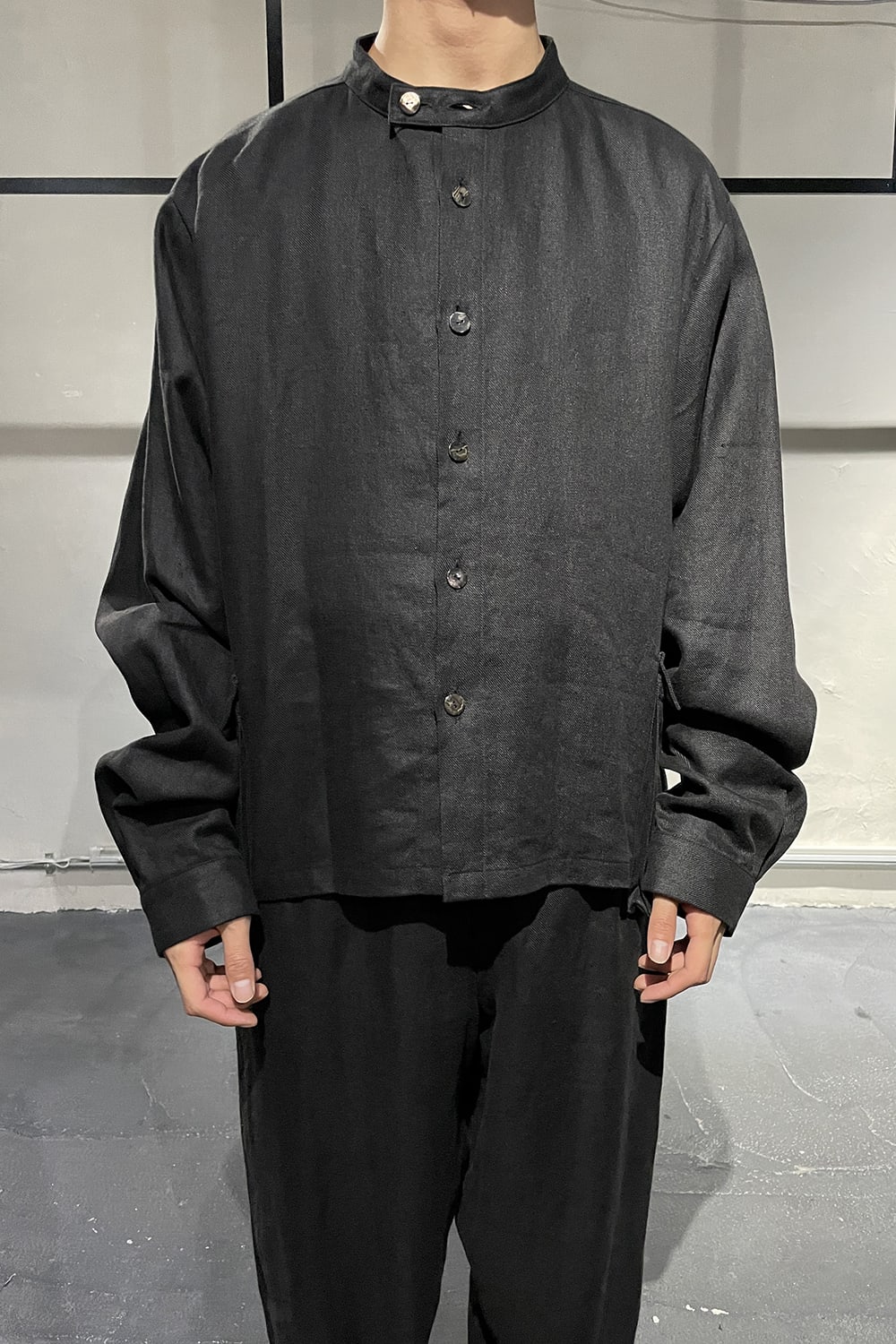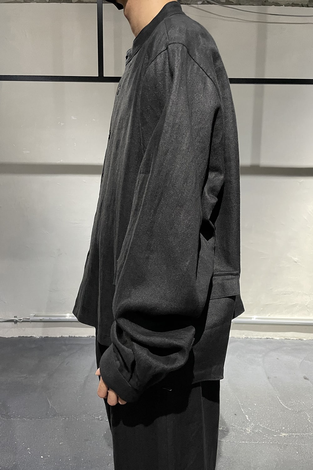 バンドカラーのシャツジャケットです。