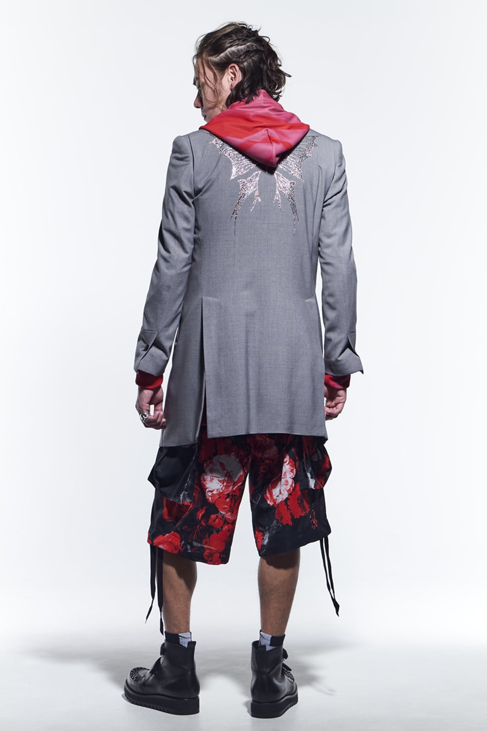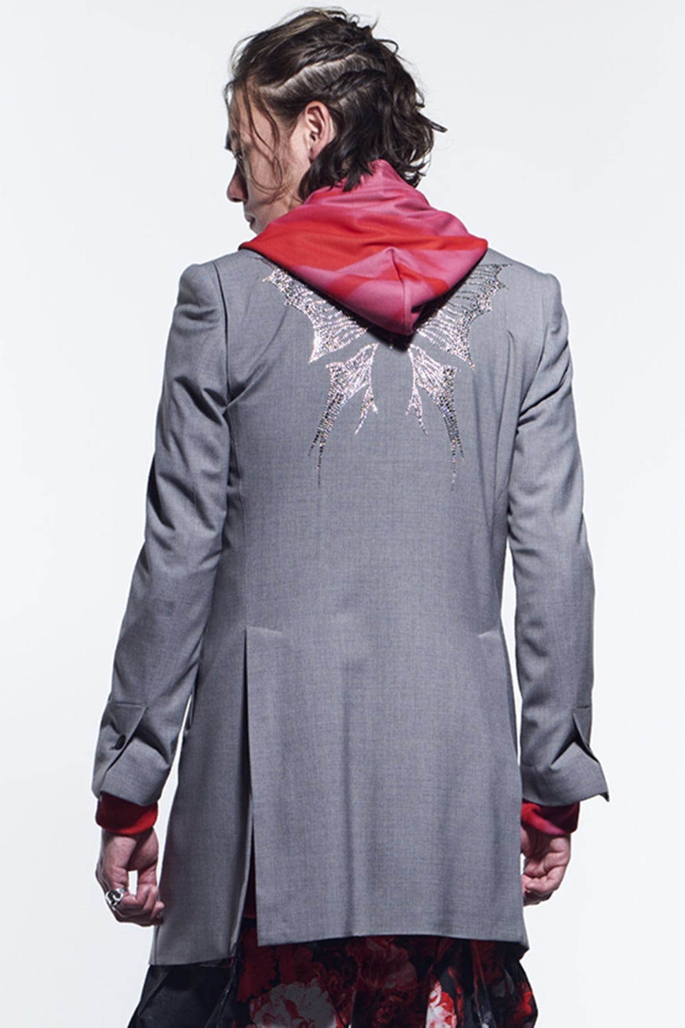 ロング ピークドジャケット グレー / クリアスワロフスキー