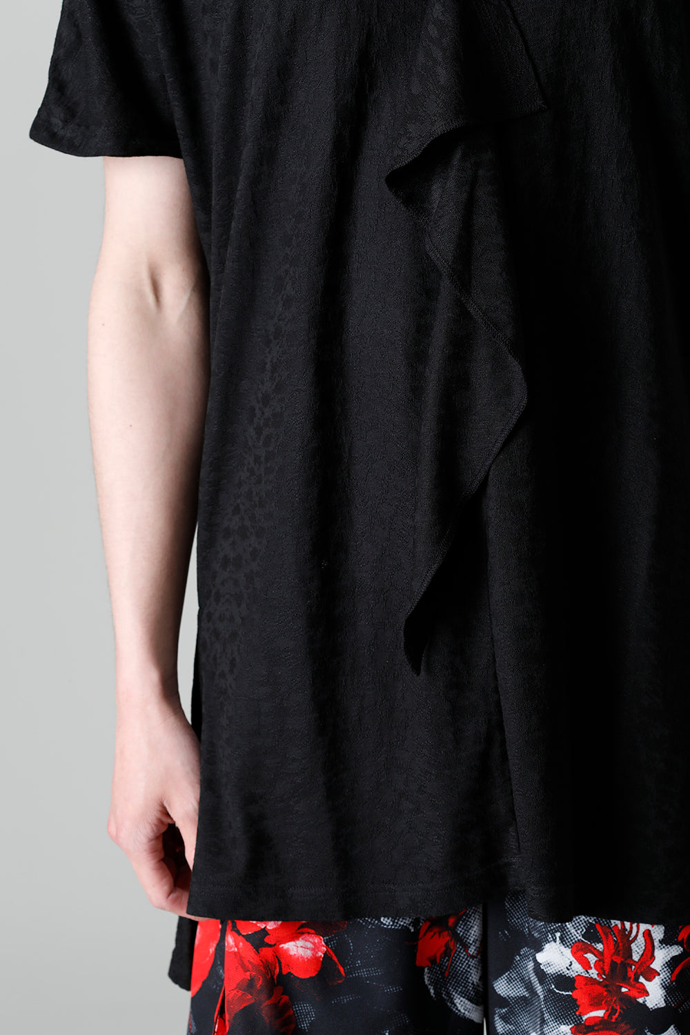 レオパード柄のジャージー生地を使用したフリルディテールがポイントのカットソー。