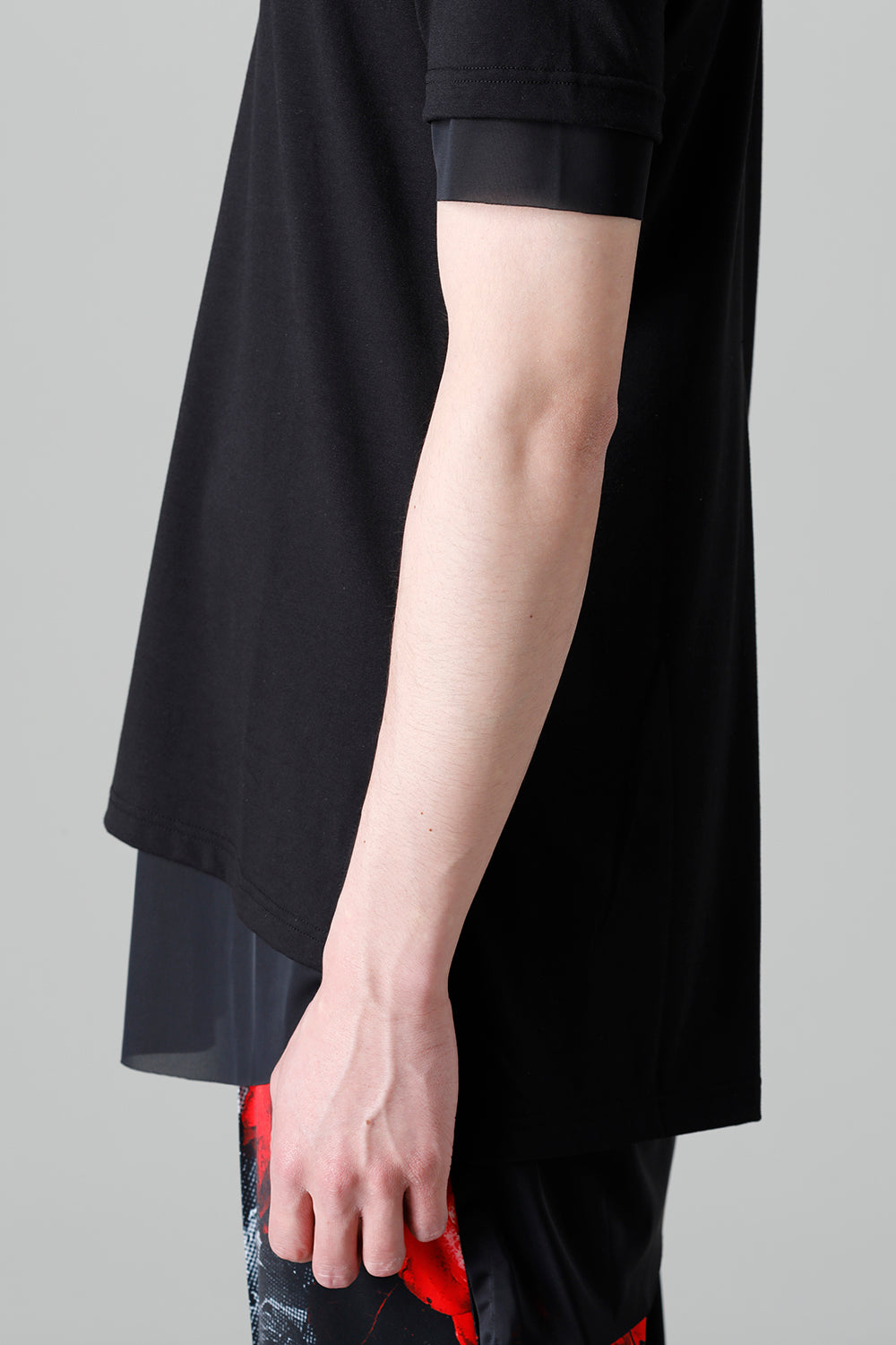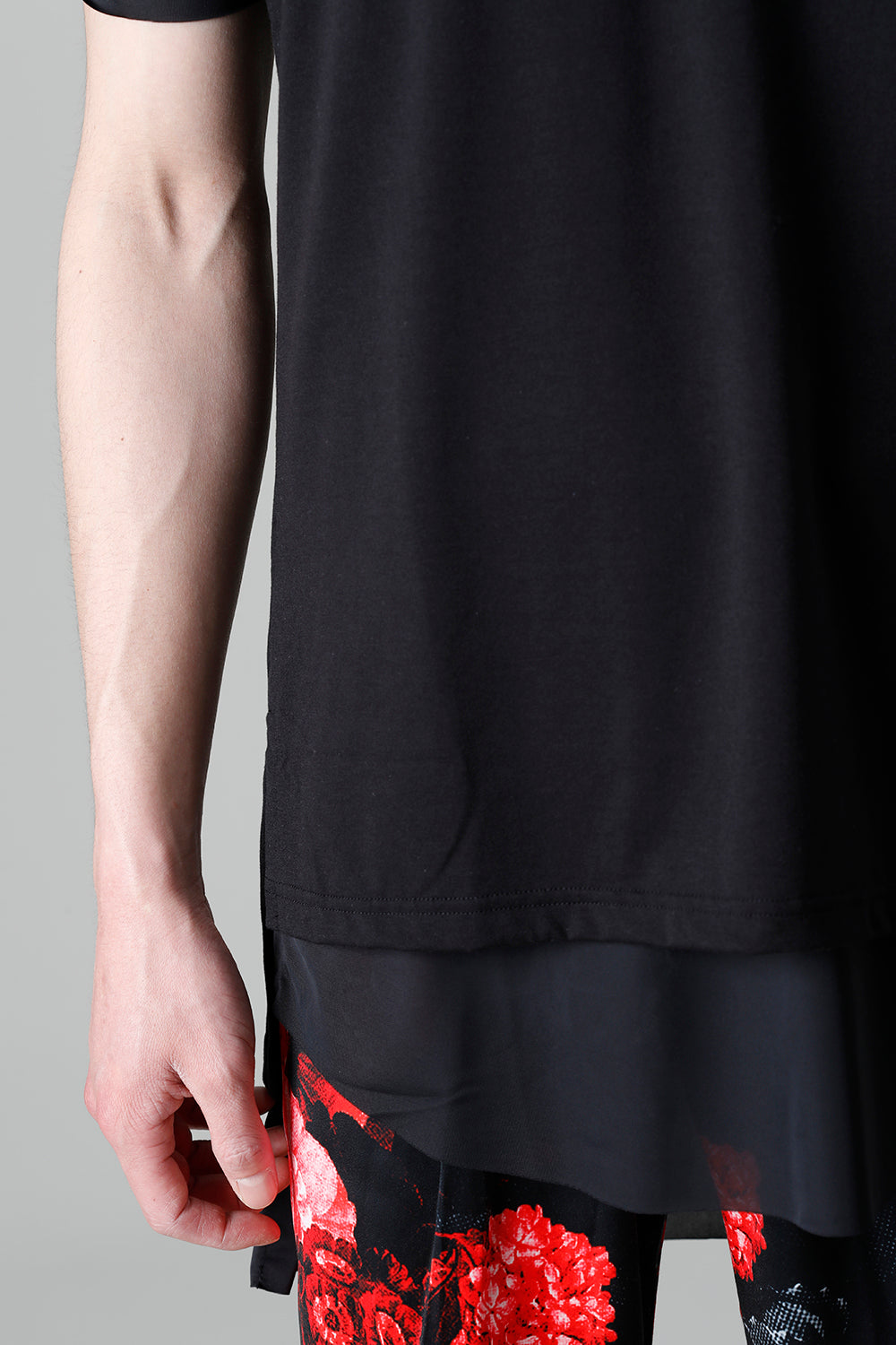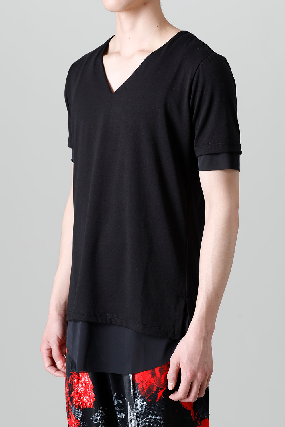 レイヤード Vネック Tシャツ ブラック&ブラック