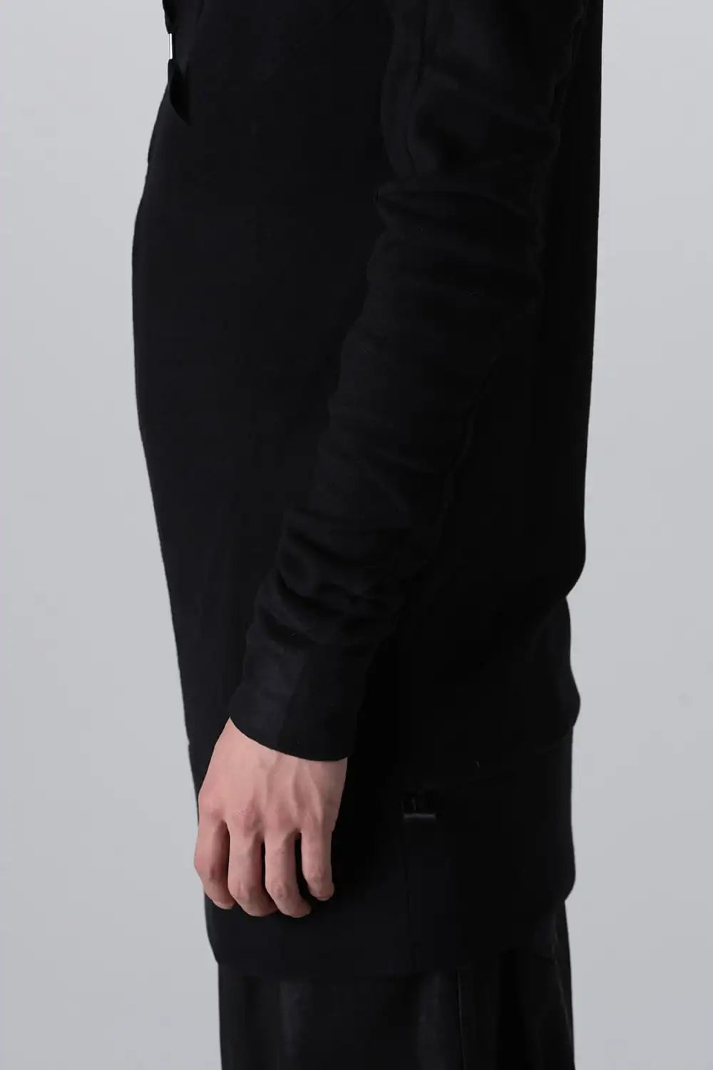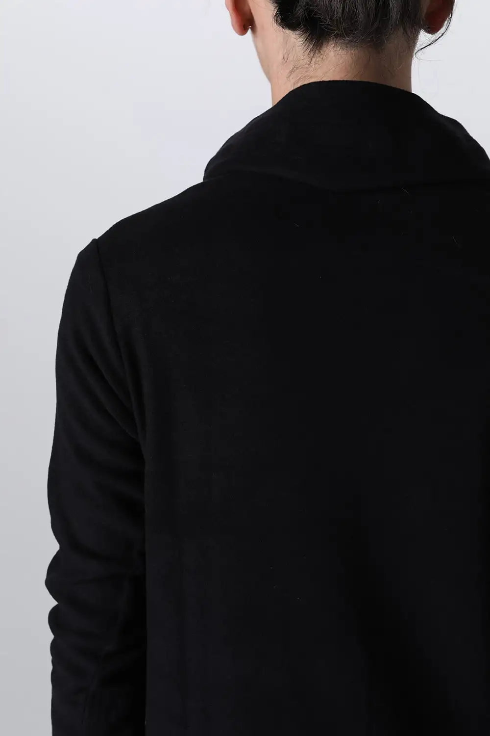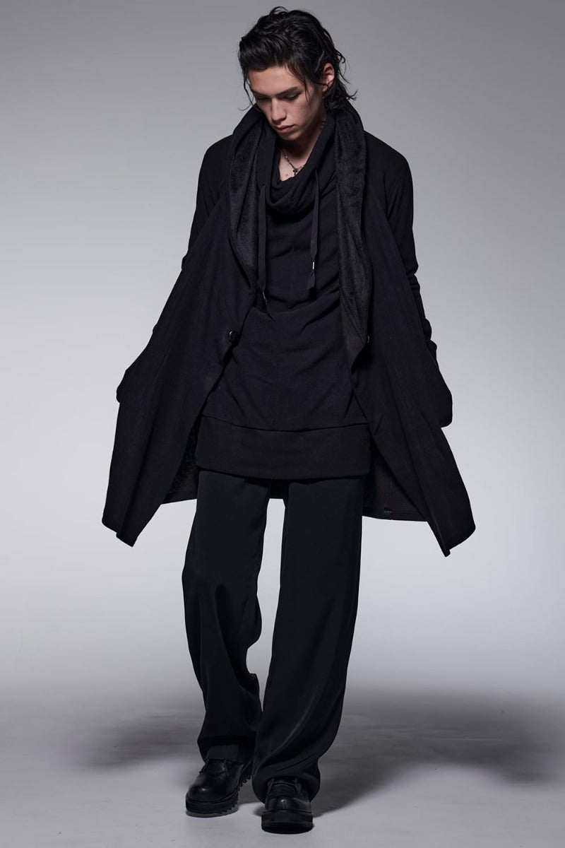 首元は綺麗なドレープ性が出てくれるハイネック仕様。