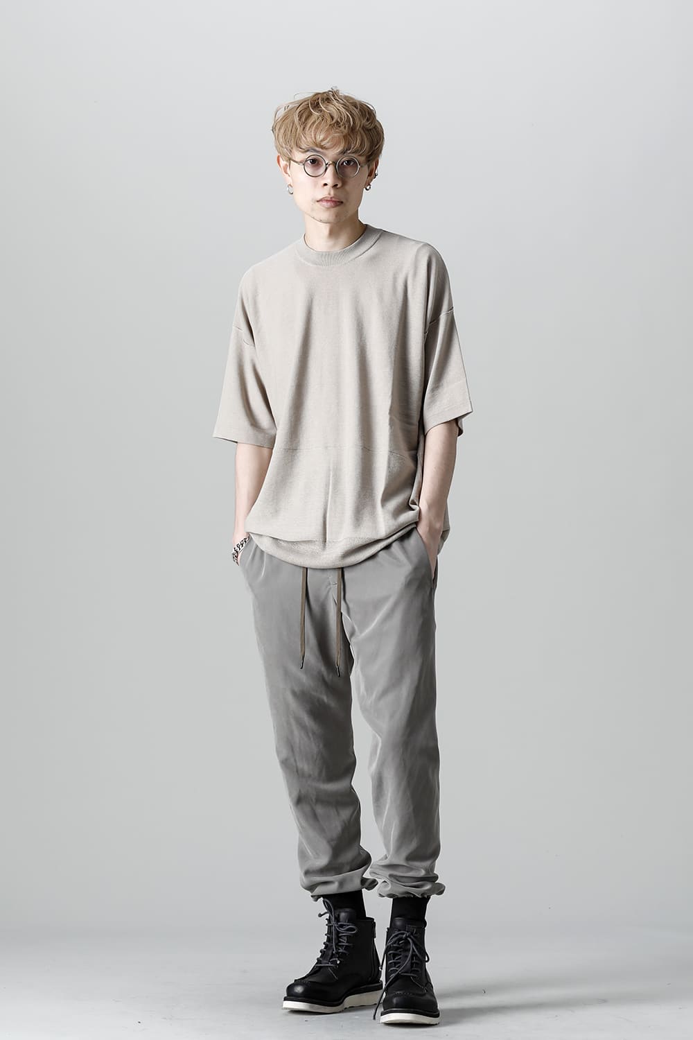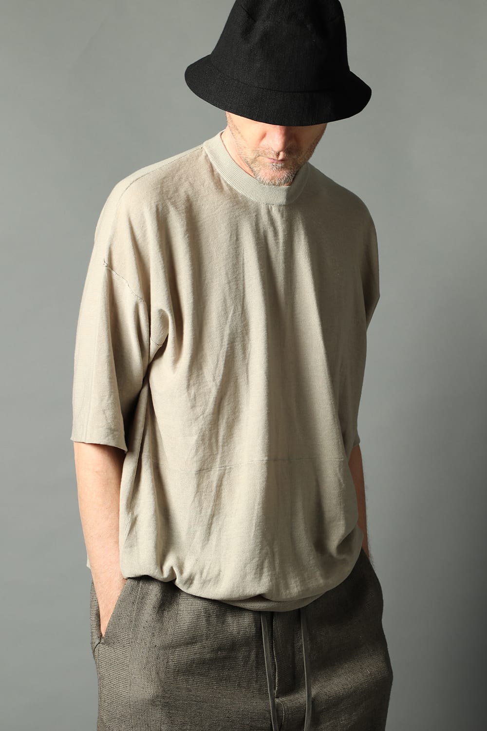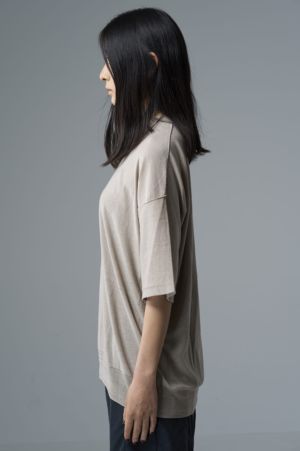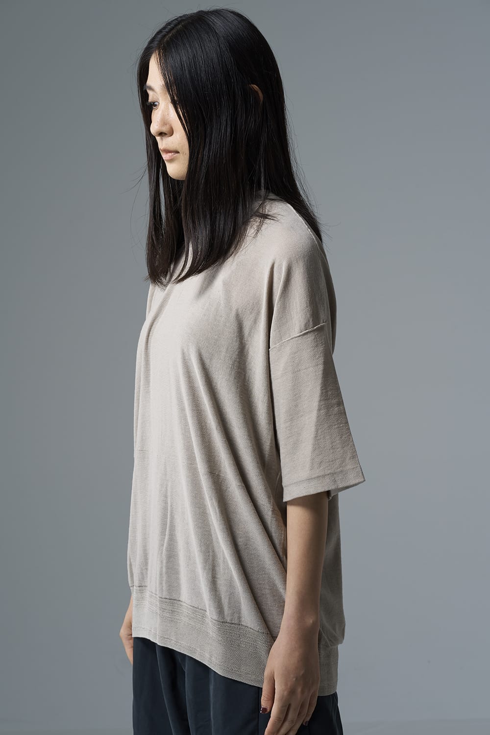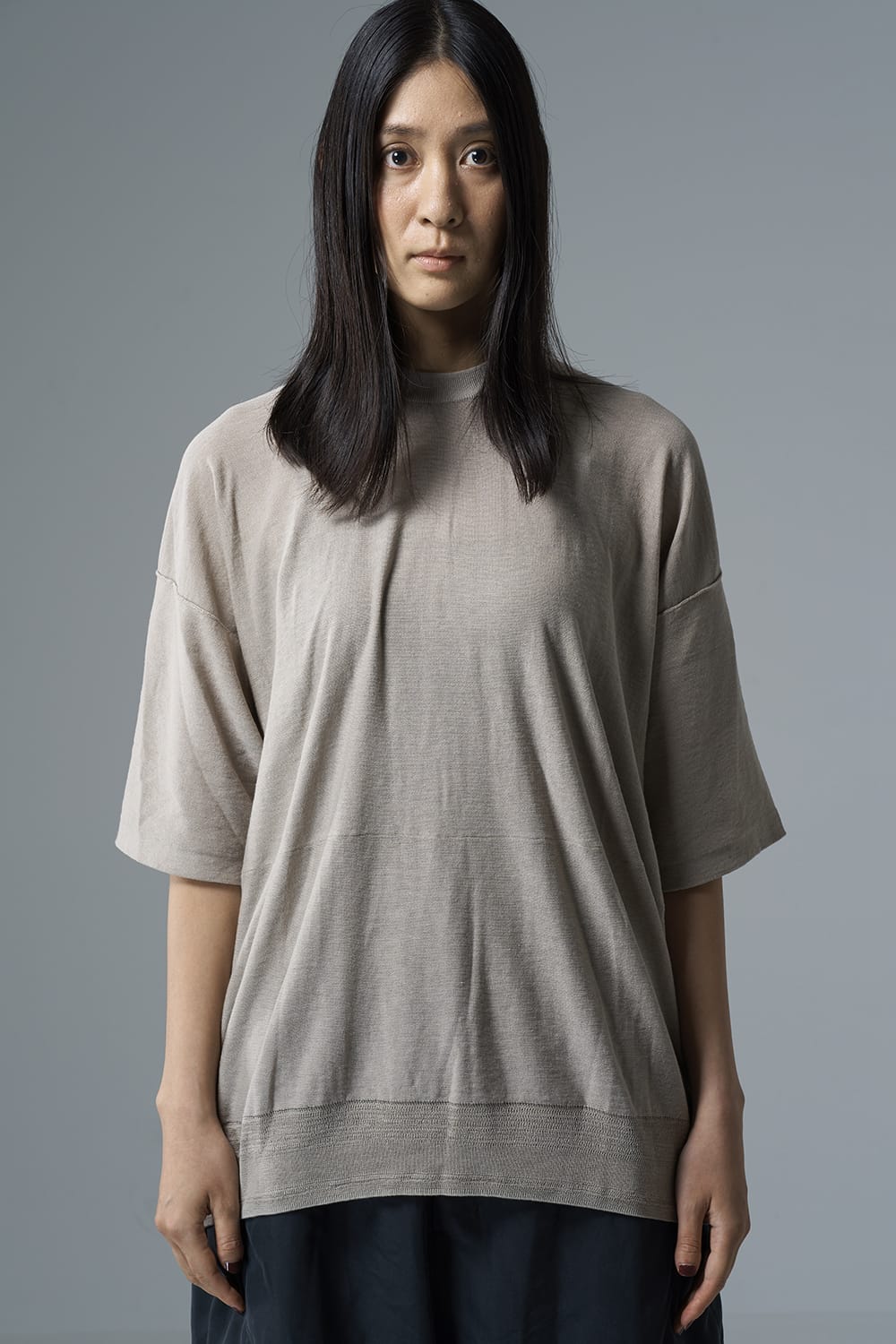 ルーズフィット ニットショートスリーブ シルク/コットン ベージュグレー