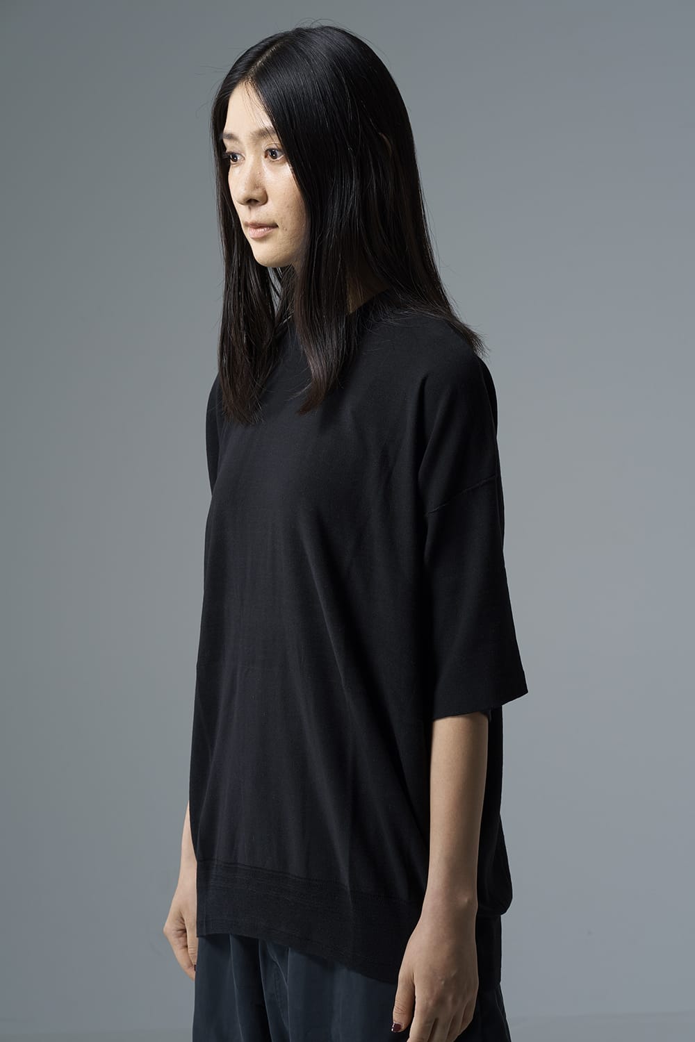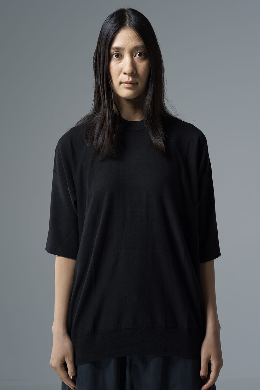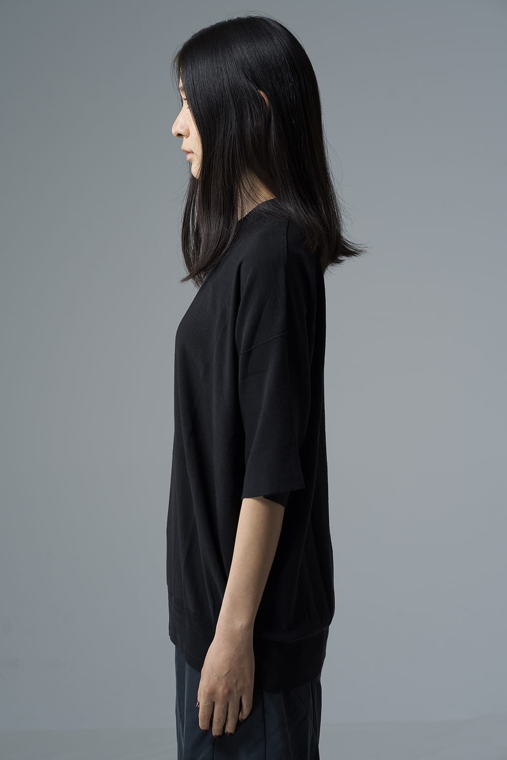 ルーズフィット ニットショートスリーブ シルク/コットン ブラック