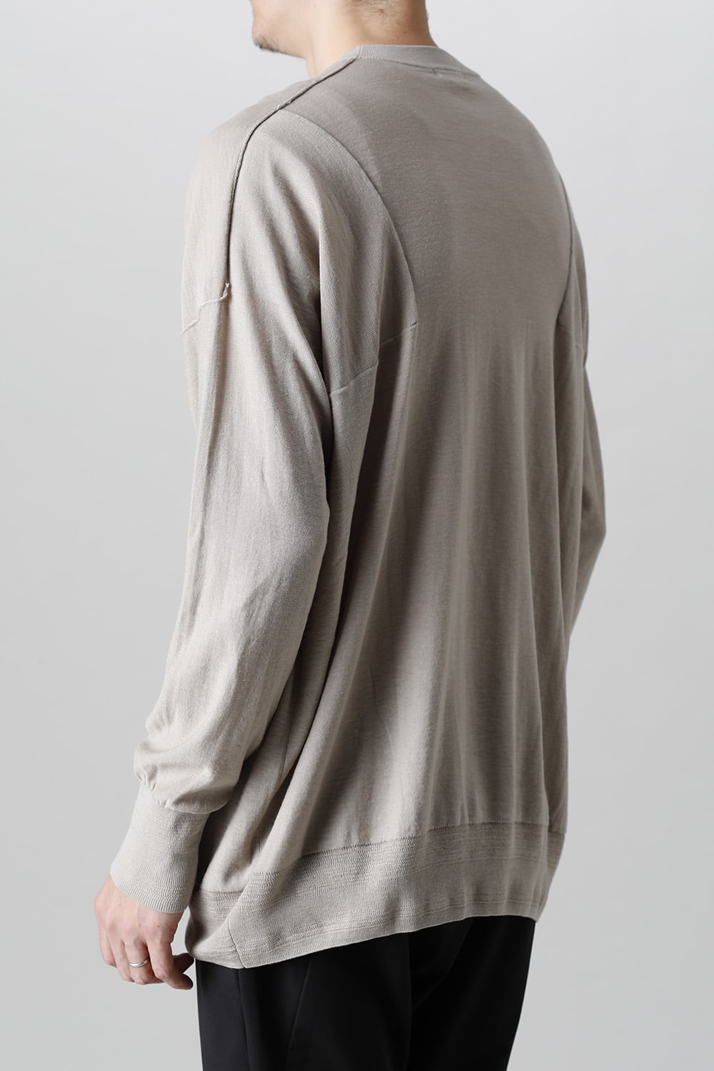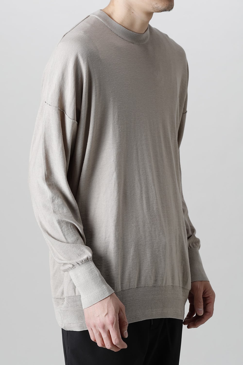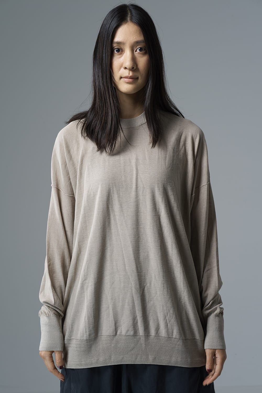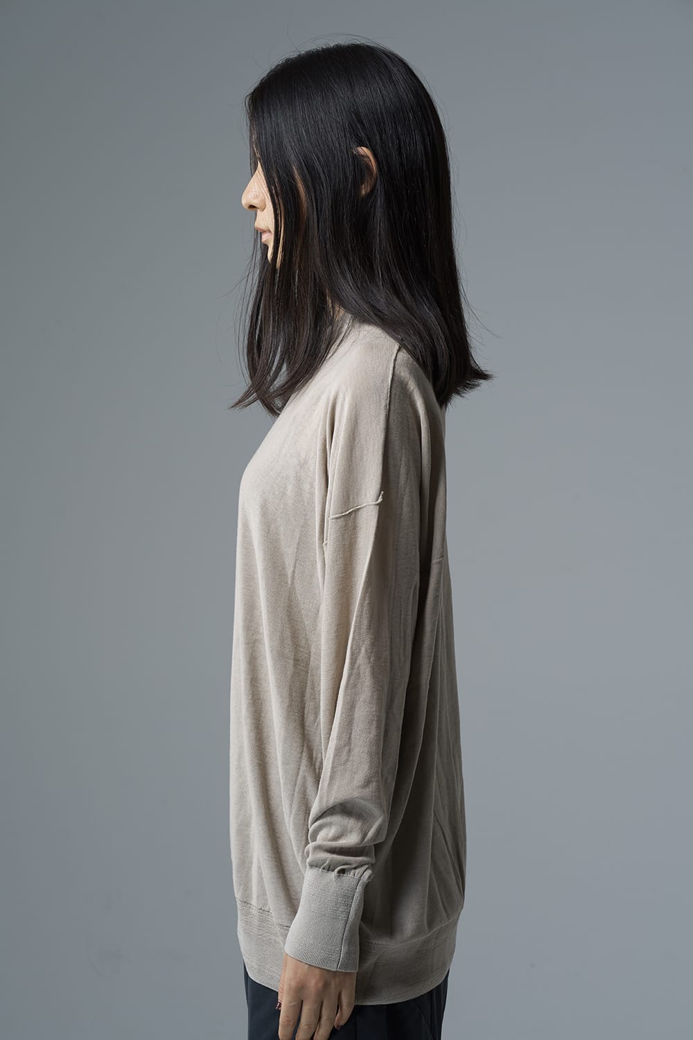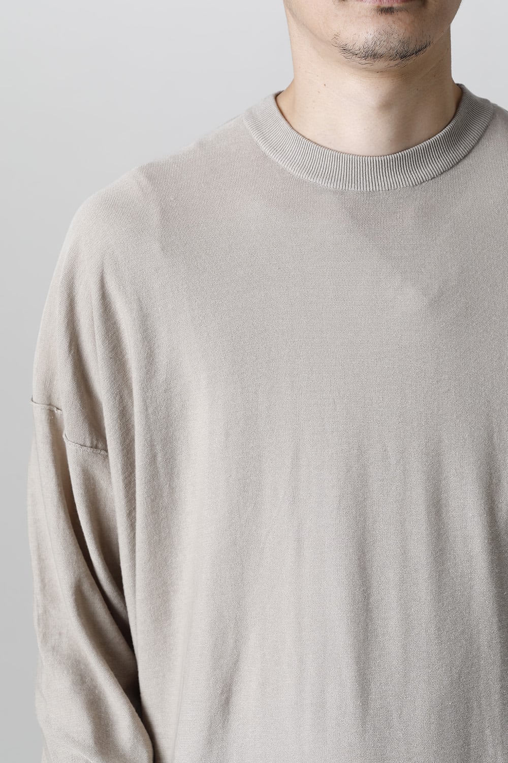 ルーズフィット ニットロングスリーブ シルク/コットン ベージュグレー