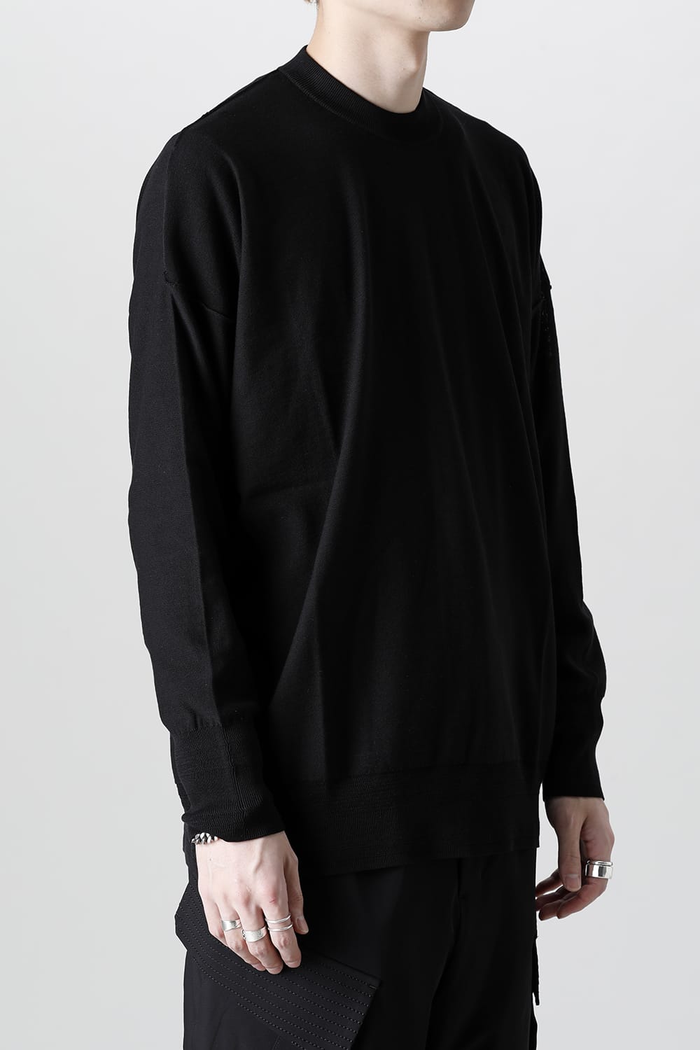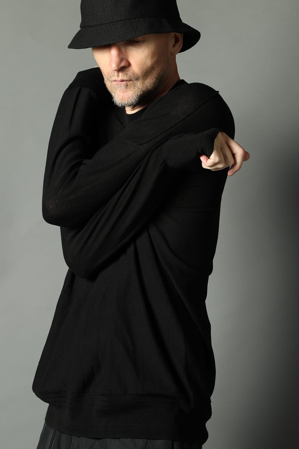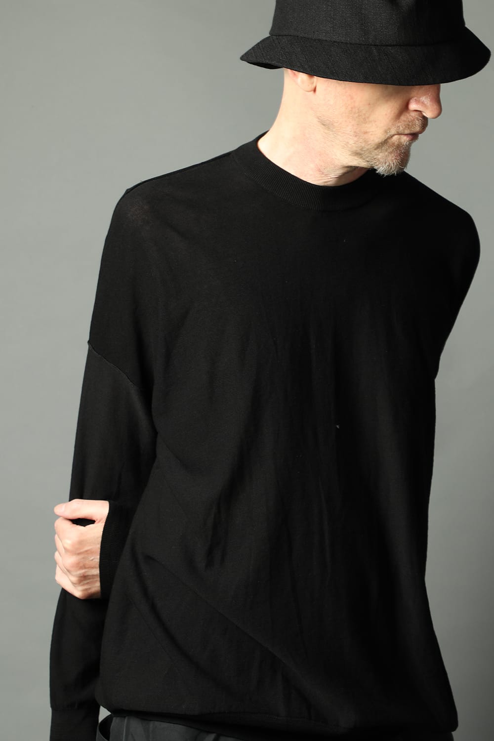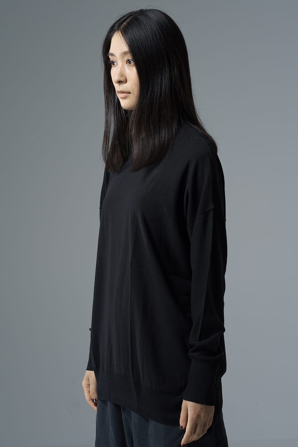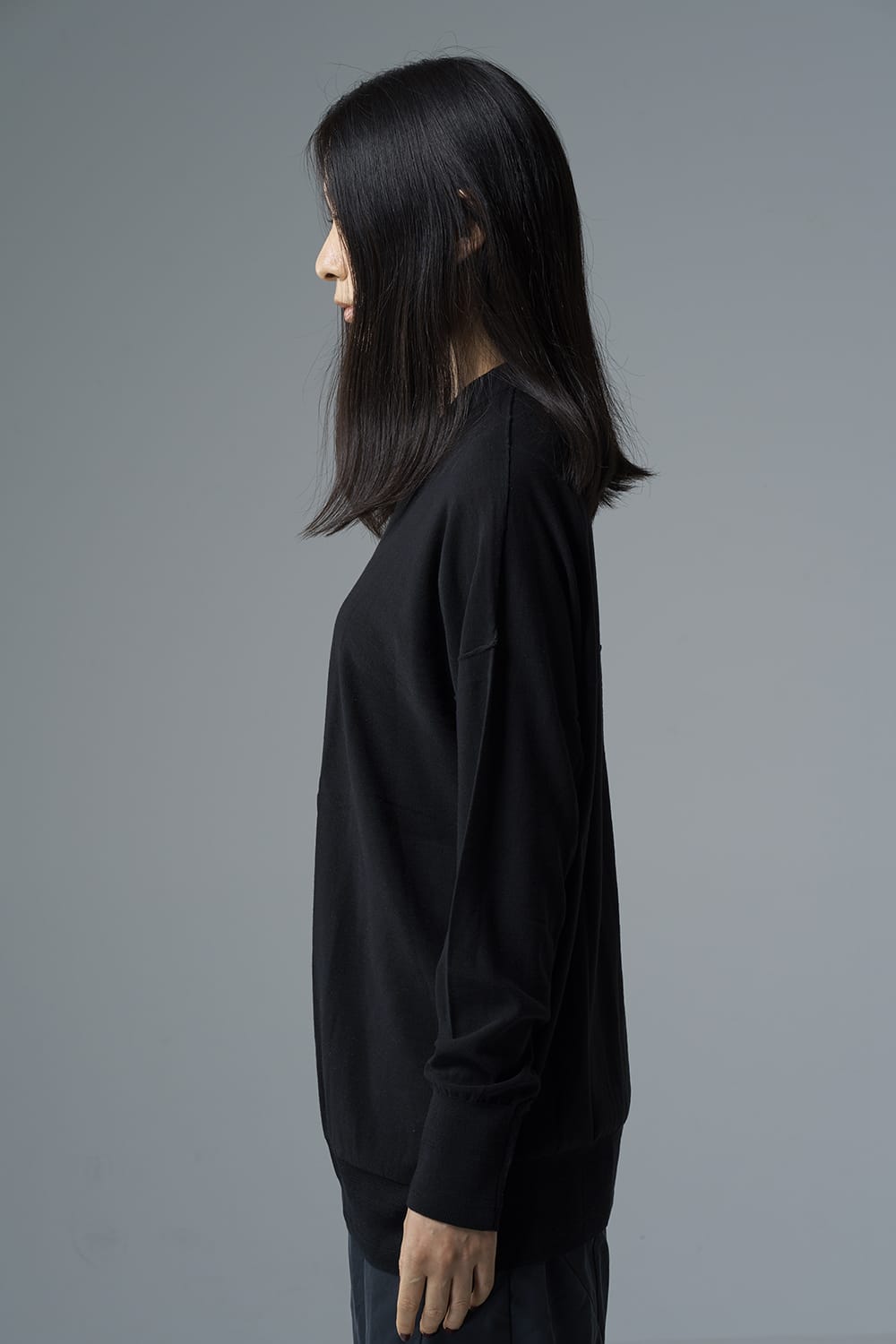 ルーズフィット ニットロングスリーブ シルク/コットン ブラック
