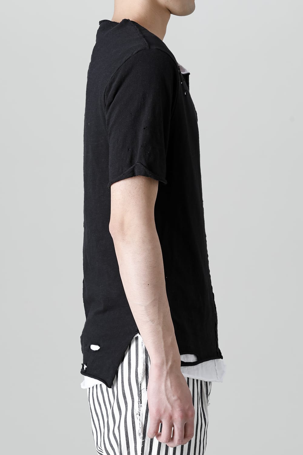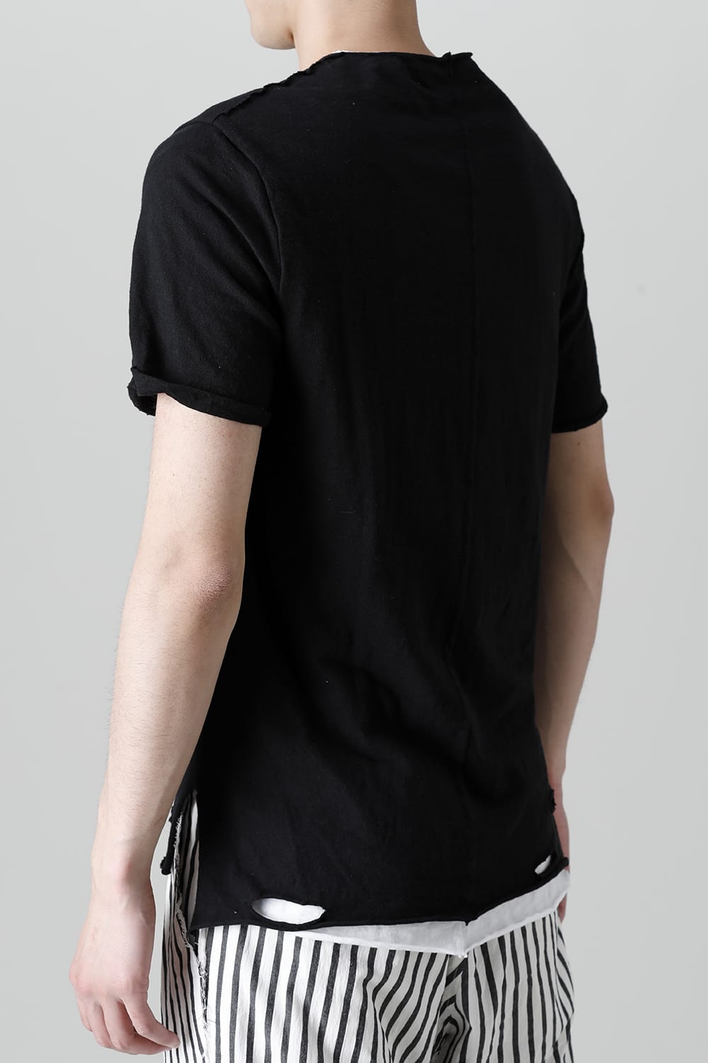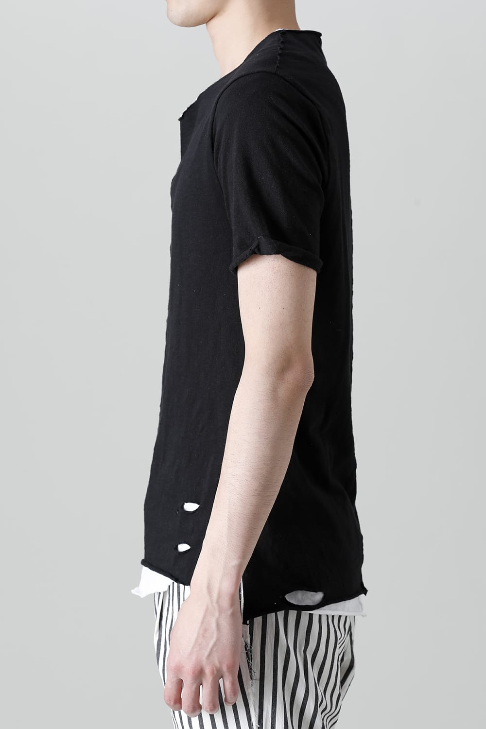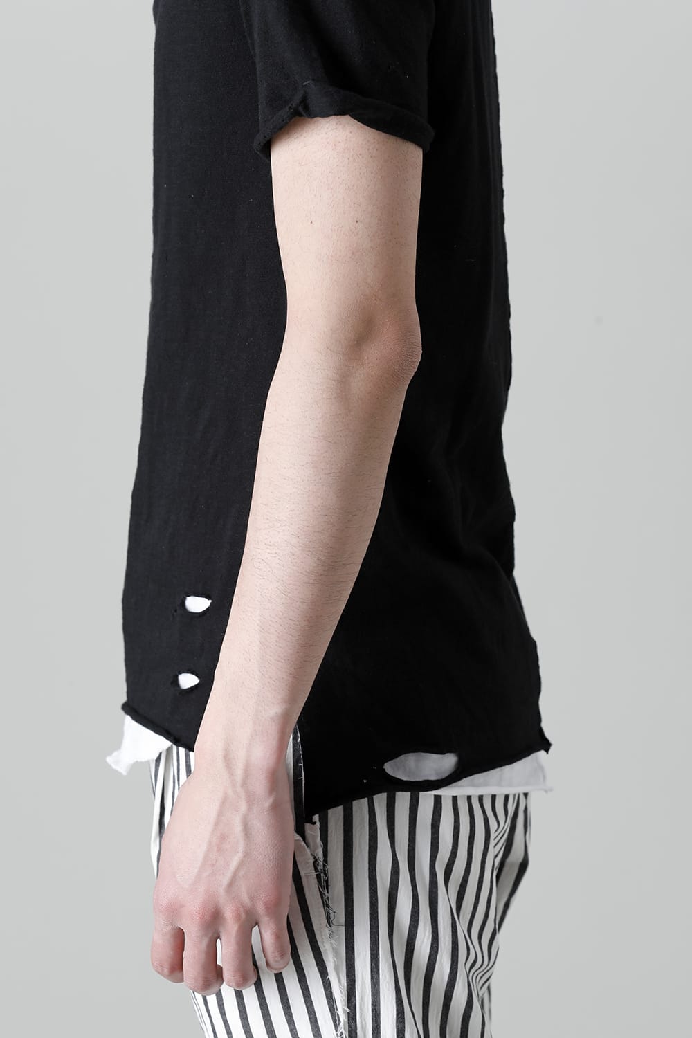 レイヤード カットソー 5th Cネック ブロークン ブラック/ホワイト