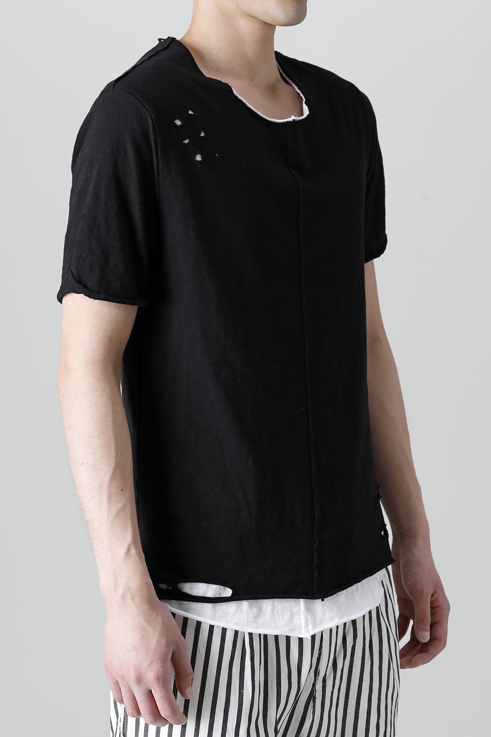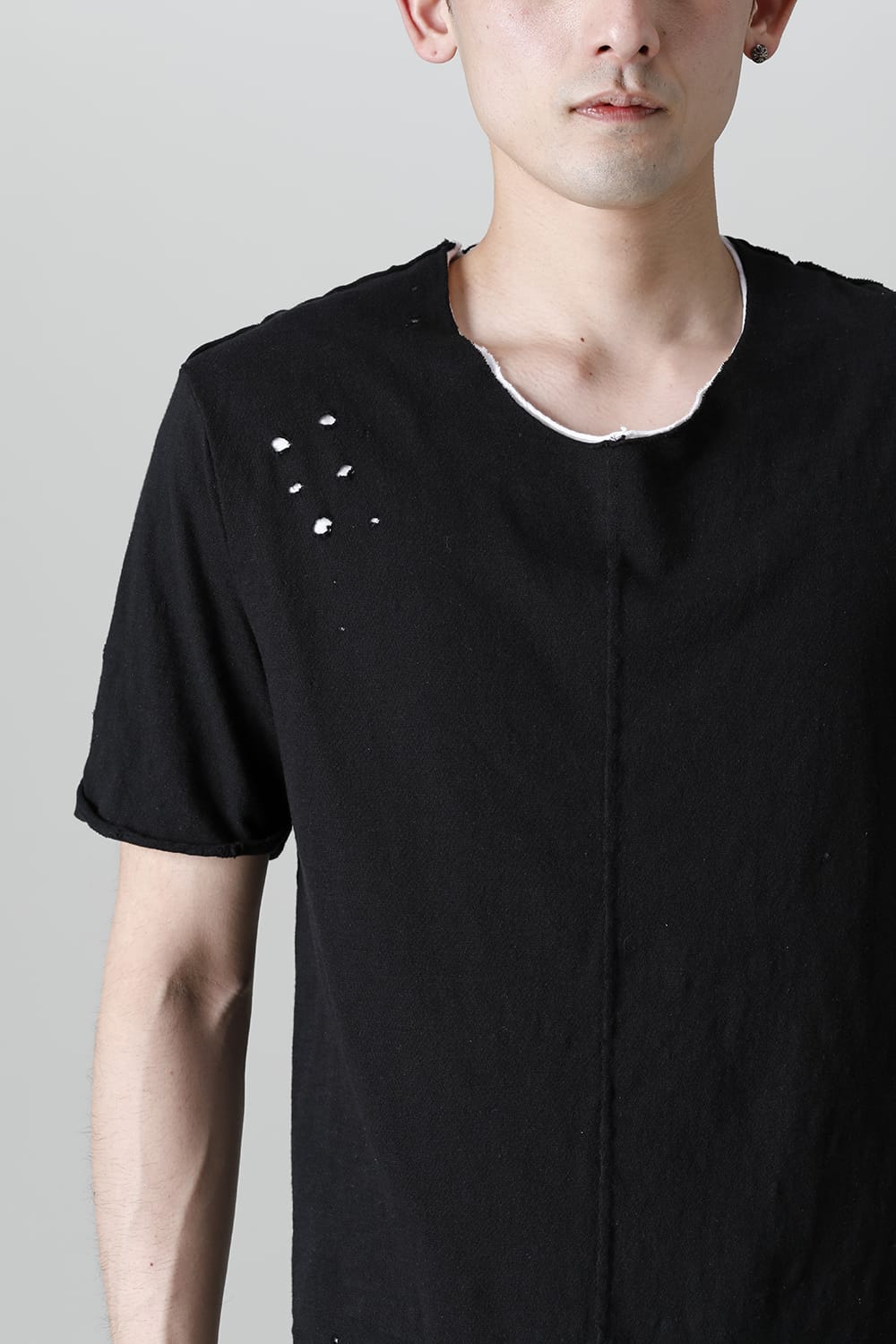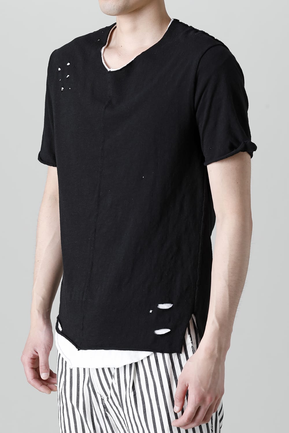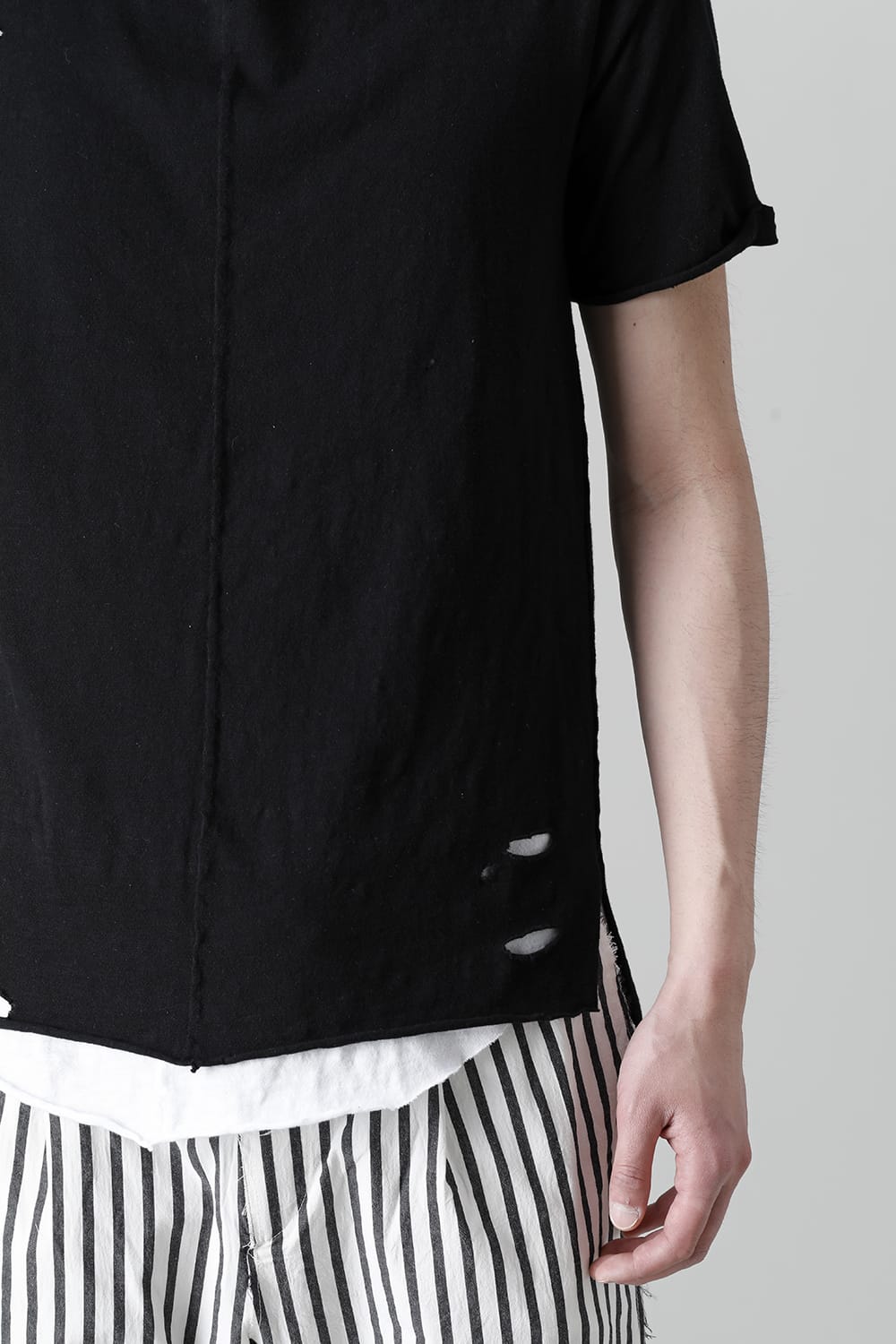 レイヤード カットソー 5th Cネック ブロークン ブラック/ホワイト