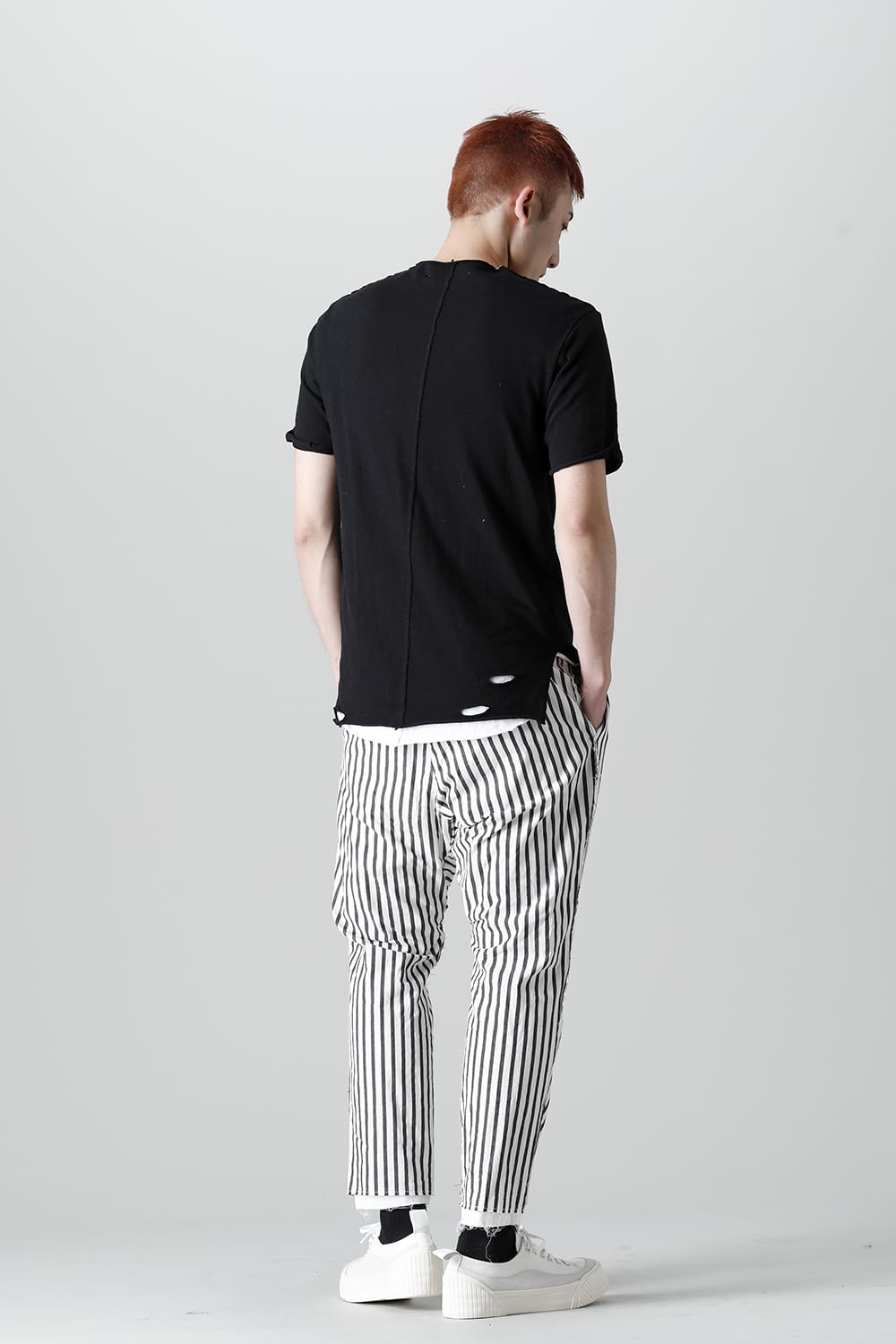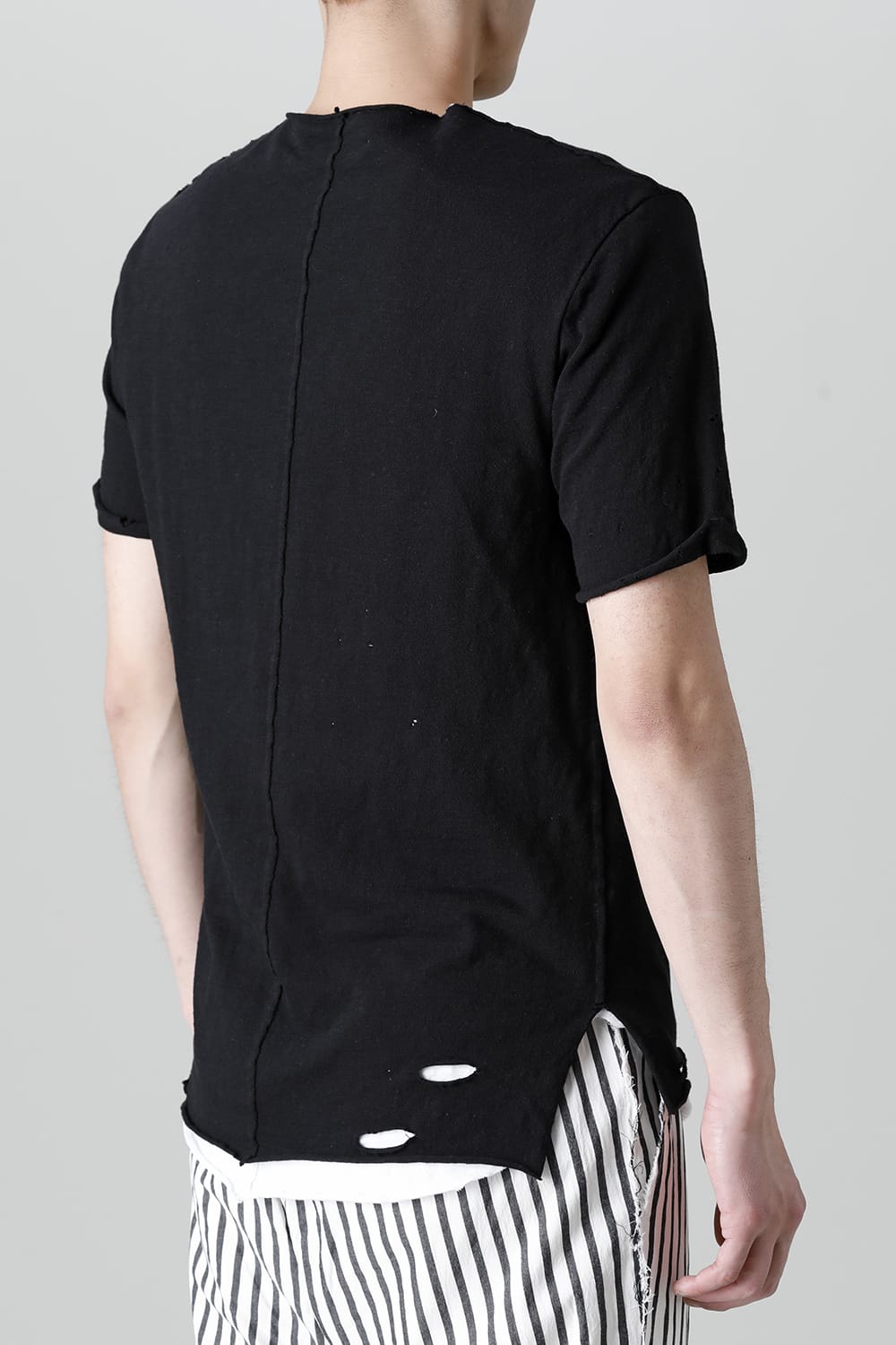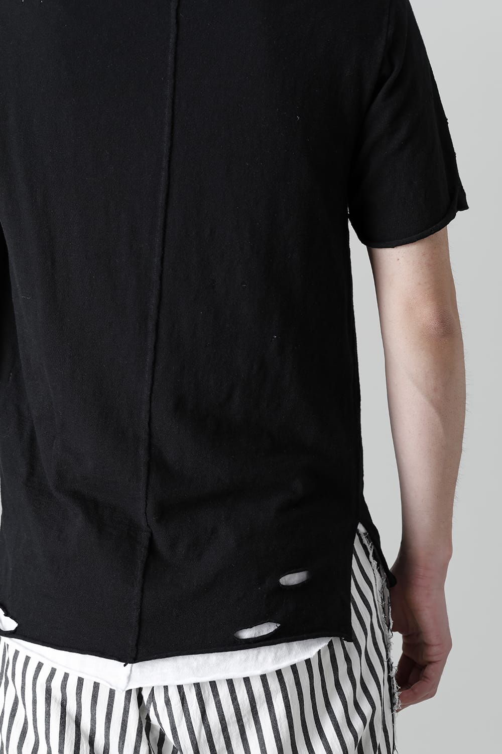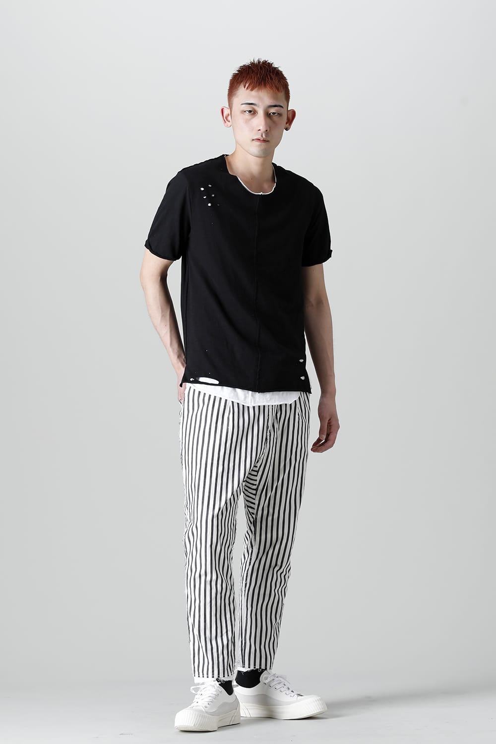 レイヤード カットソー 5th Cネック ブロークン ブラック/ホワイト