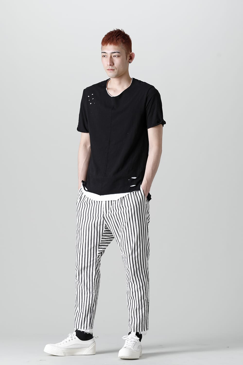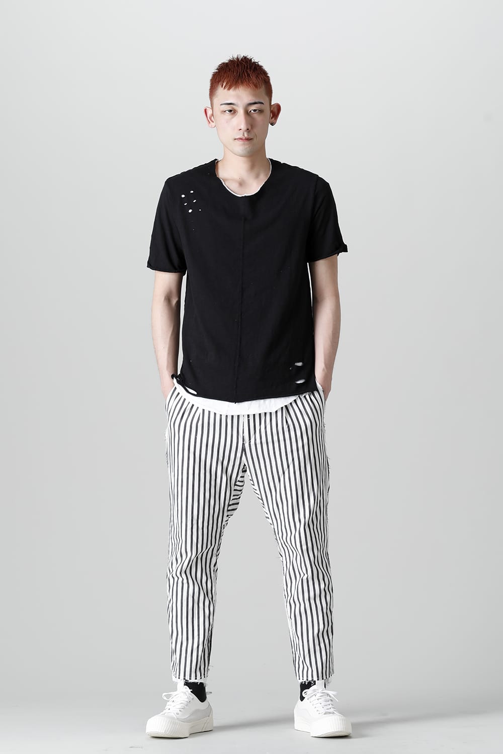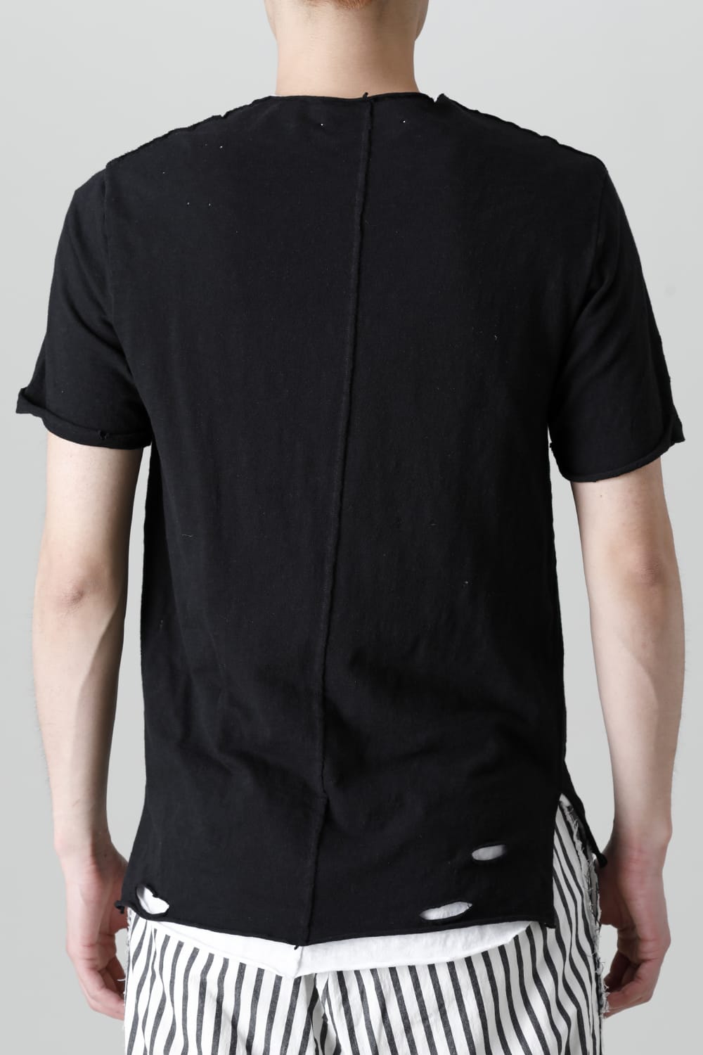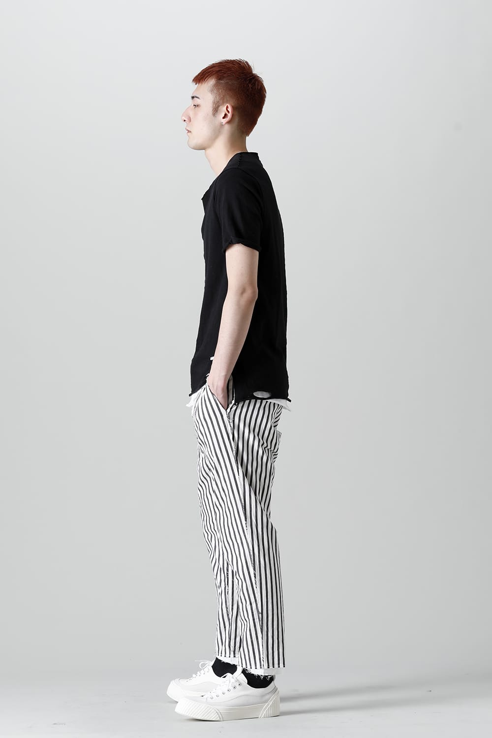 レイヤード カットソー 5th Cネック ブロークン ブラック/ホワイト