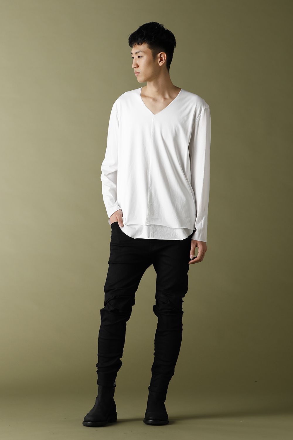 定番レイヤードカットソー、Vネックの長袖タイプ。