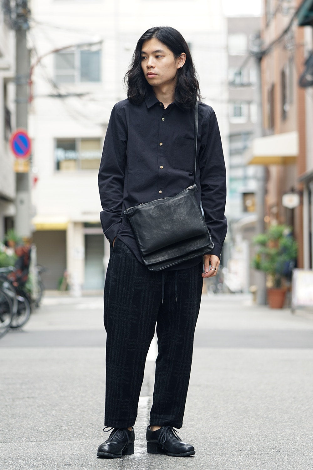 柔らかく馴染みの良い正方形型のカンガルーレザーを使用したショルダーバッグ。