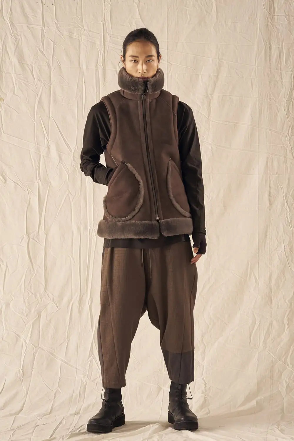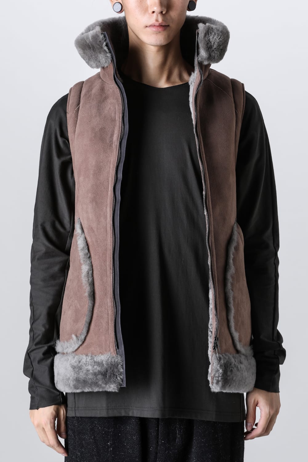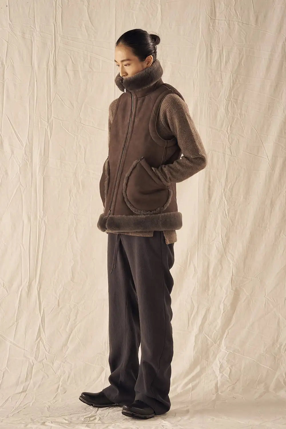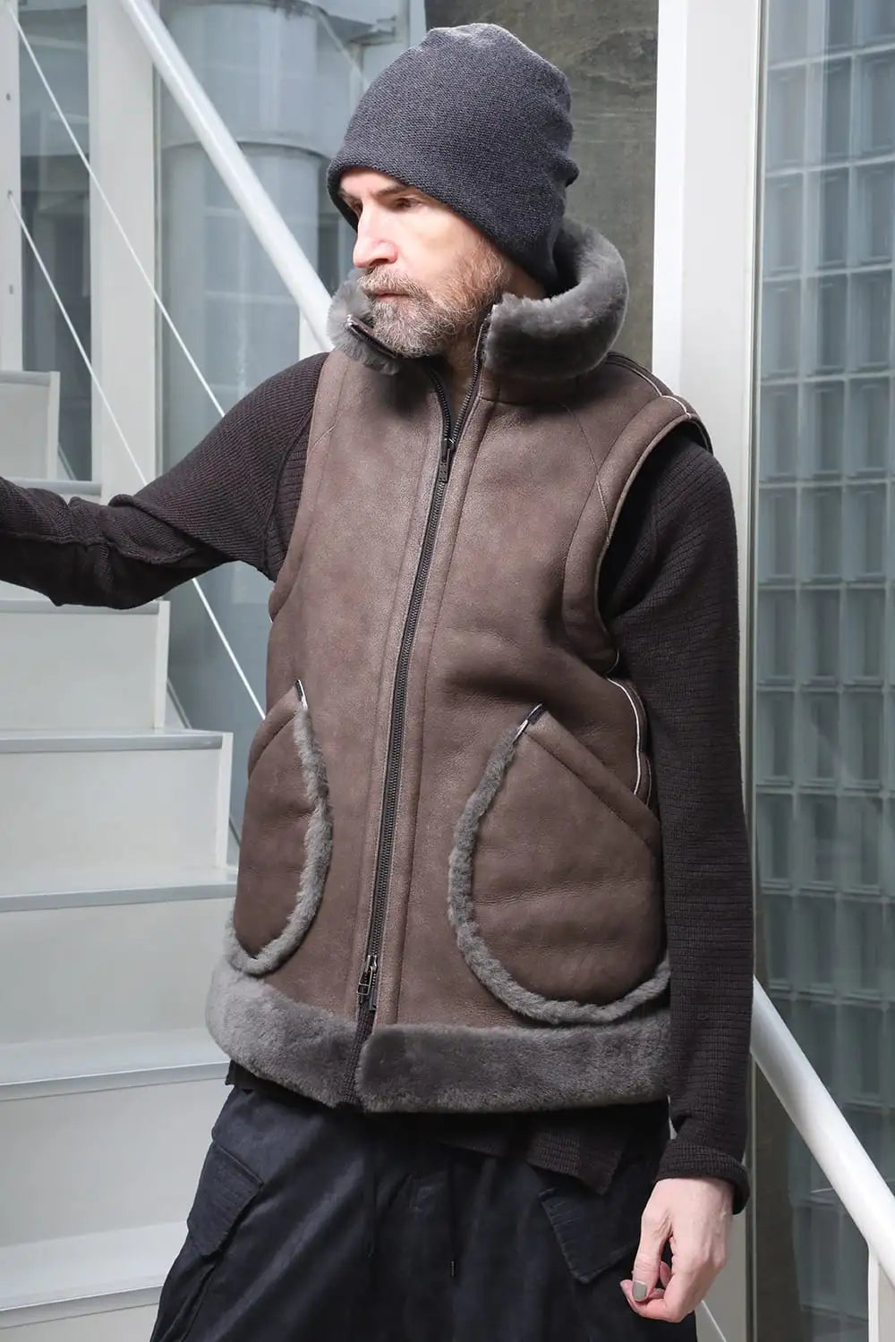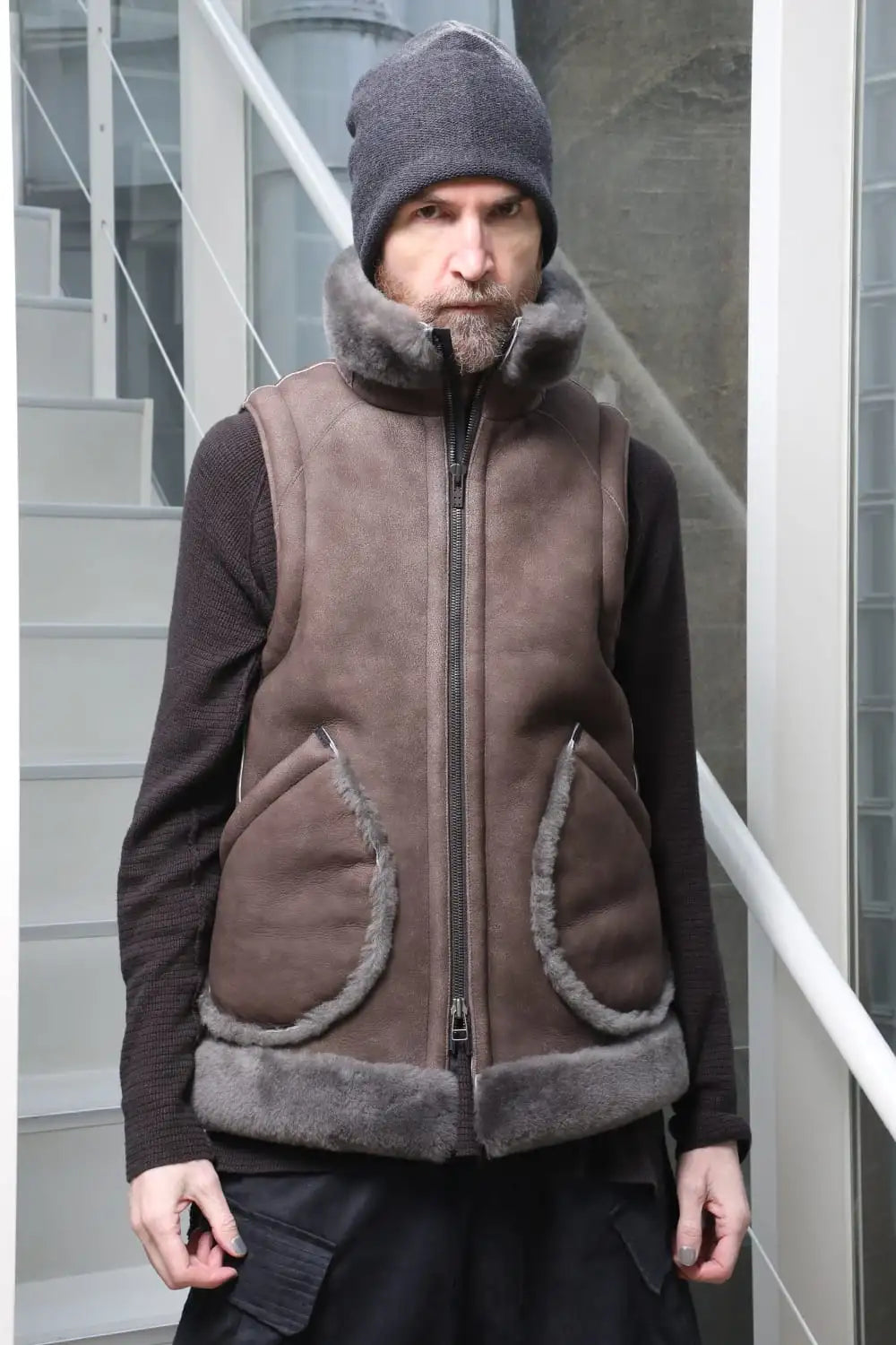 シンプルなレギュラーフィットのフロントファスナー仕立てのベスト。