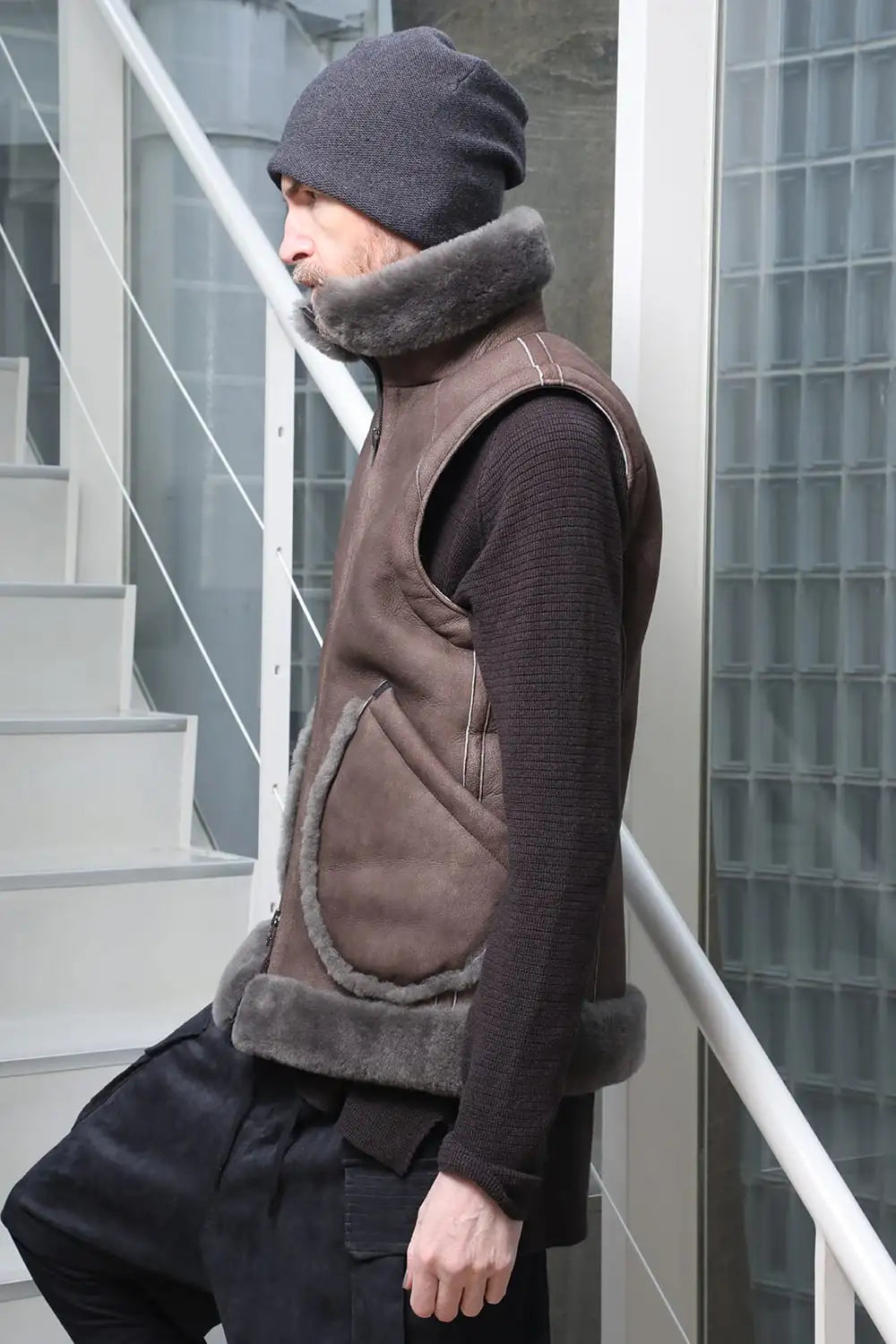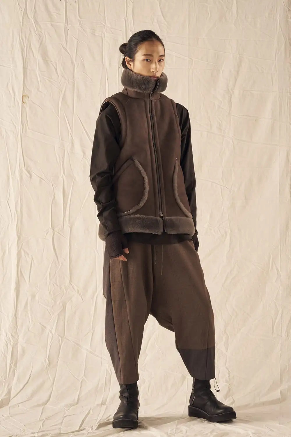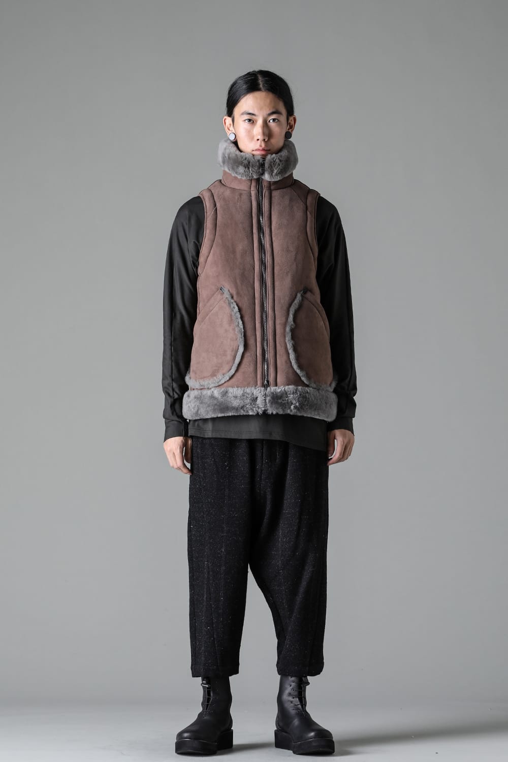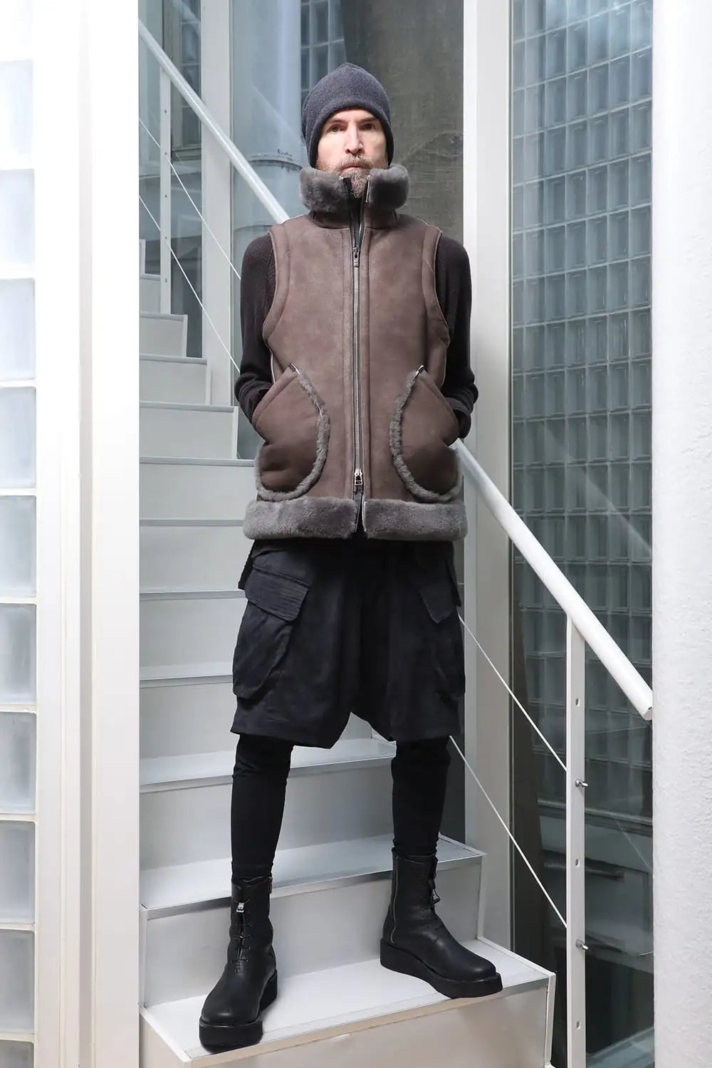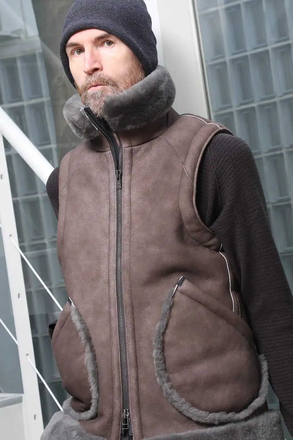 シンプルなレギュラーフィットのフロントファスナー仕立てのベスト。