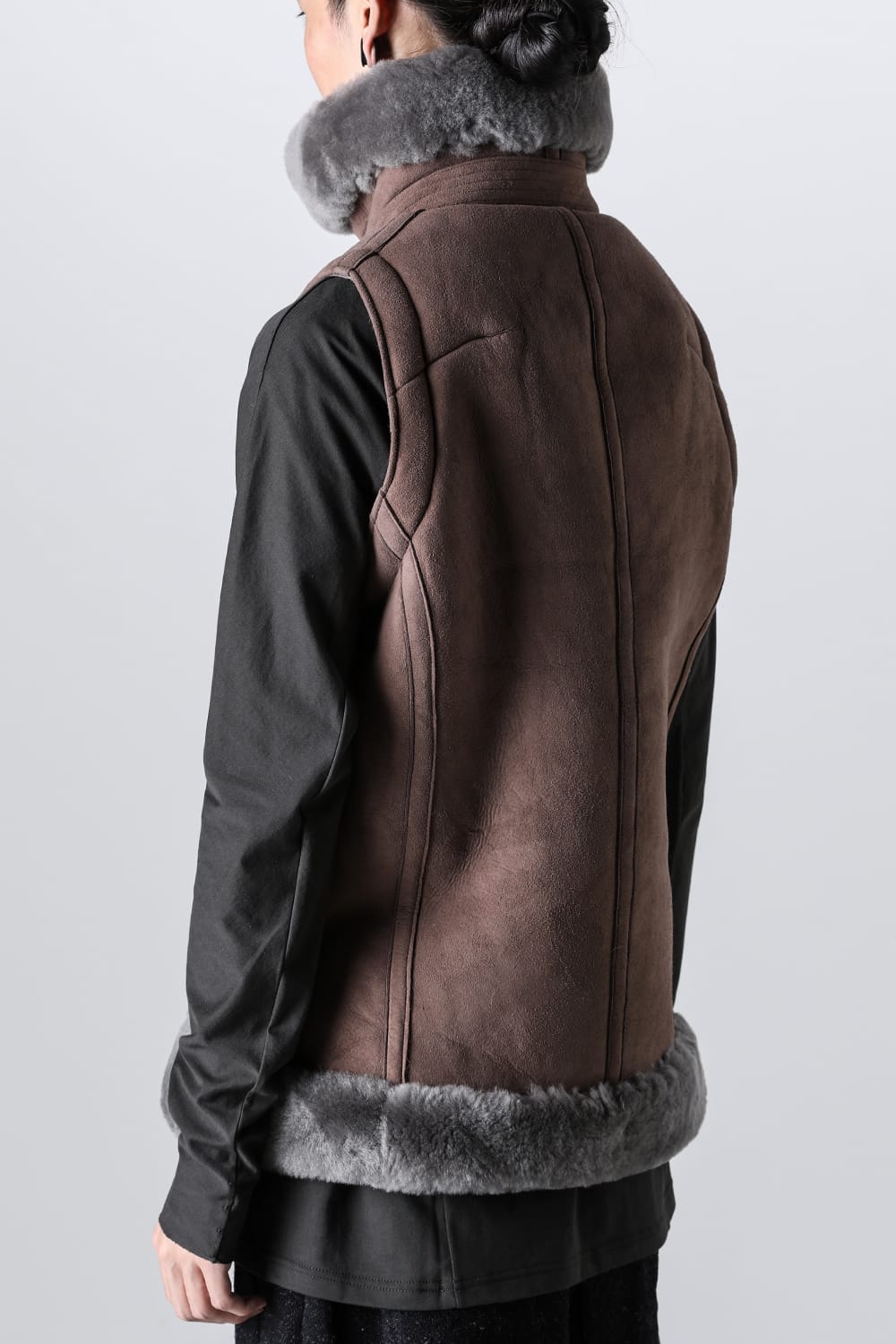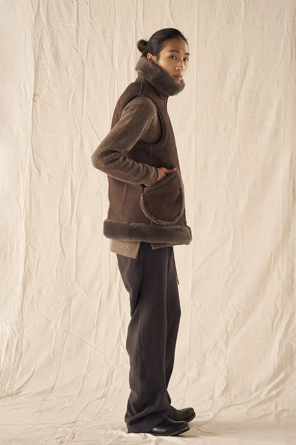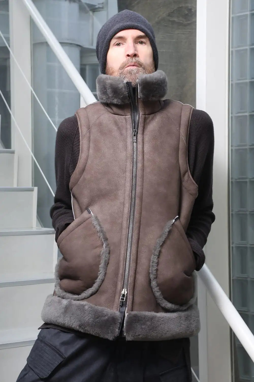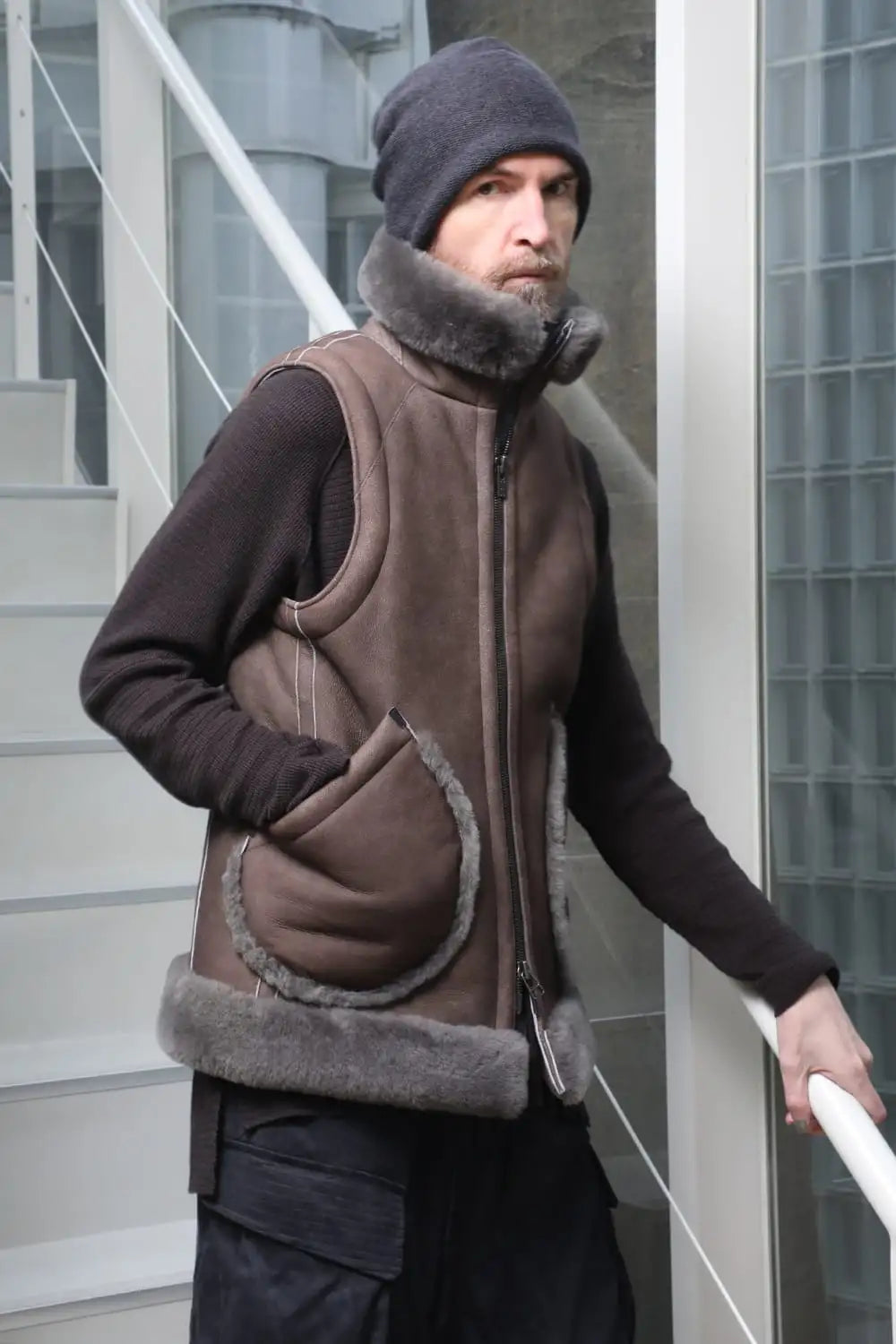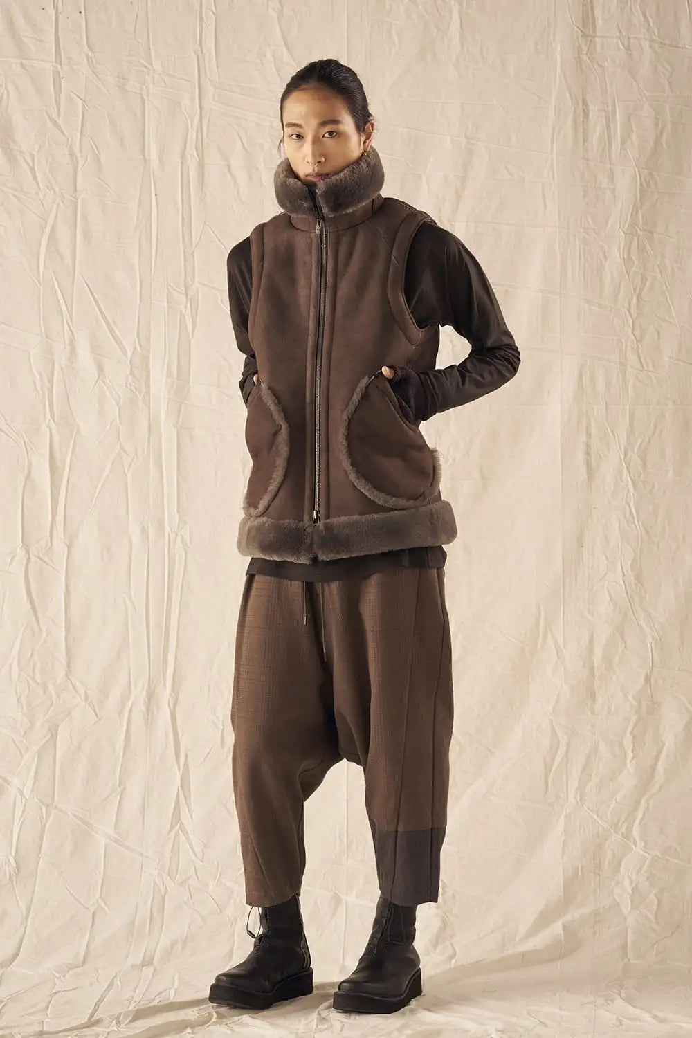 シンプルなレギュラーフィットのフロントファスナー仕立てのベスト。