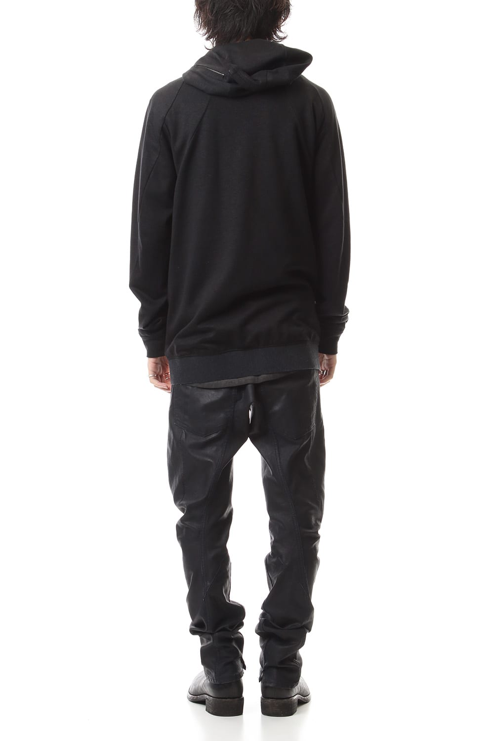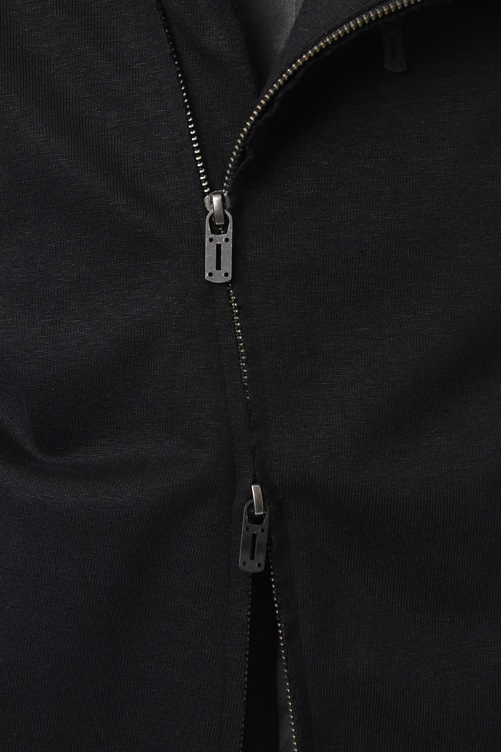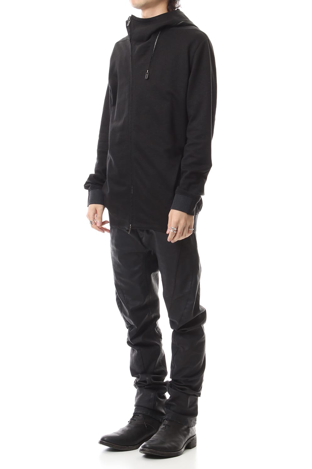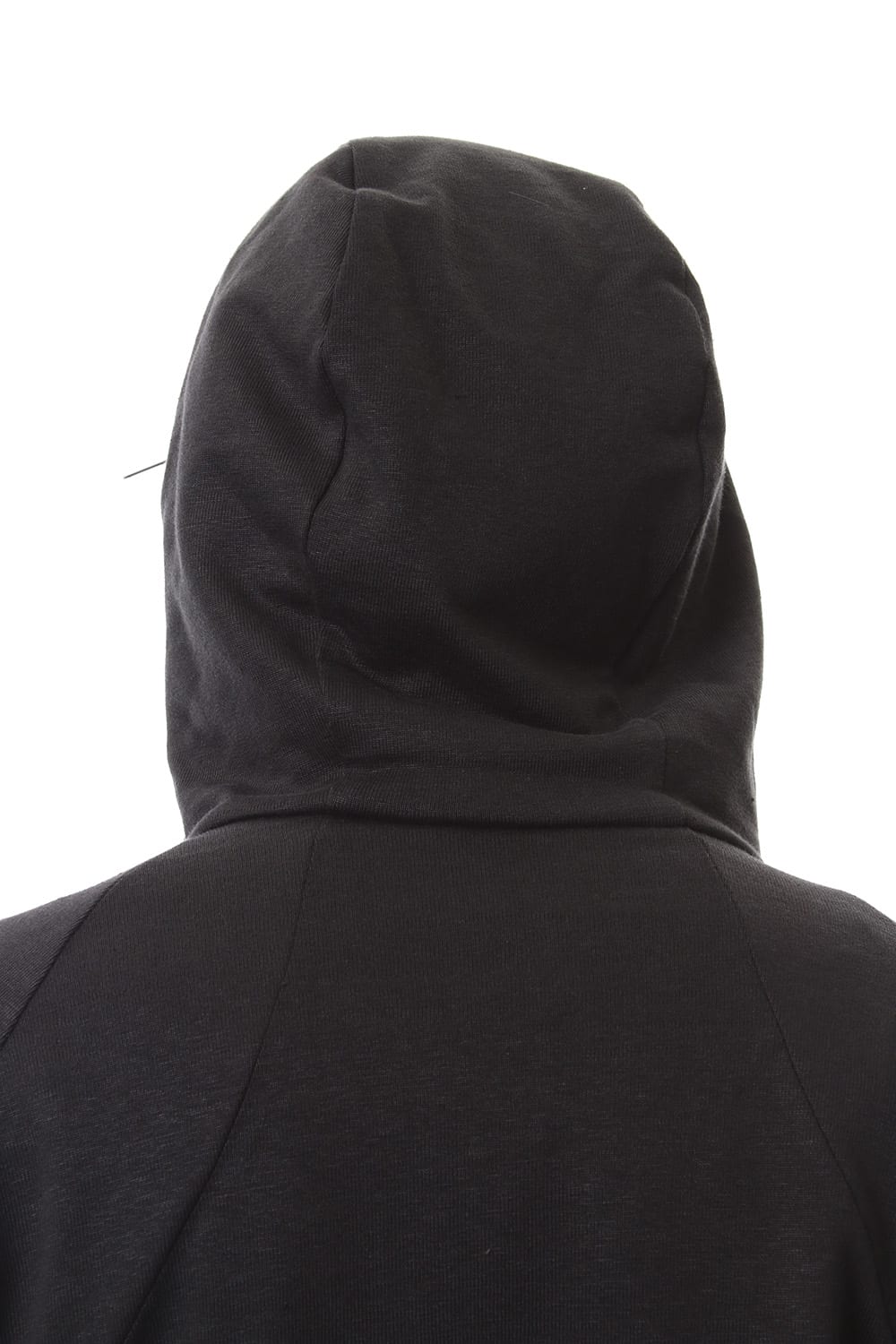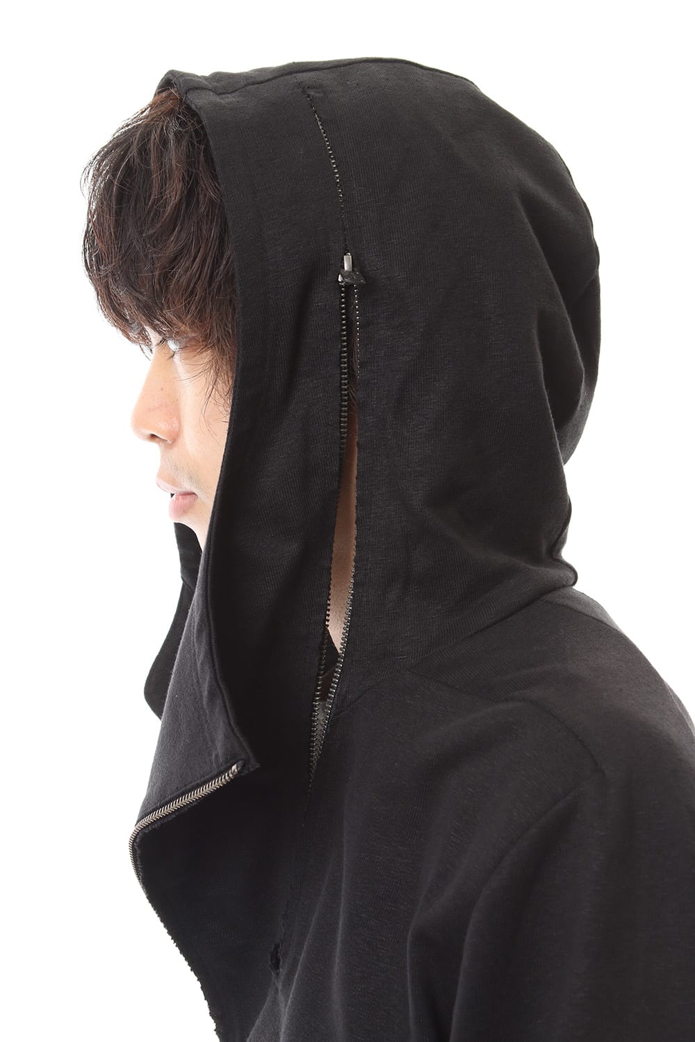 ・バイアスファスナーのハイネックフードは立体的な形状にし、頭を包み込むようなパターンにしています。