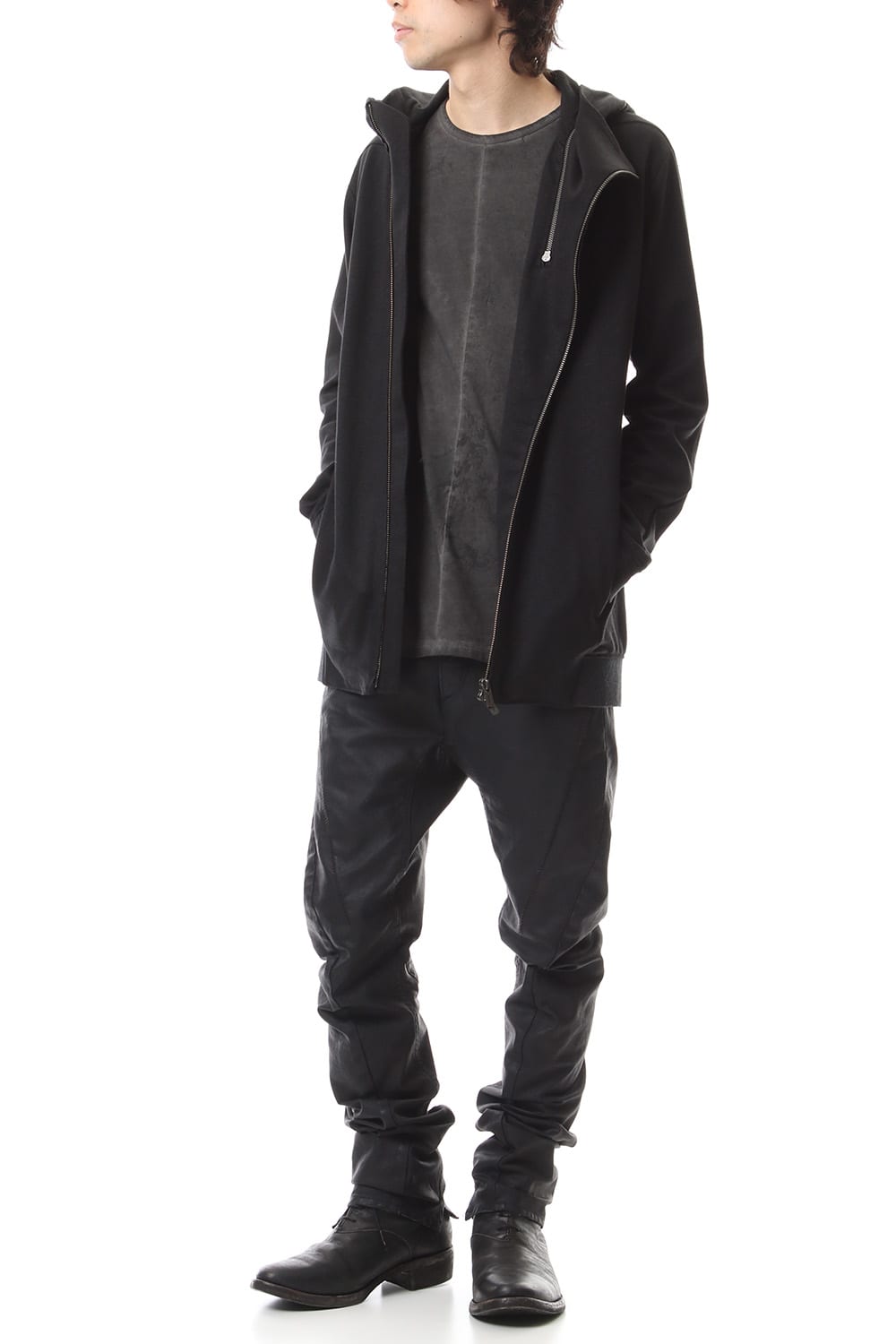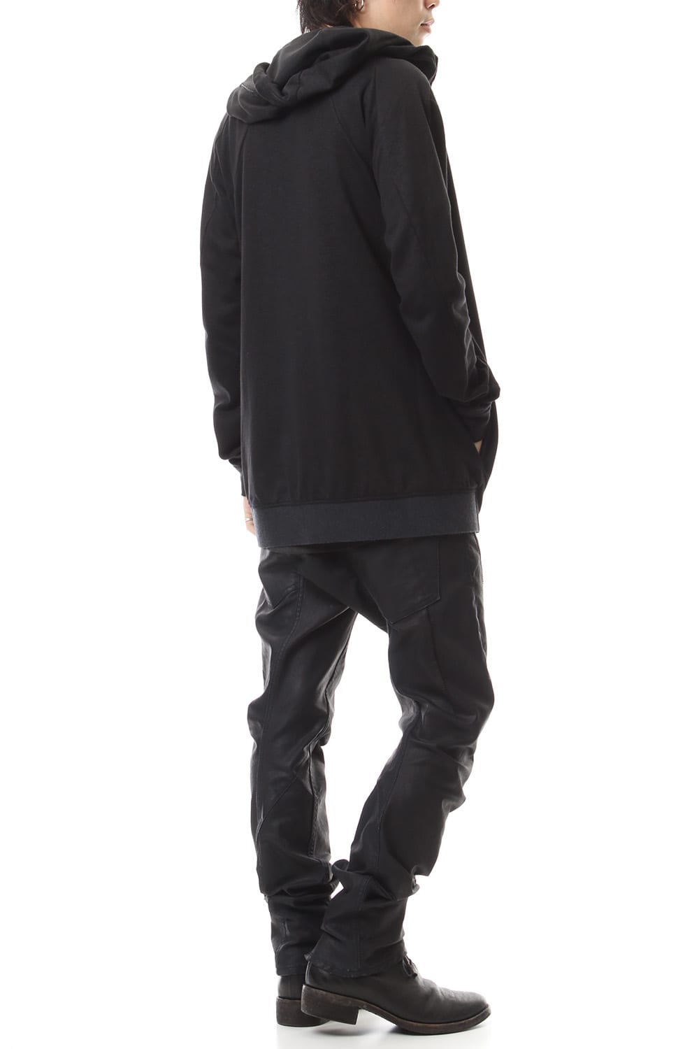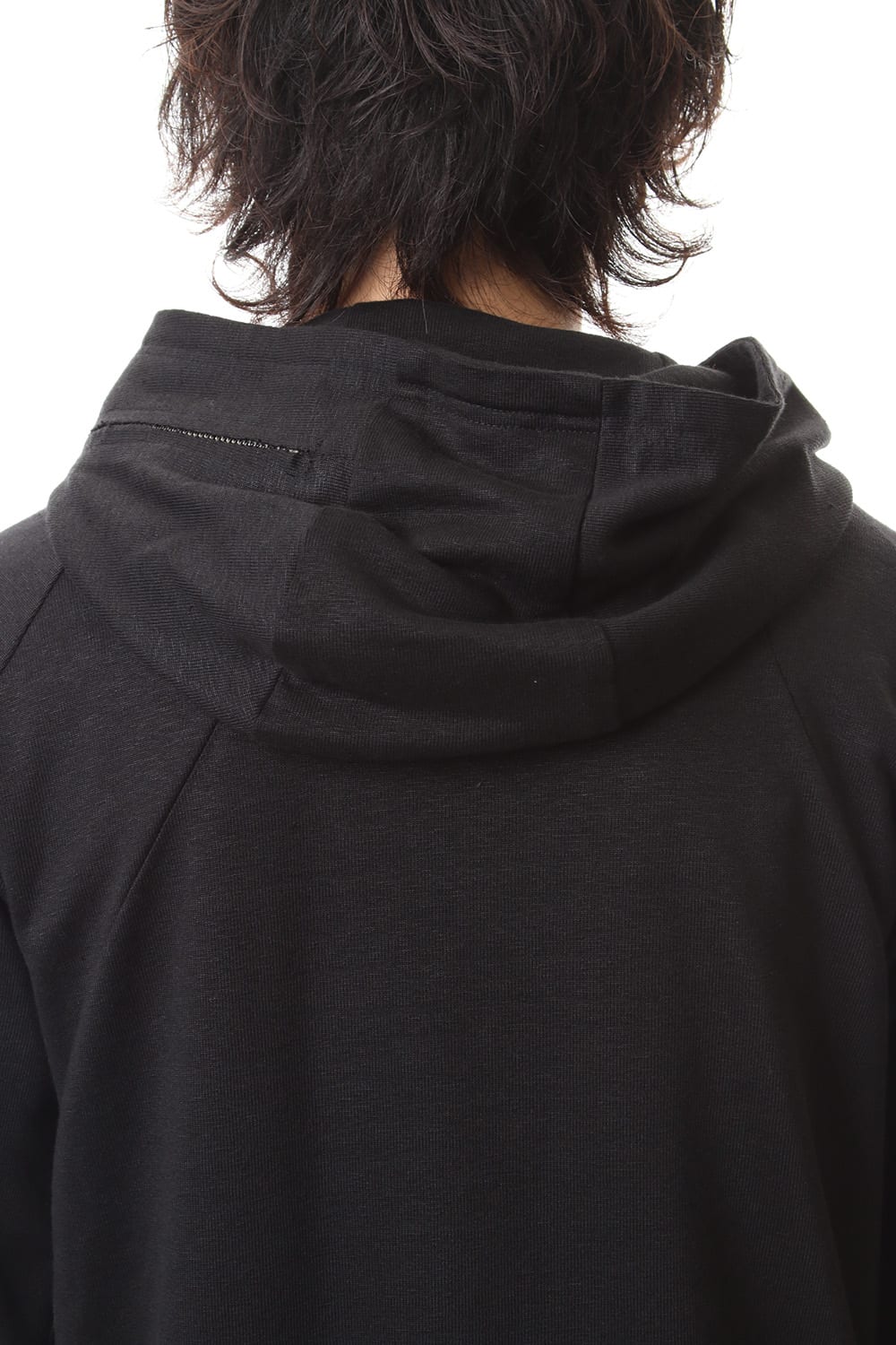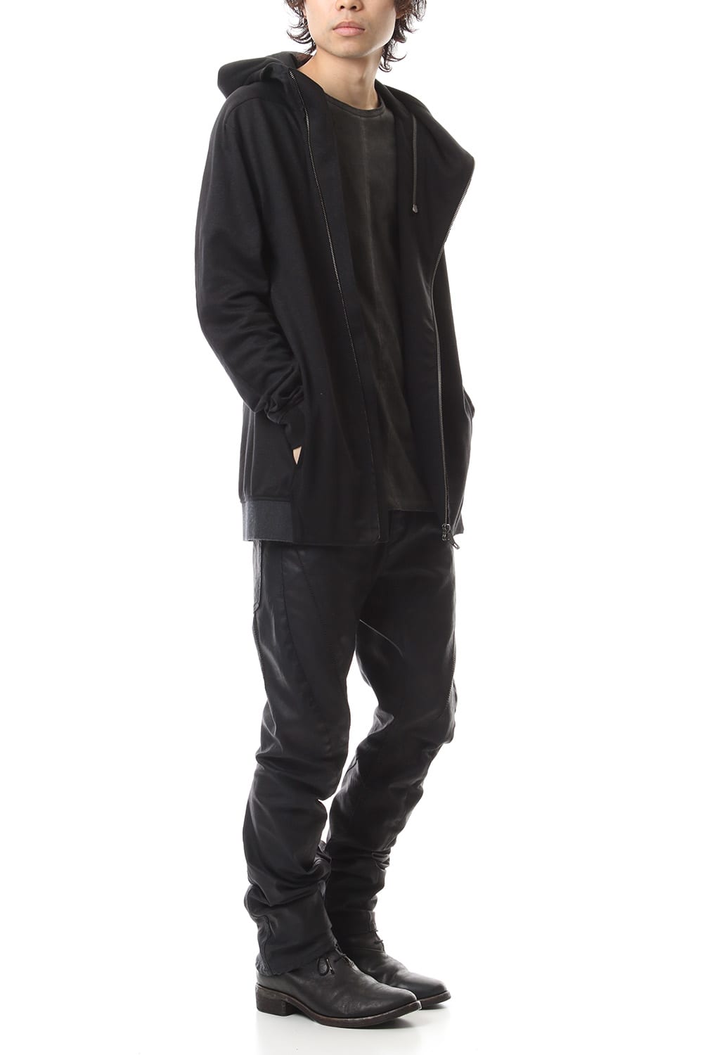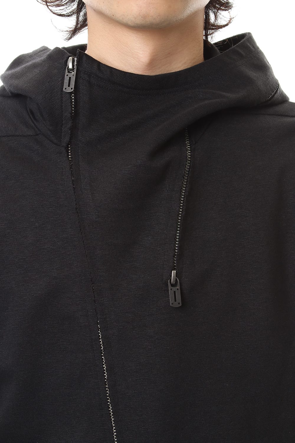 ・バイアスファスナーのハイネックフードは立体的な形状にし、頭を包み込むようなパターンにしています。