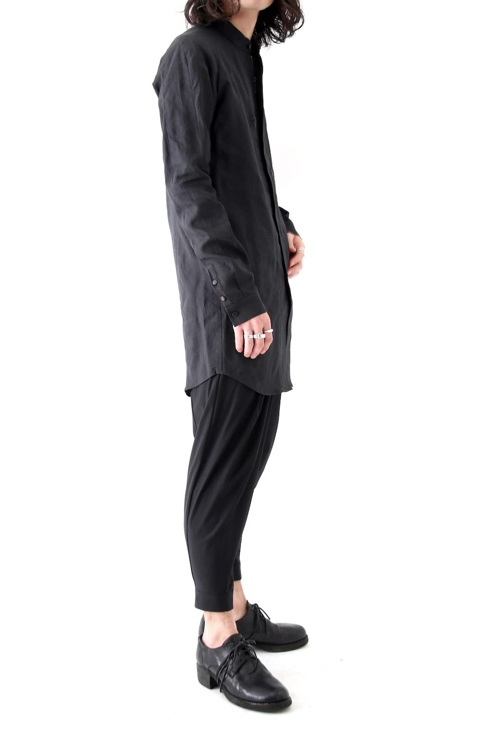 Long Shirt Washi Washer Finish Black