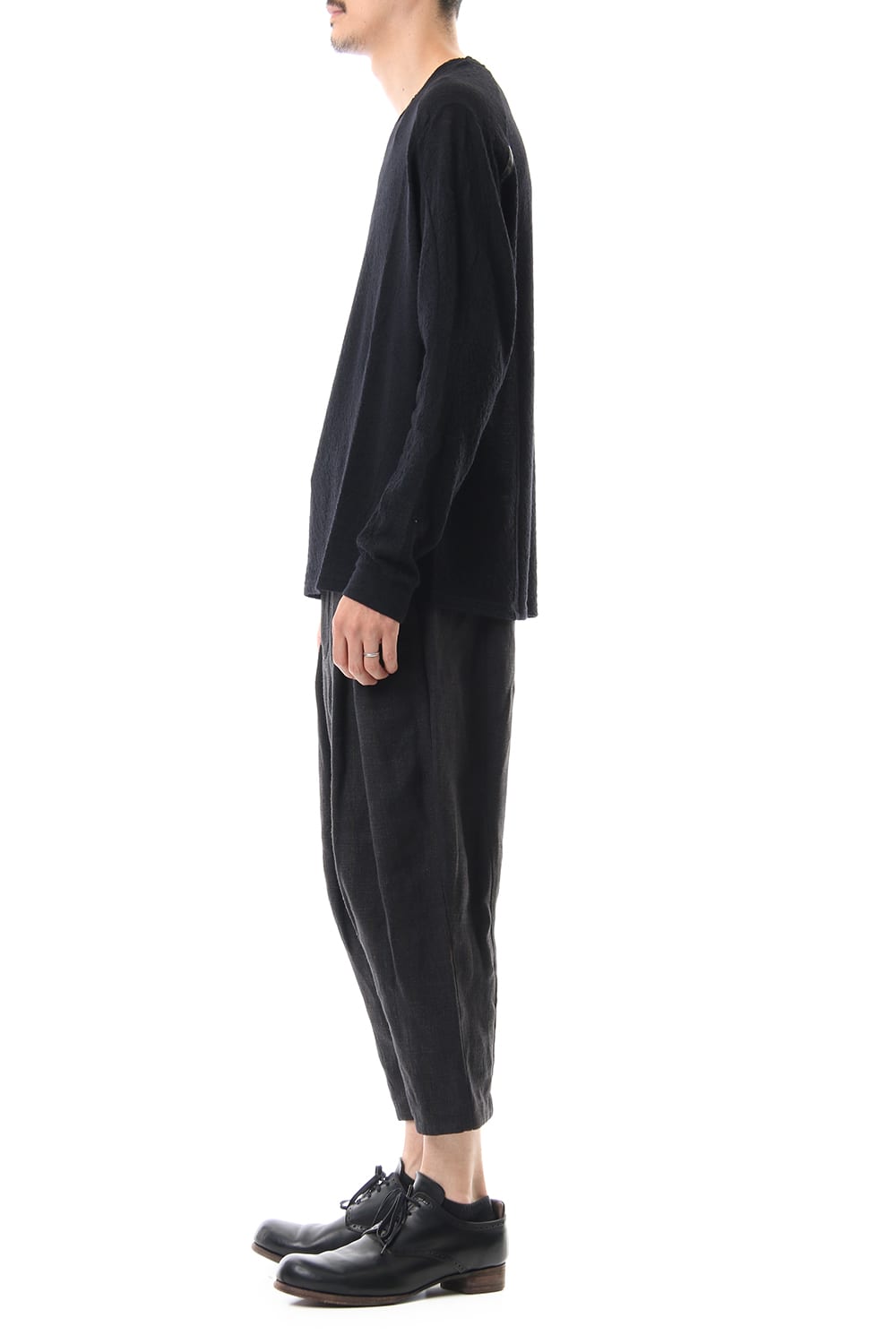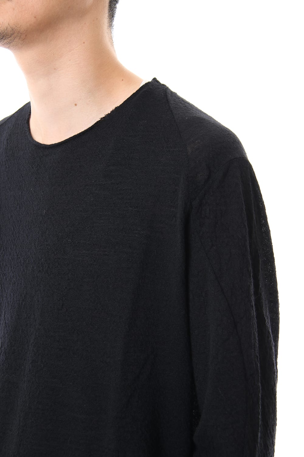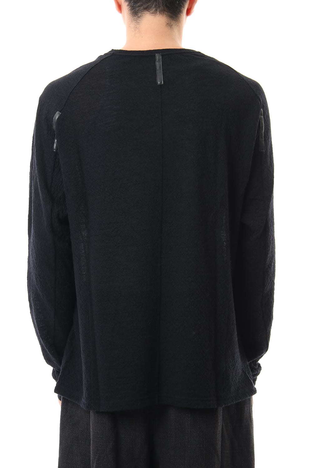 着丈を長く取り、脇にスリットが入っています。レギュラーフィットとなり、伸びやすい部分にポリエステルタイプのテープを配置しています。