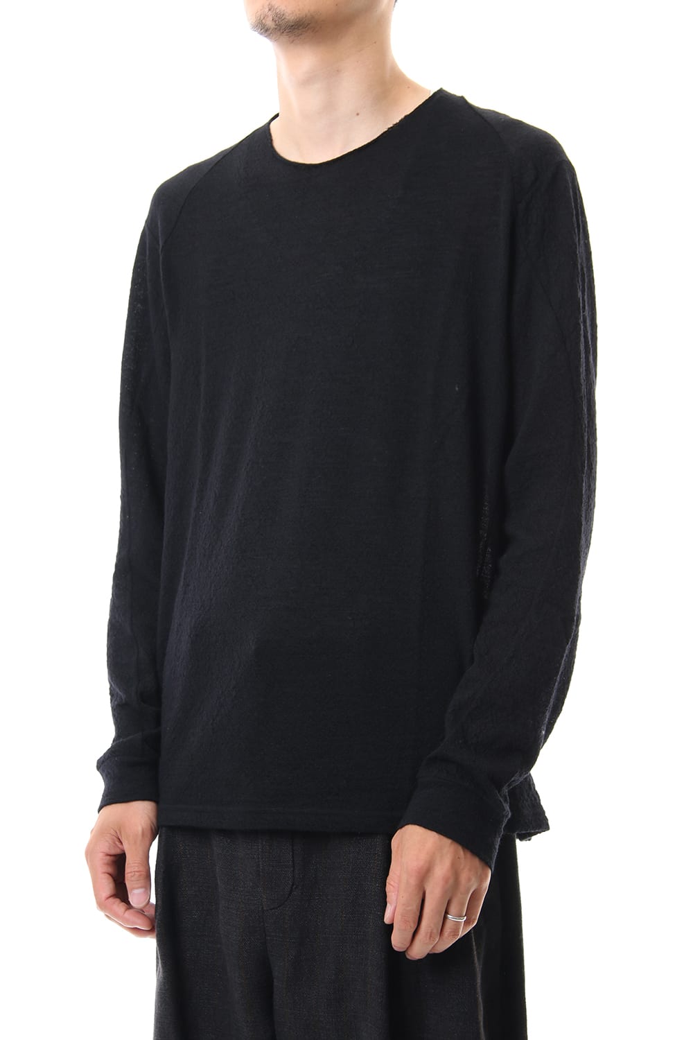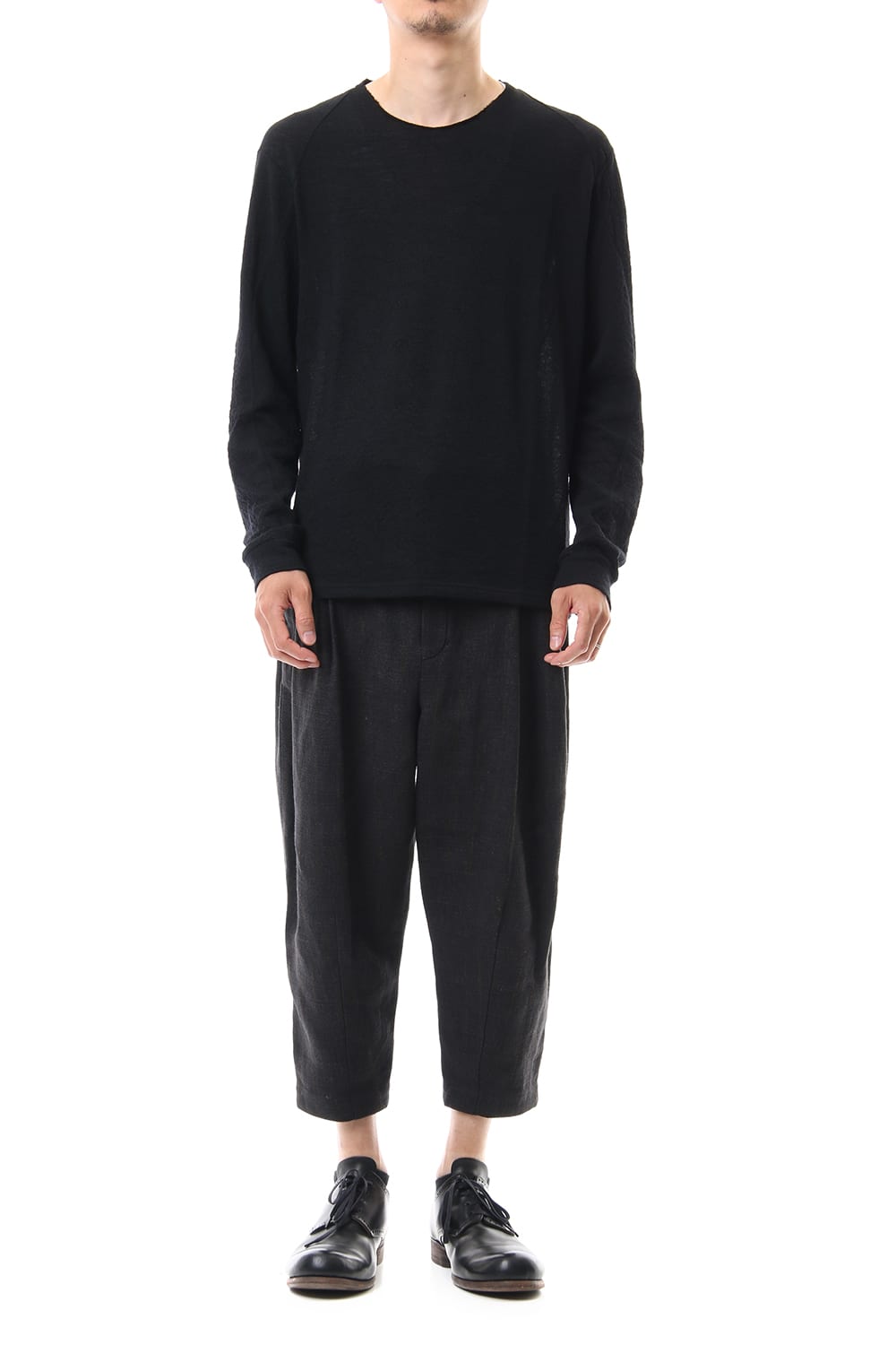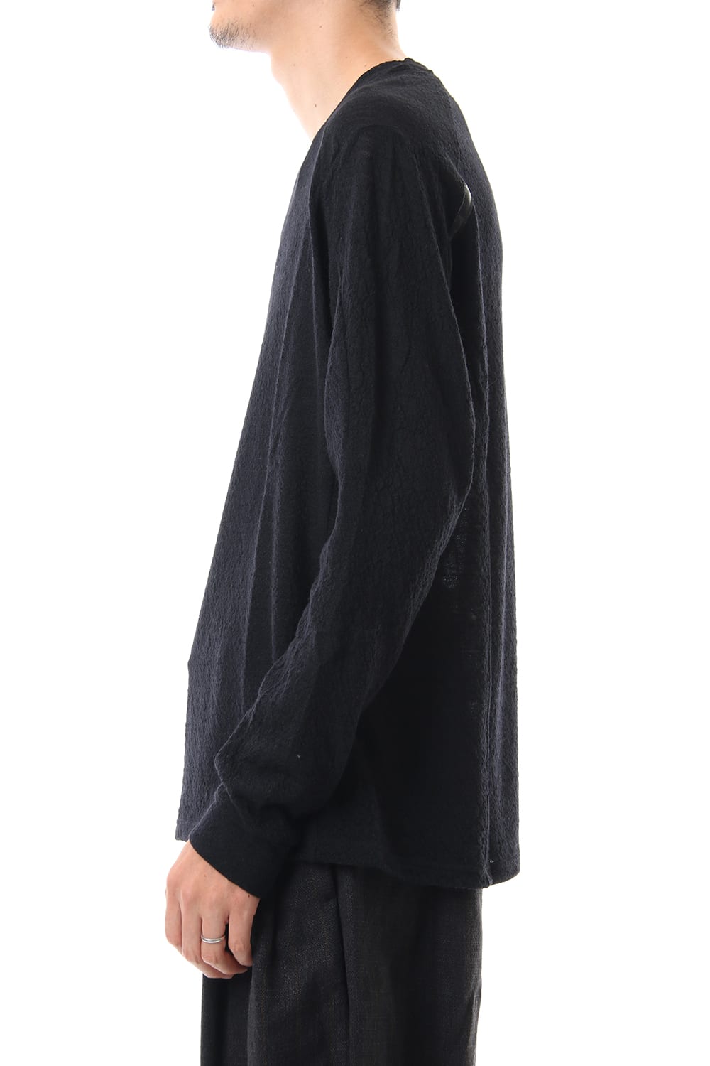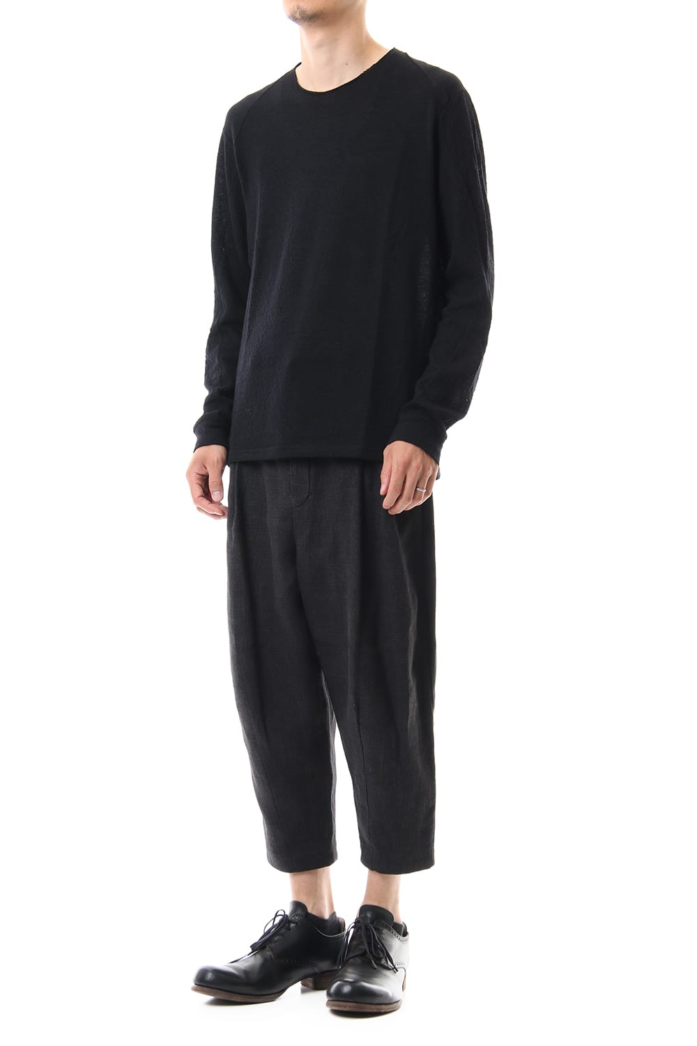 着丈を長く取り、脇にスリットが入っています。レギュラーフィットとなり、伸びやすい部分にポリエステルタイプのテープを配置しています。