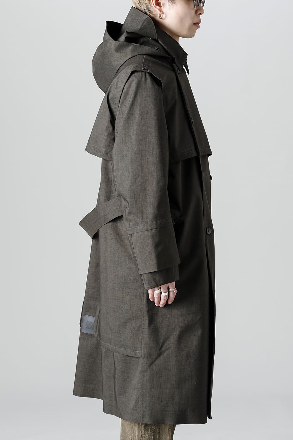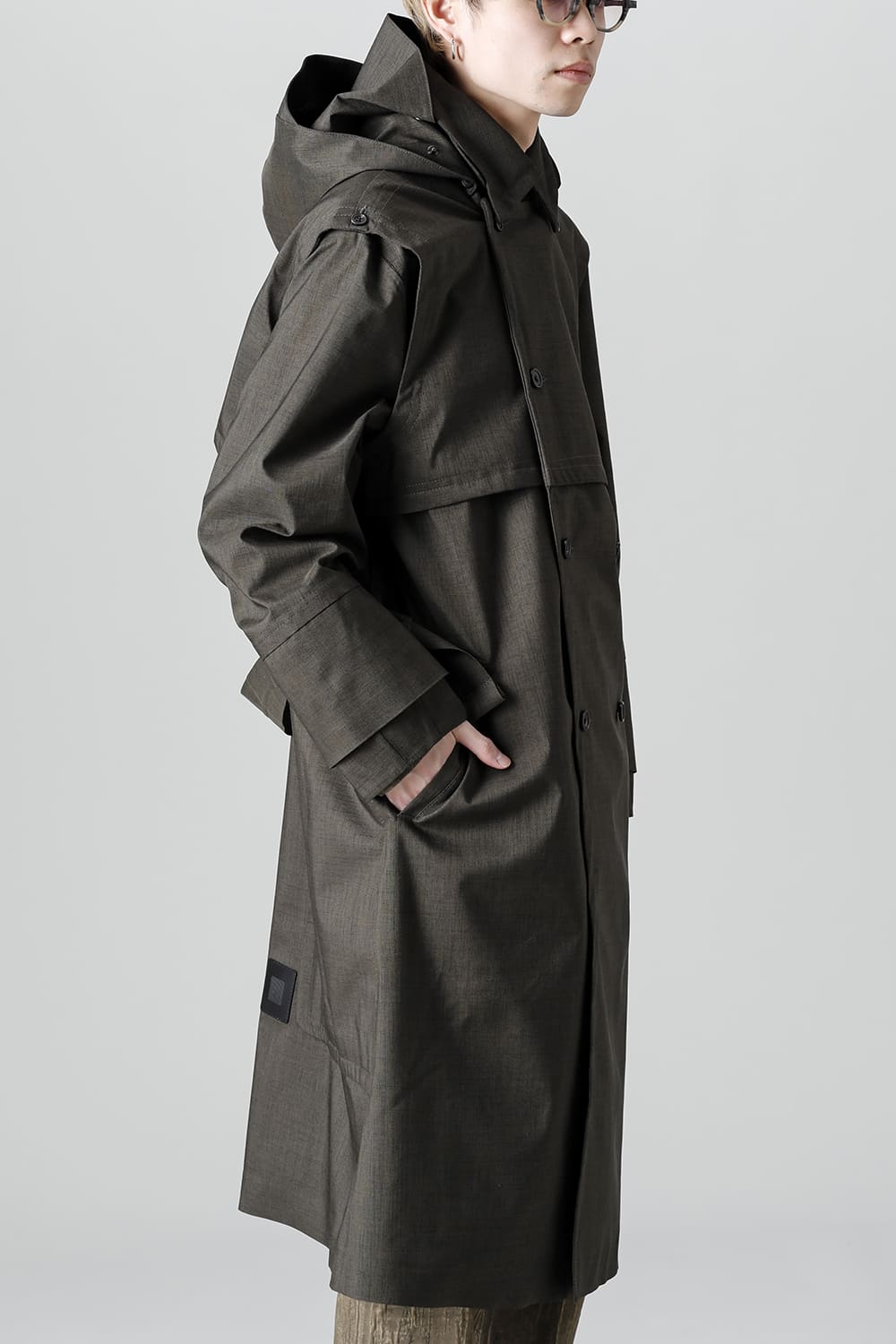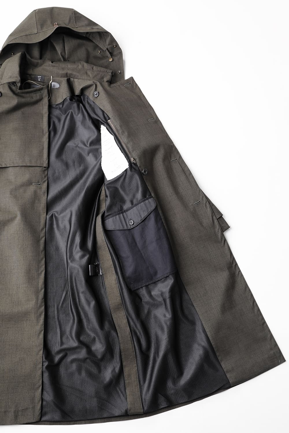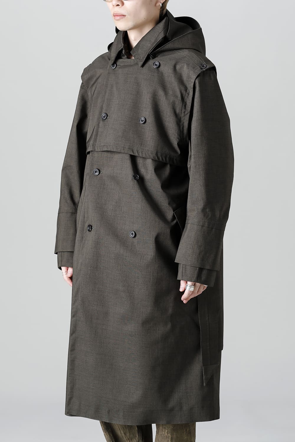 イギリスが発祥であるトレンチコートをNorwegian Rainの視点から再解釈しブラッシュアップされたこちらのコートは、胸元のストームシールドと背面のアンブレラヨークが一体となったベスト状の2レイヤーギミックが特徴。