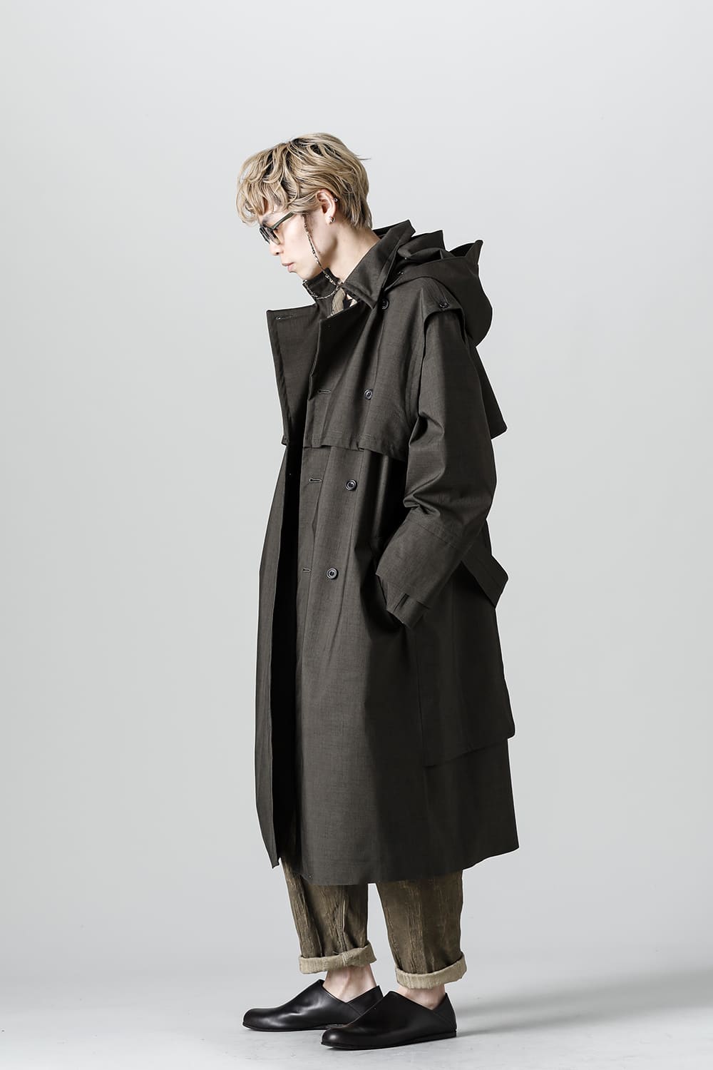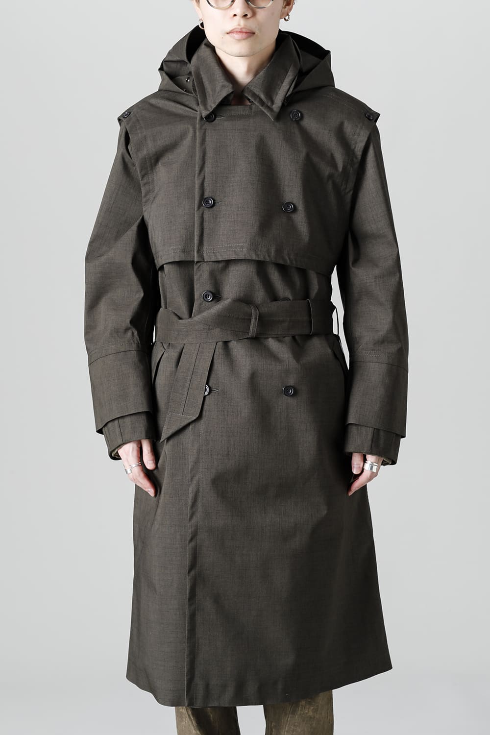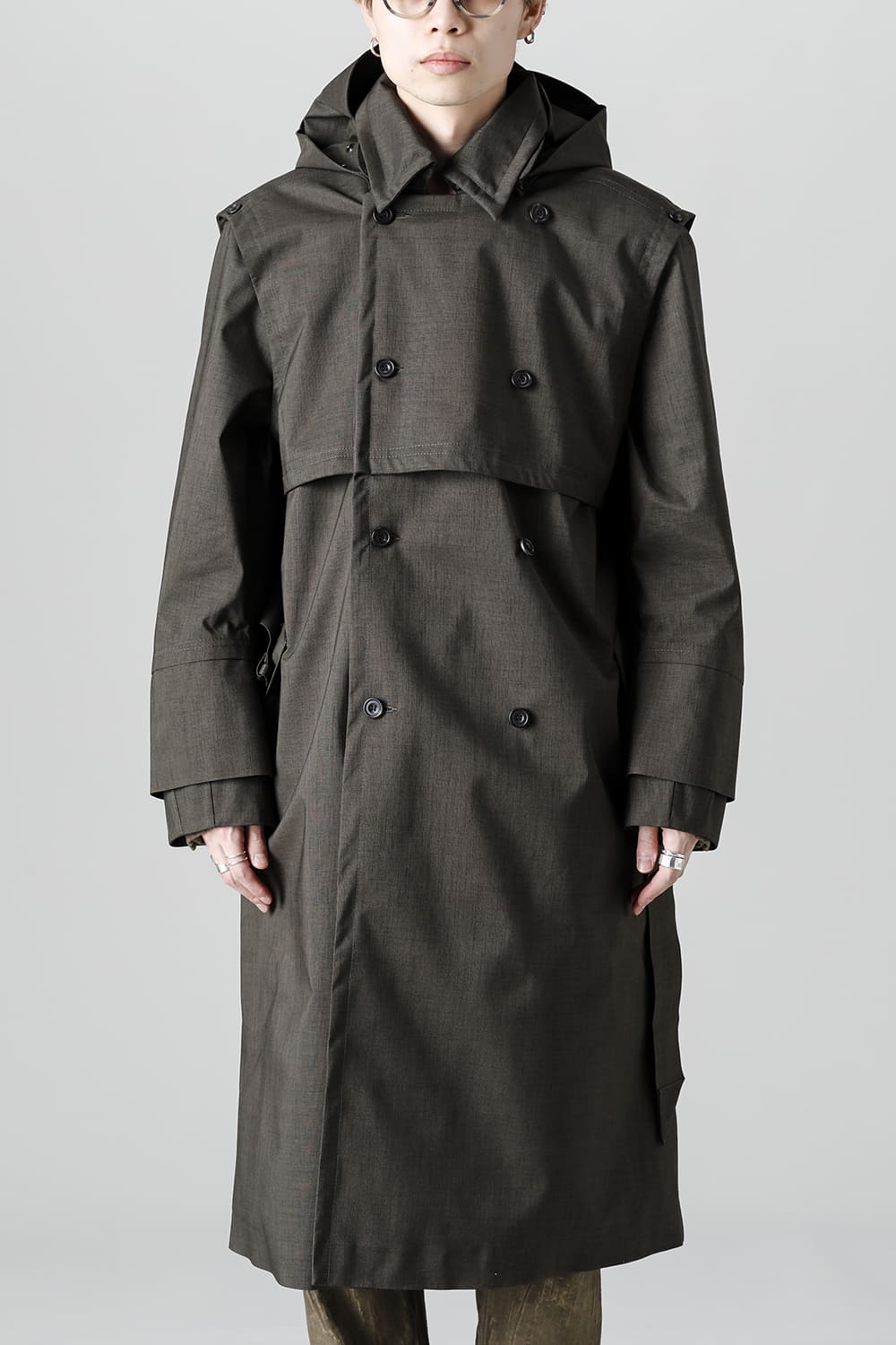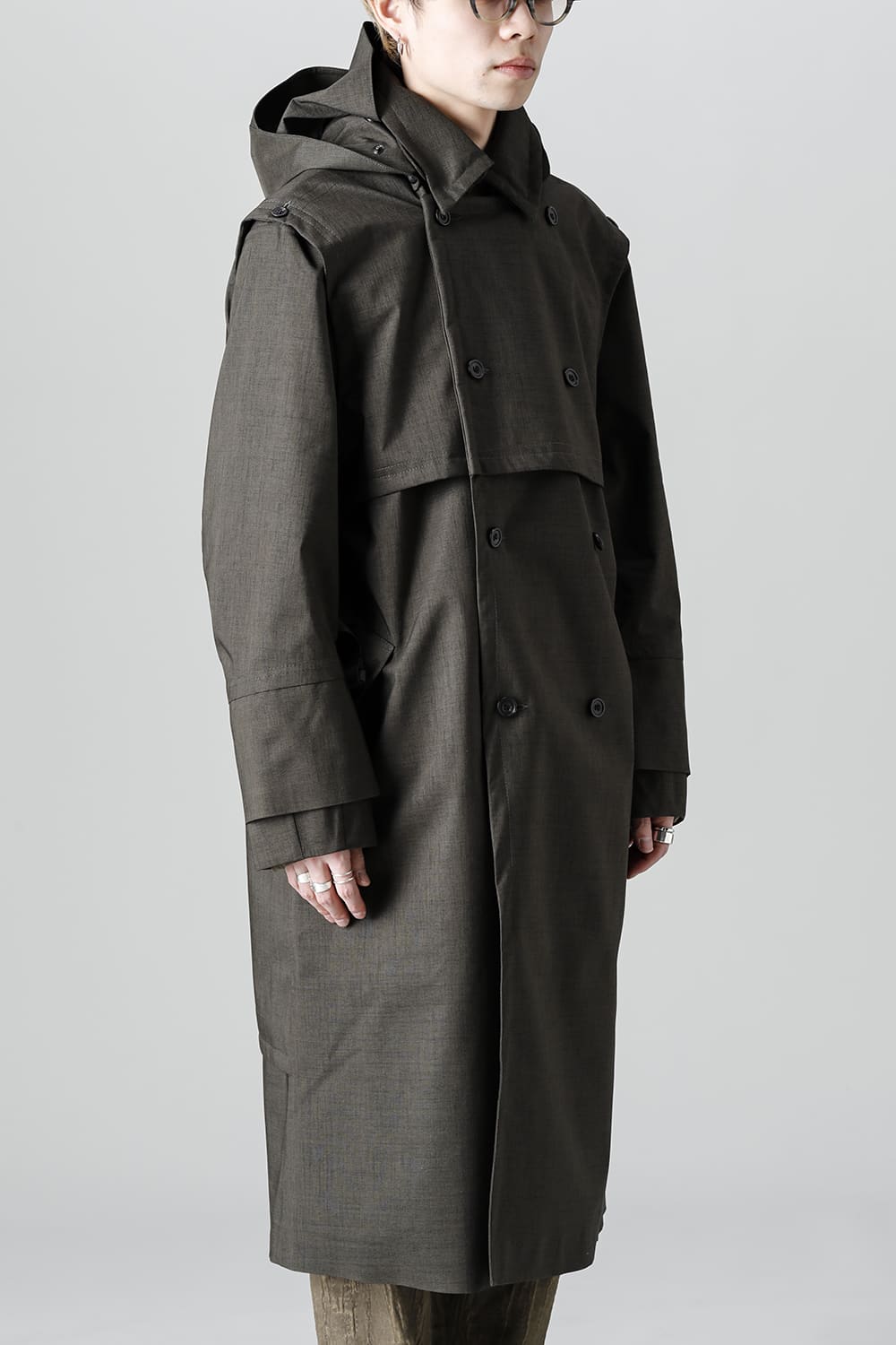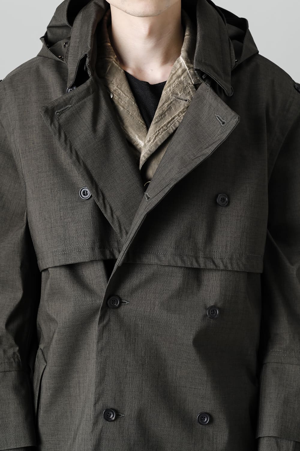 イギリスが発祥であるトレンチコートをNorwegian Rainの視点から再解釈しブラッシュアップされたこちらのコートは、胸元のストームシールドと背面のアンブレラヨークが一体となったベスト状の2レイヤーギミックが特徴。