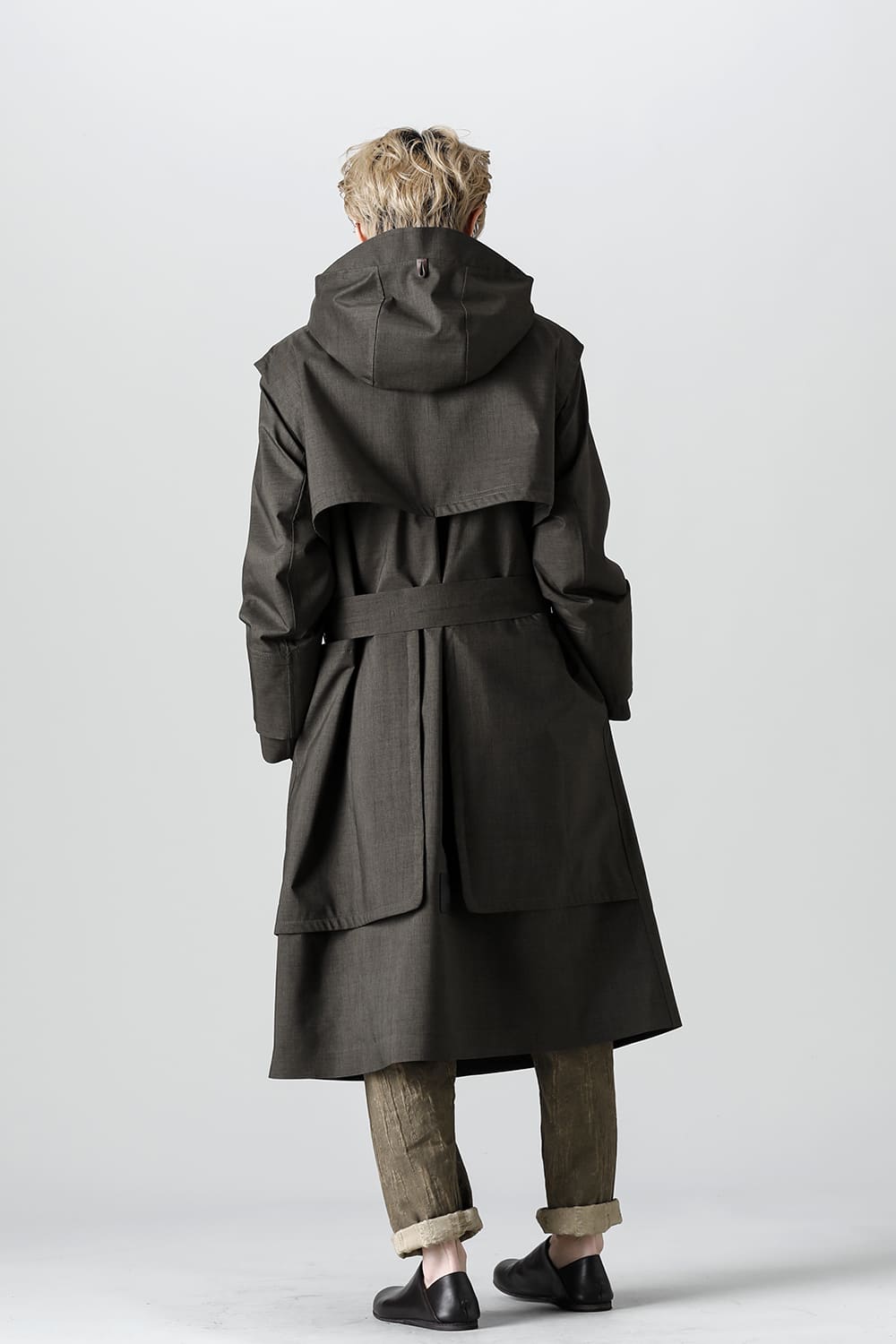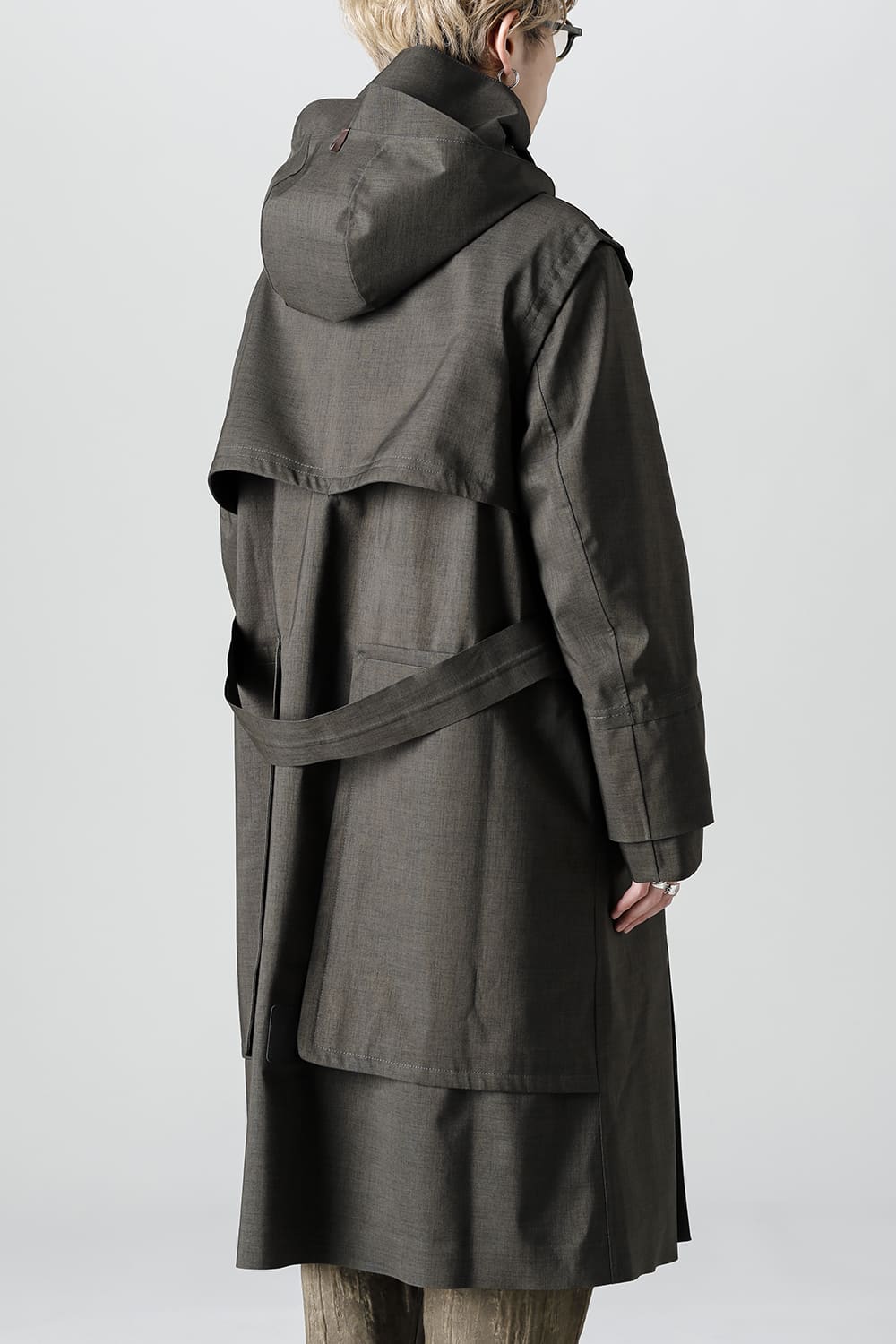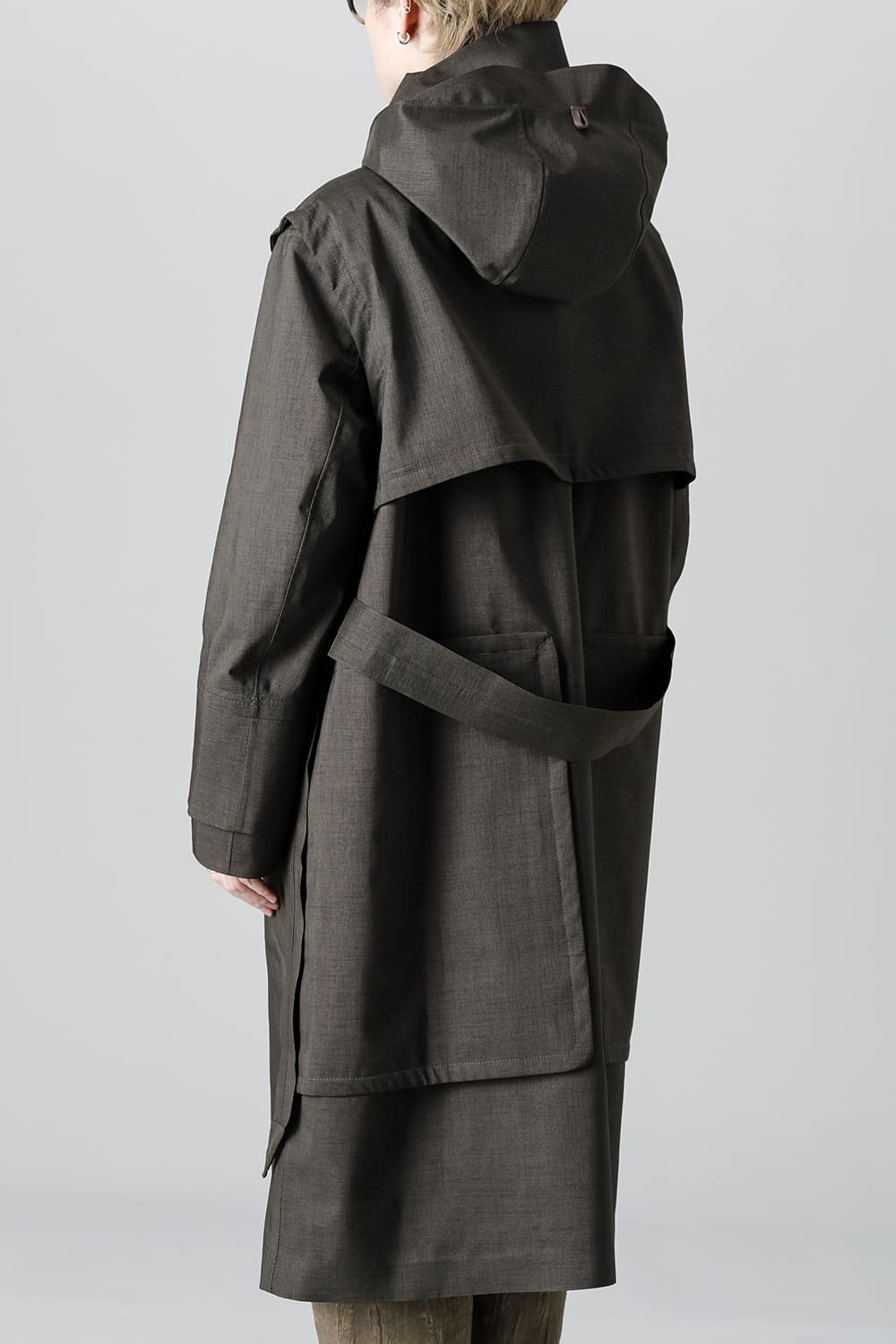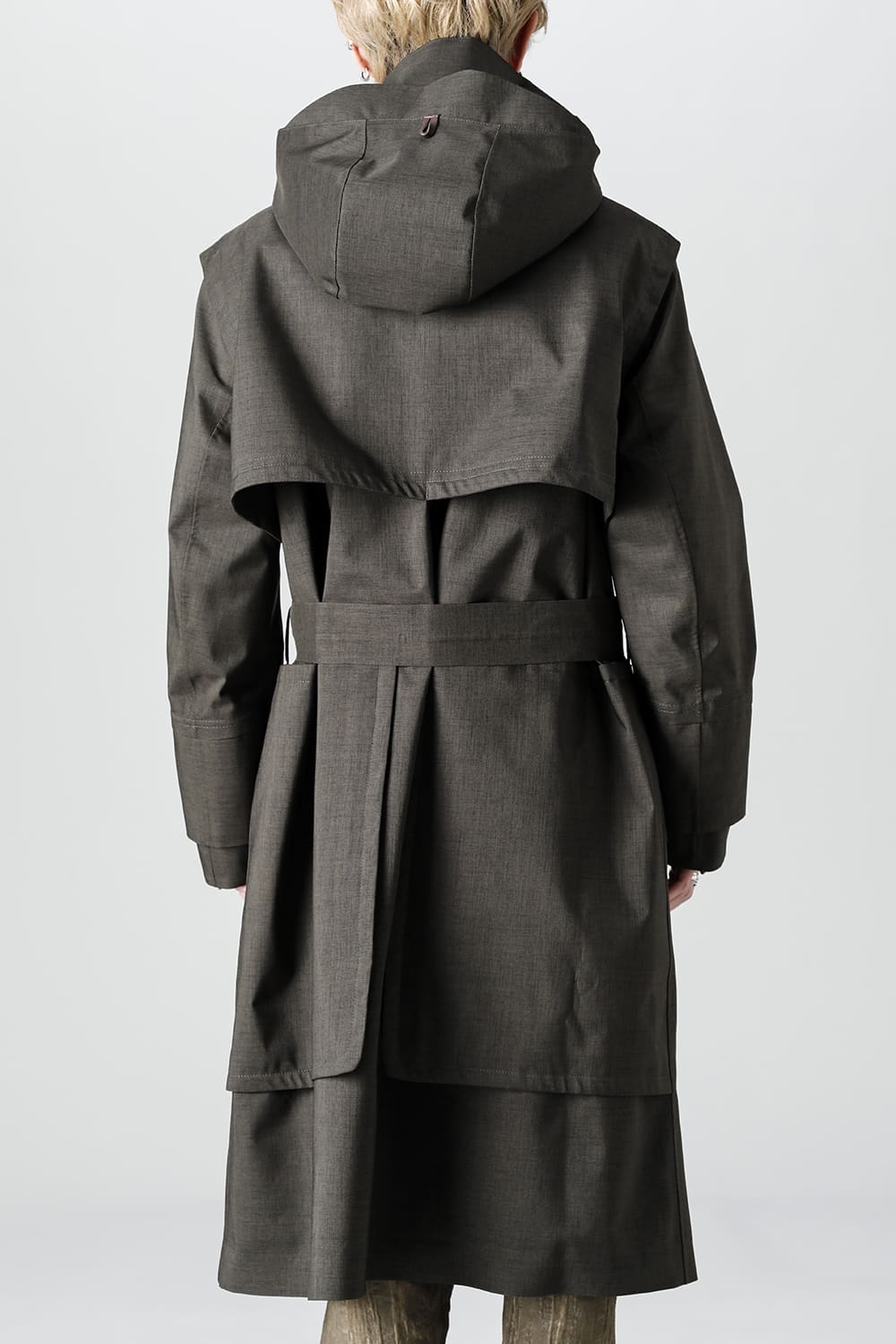 ウエストベルトを縛って着用する事で、ストームシールドとアンブレラヨークがグッと立ち上がるメリハリのあるシルエットがカッコ良い コートですが、単にデザイン的ディテールというわけではなく、肩から伝った雨の雫が身頃にかかる前に滑り落ちるアンブレラヨークの本来の役割も果たしています。