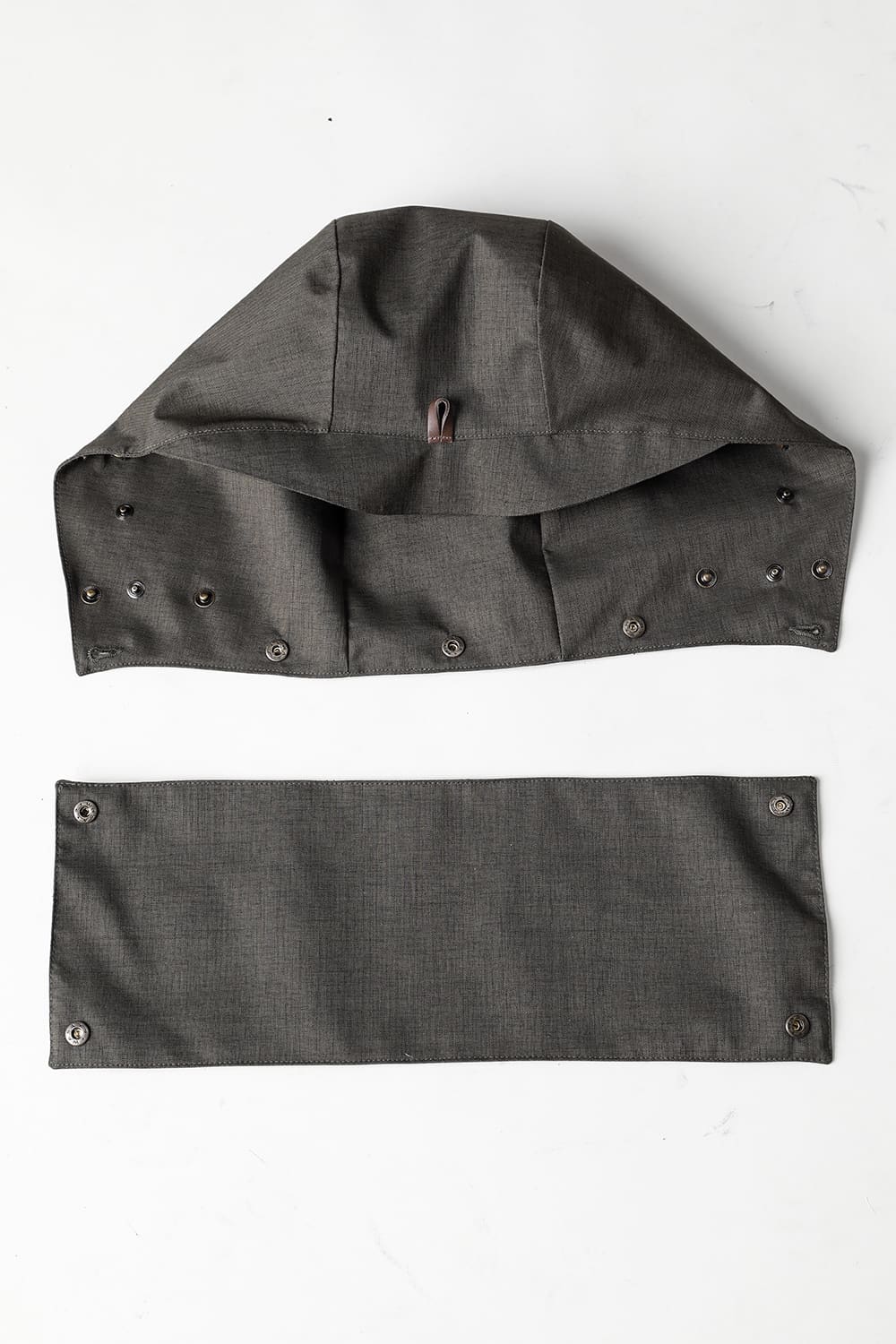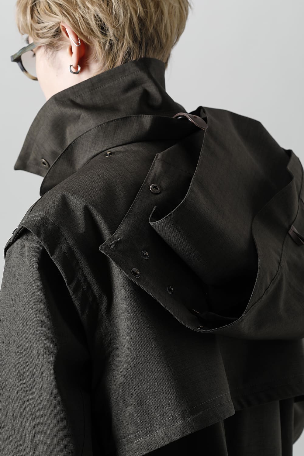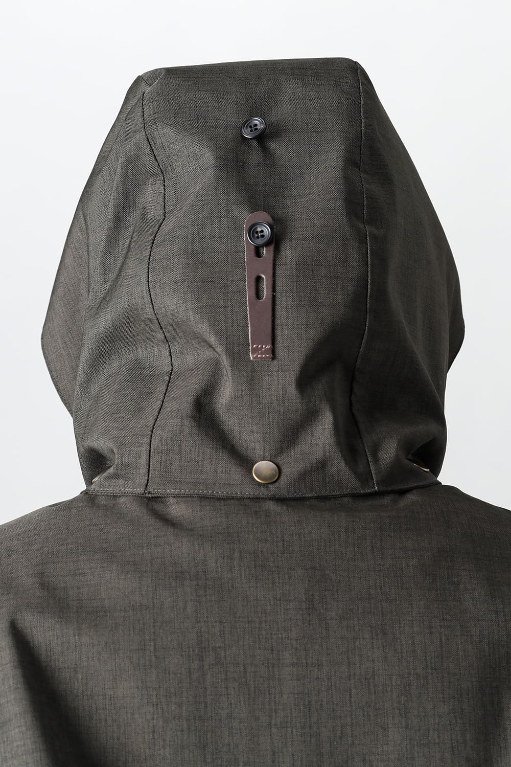 フード周りのパーツは細かく切り分けるようにスナップボタンで簡単に着脱が可能、またRaincho同様にフード内部やフードの深さをサイズ調整する事ができます。