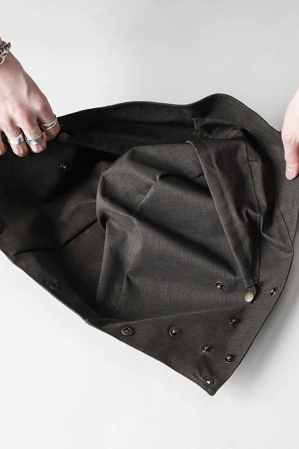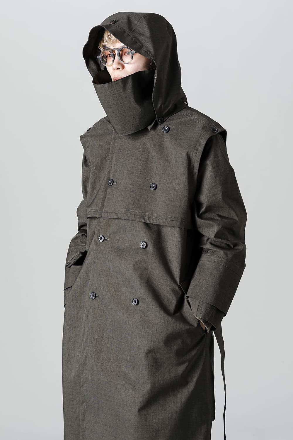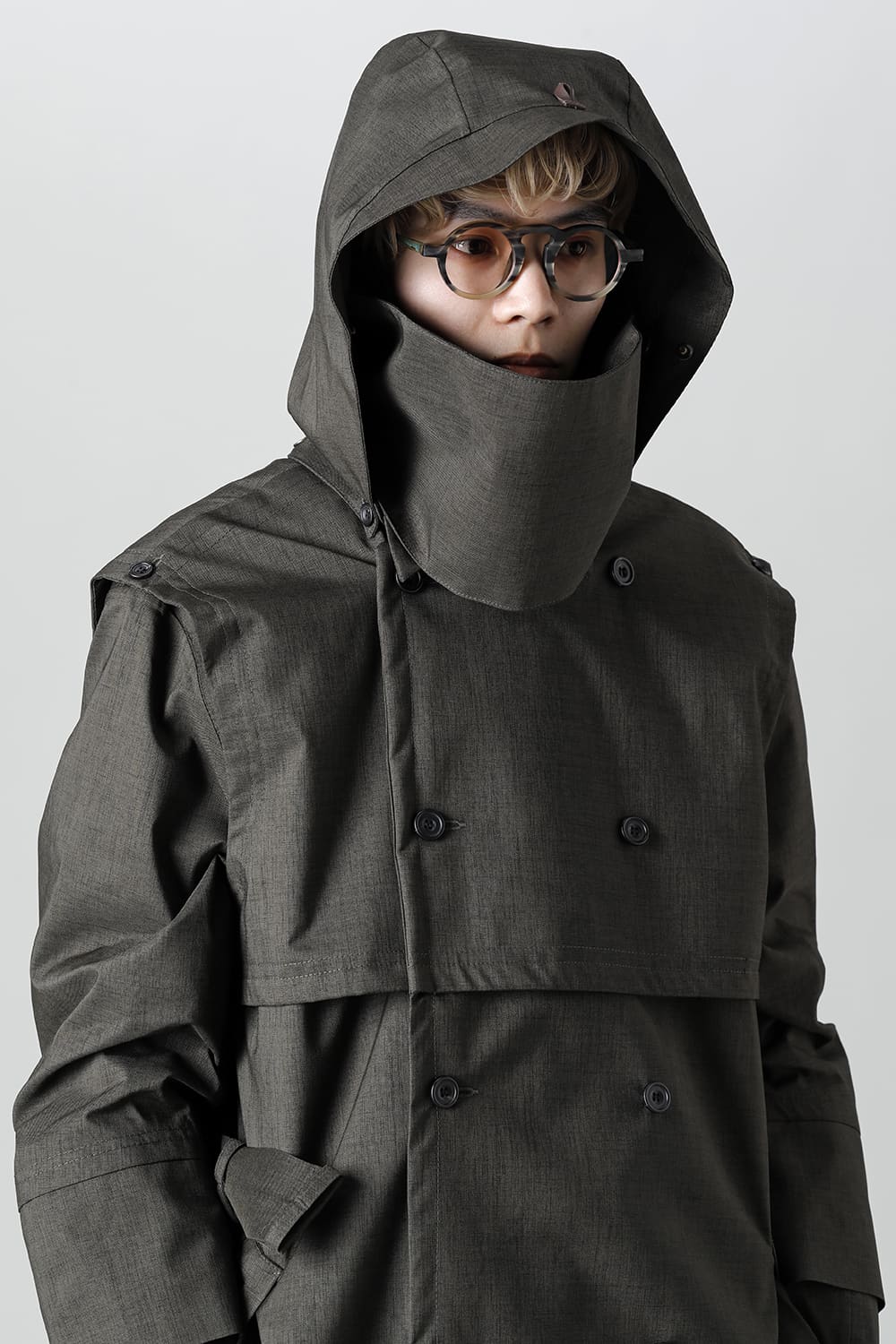 フード周りのパーツは細かく切り分けるようにスナップボタンで簡単に着脱が可能、またRaincho同様にフード内部やフードの深さをサイズ調整する事ができます。