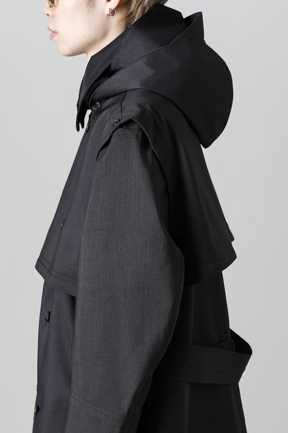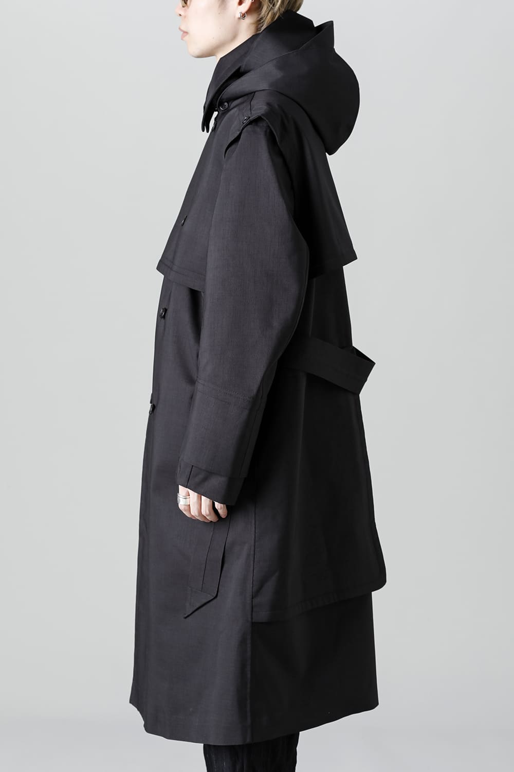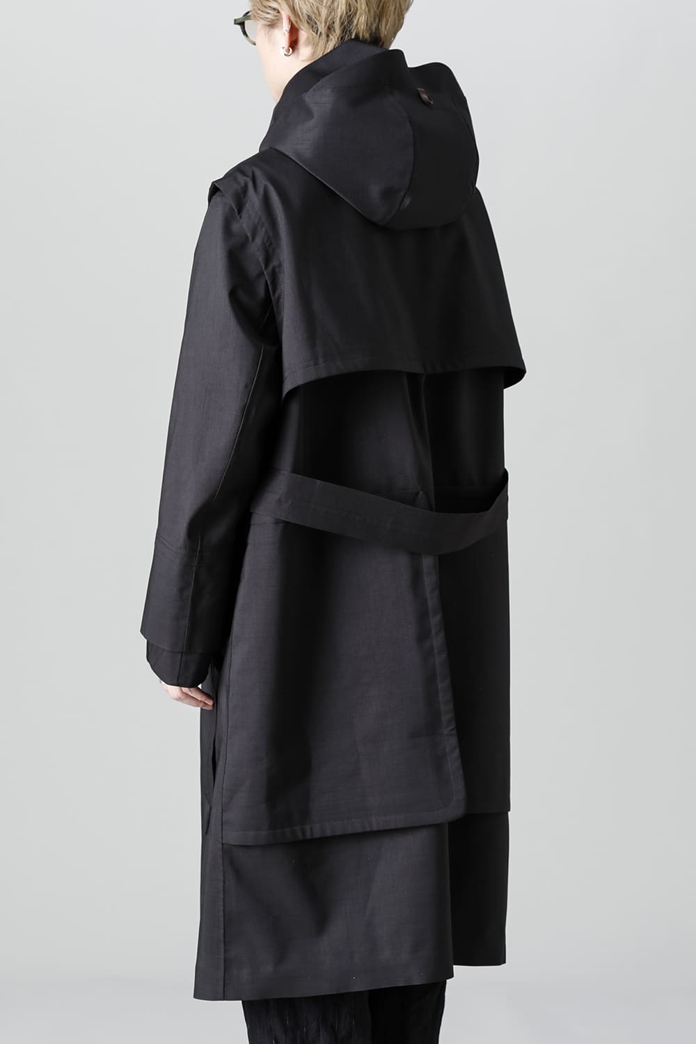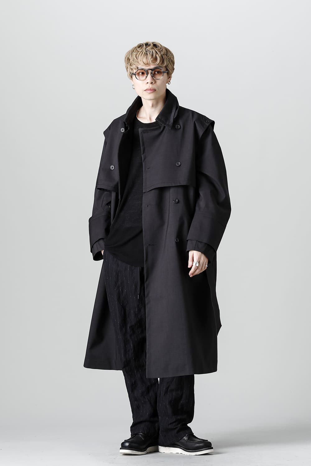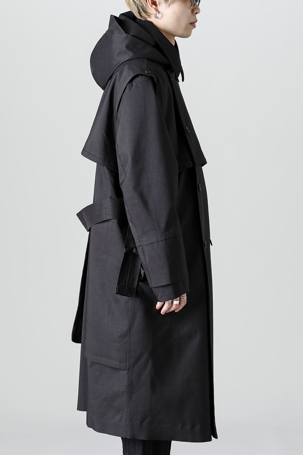 イギリスが発祥であるトレンチコートをNorwegian Rainの視点から再解釈しブラッシュアップされたこちらのコートは、胸元のストームシールドと背面のアンブレラヨークが一体となったベスト状の2レイヤーギミックが特徴。