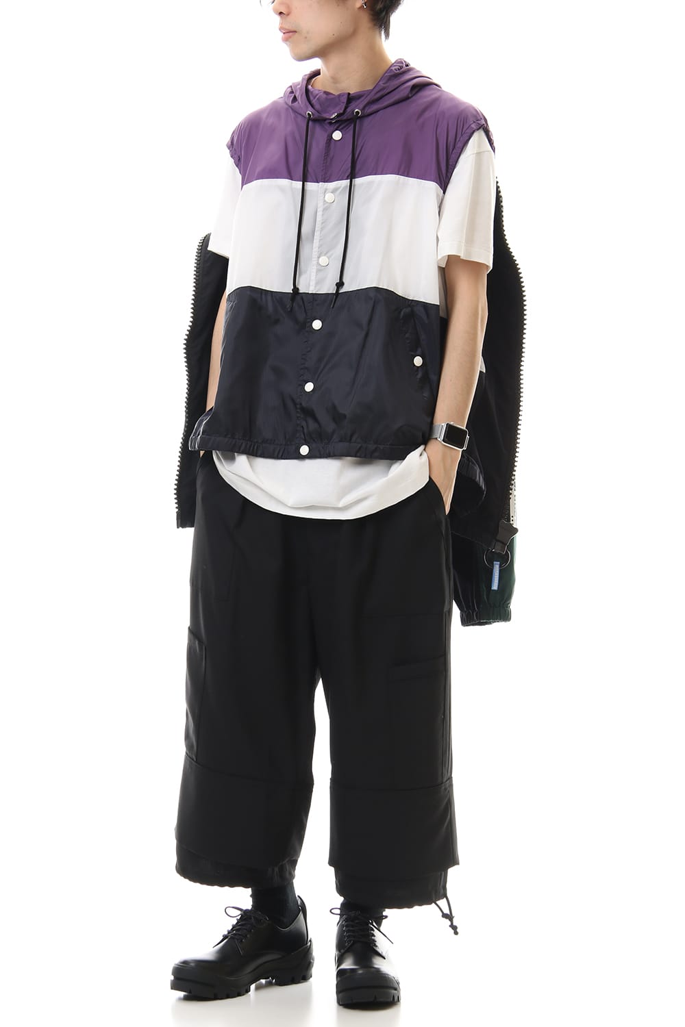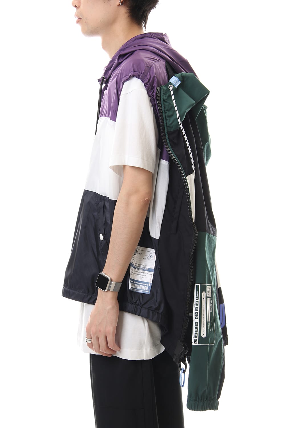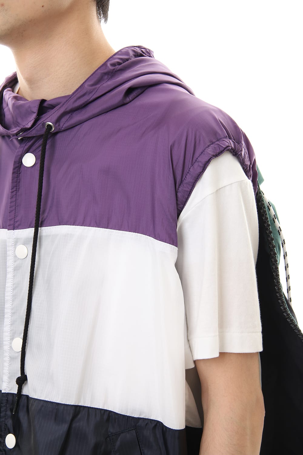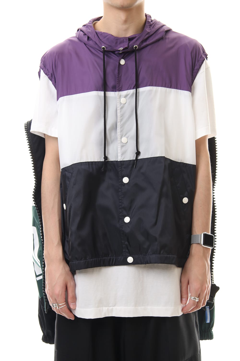表部分はシャツアウター、裏部分はパラシュートなどに使用されるパラシュート素材のノースリーブブルゾン。