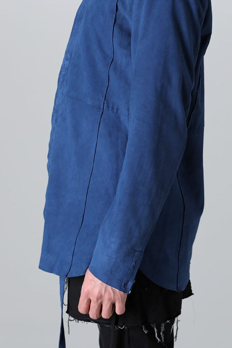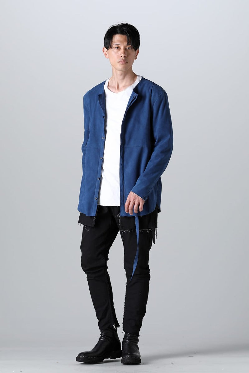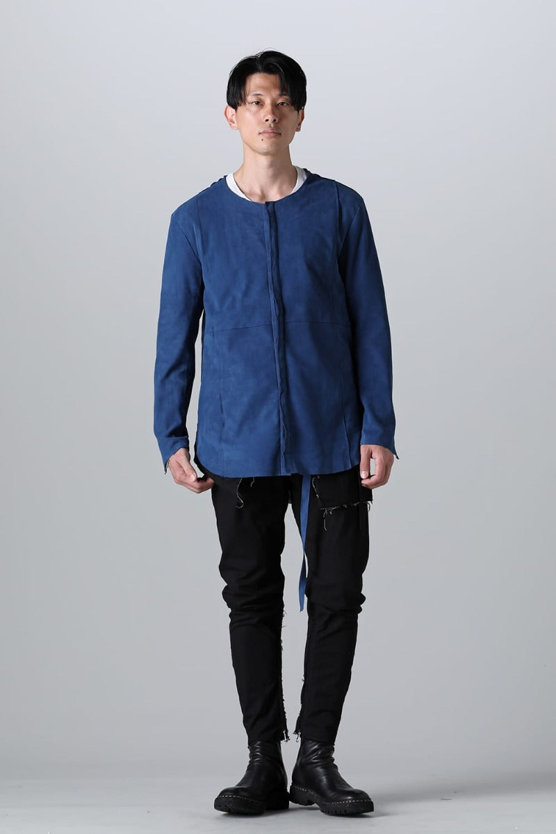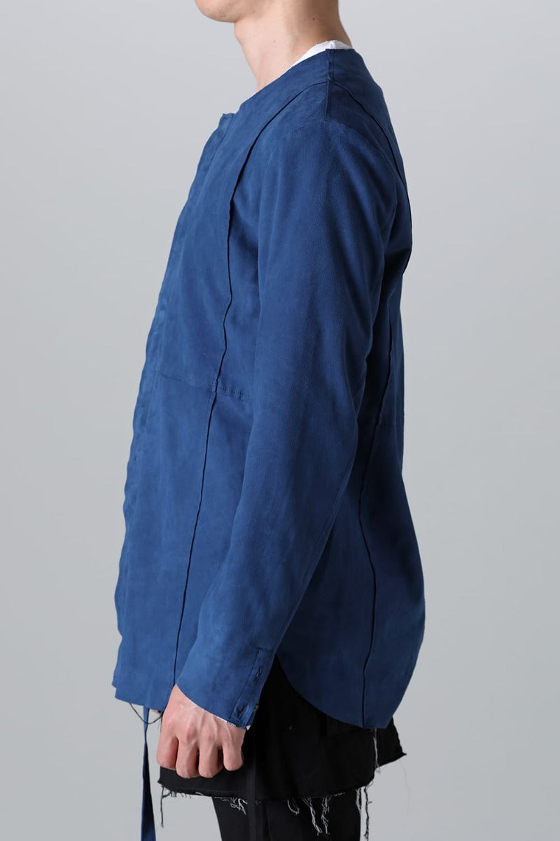 ASKYYで初リリースとなるレザーシャツ。ブランドアイコンの1つでもあるノーカラーシャツをシープレザーに落とし込み、その中でも最上位の作品を製作。この時期でしか実現しない限定品を完成させました。
