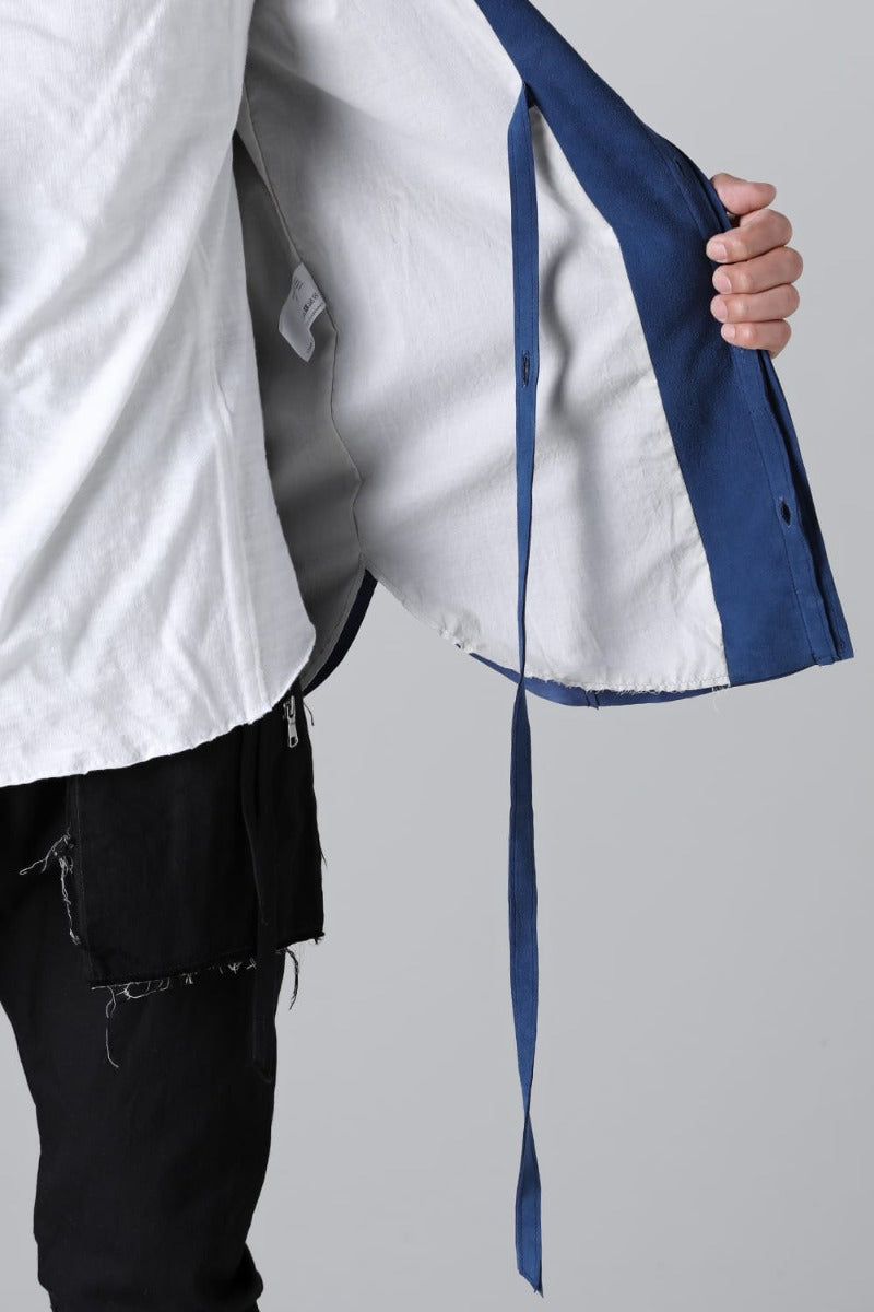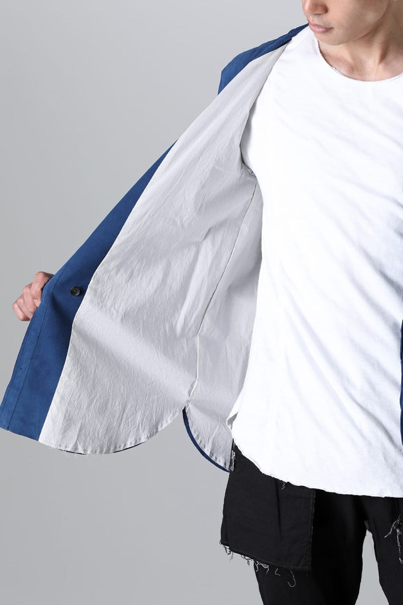 袖口はボタン仕様で春夏期のラフな腕まくりにも対応。シャツ同様のパターンにて制作している為、首周りもスッキリし、スタイリングの邪魔をしないミニマルなフォルム。インナー使いとしても重宝し、春先の羽織りものとしても最適な厚みに仕上げています。